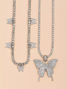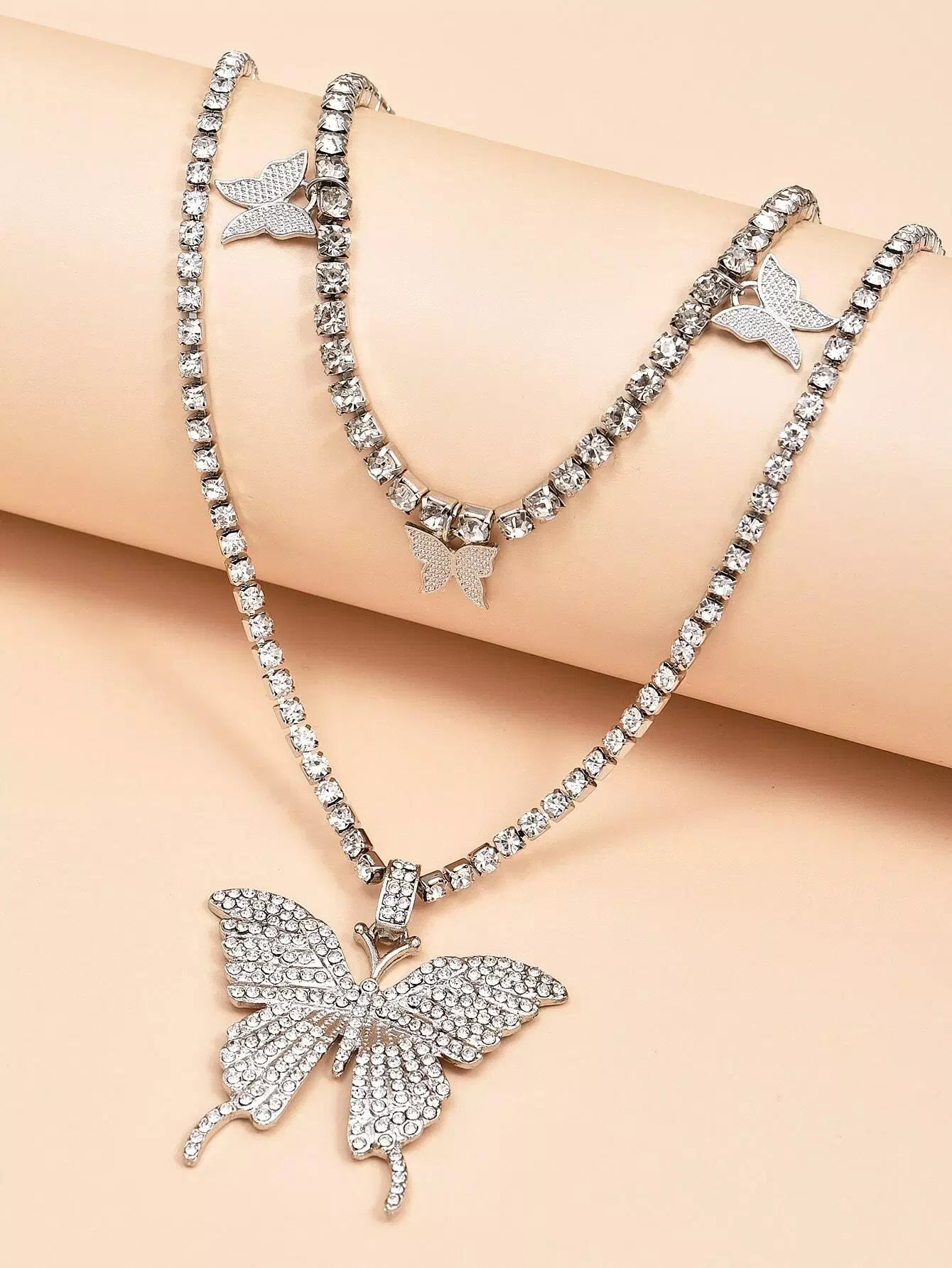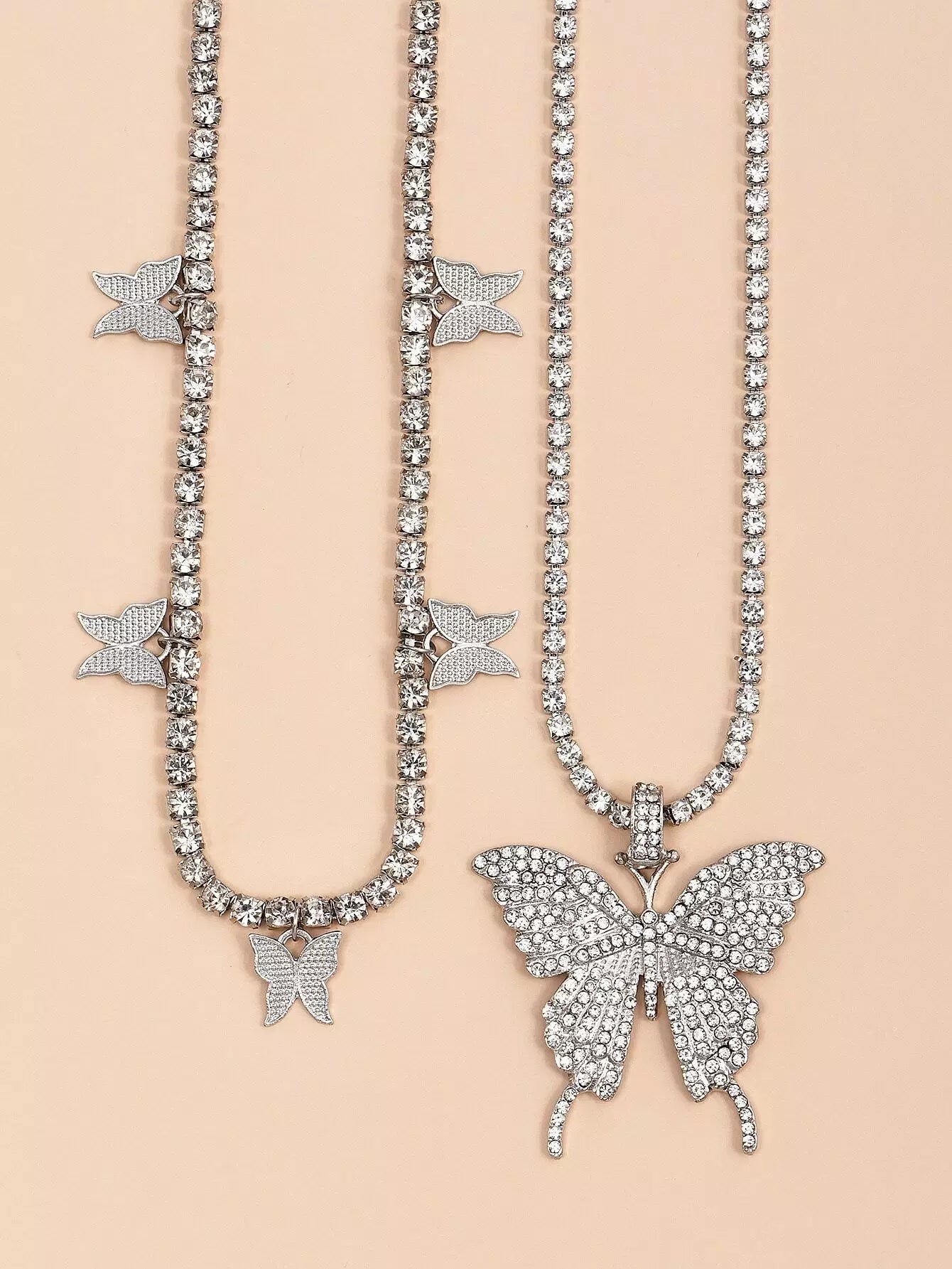 للنساء - قطعتان من قلادة على شكل فراشة مزخرفة بحجر الراين