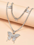 عقد على شكل فراشة مزين بأحجار الراين مكون من قطعتين