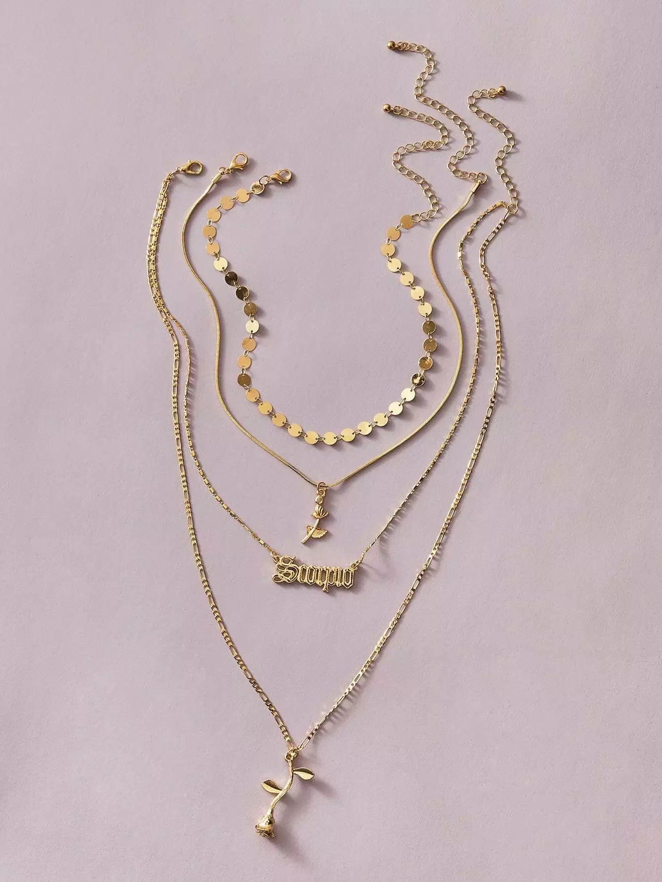 قلادة مكونة من 3 قطع على شكل وردة وحرف