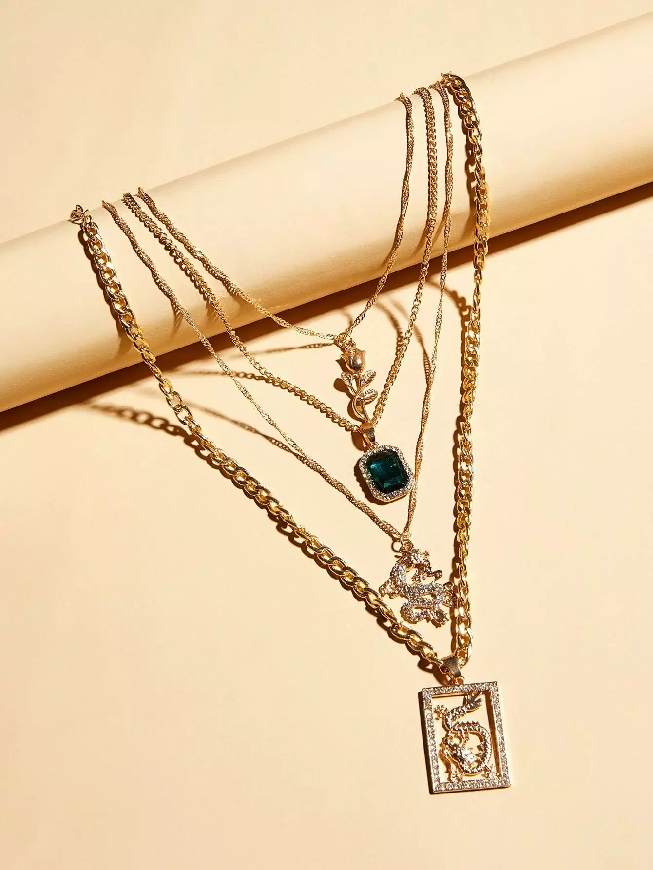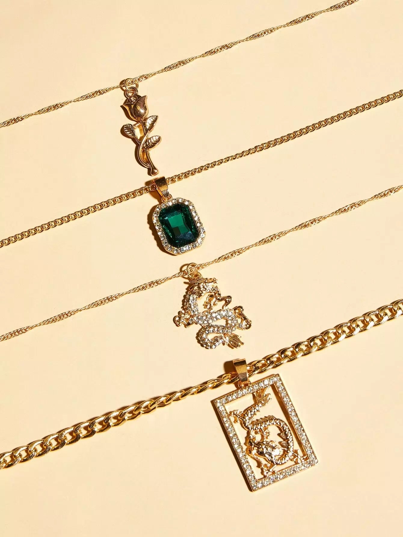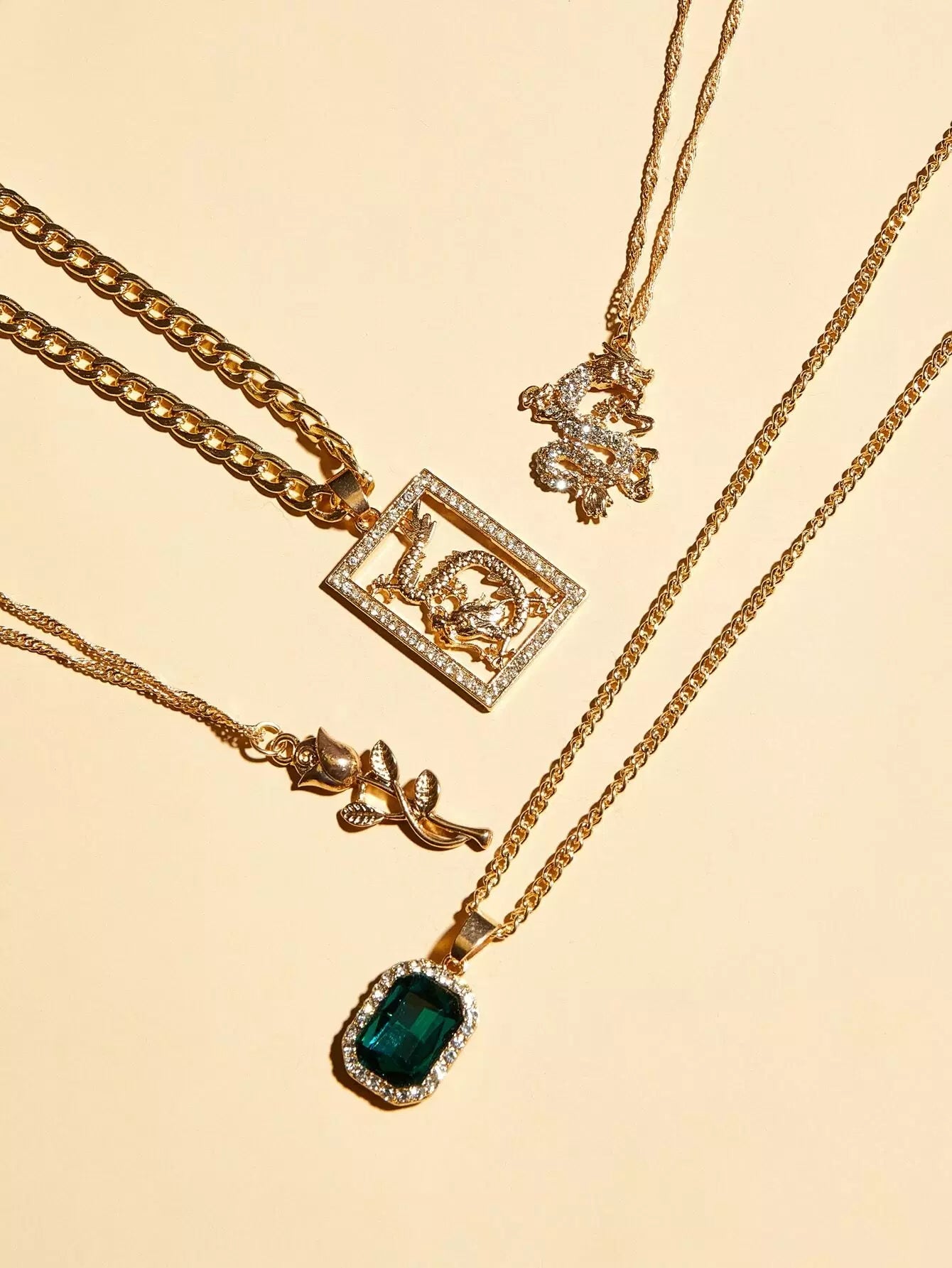 قلادة مكونة من 4 قطع على شكل وردة وتنين