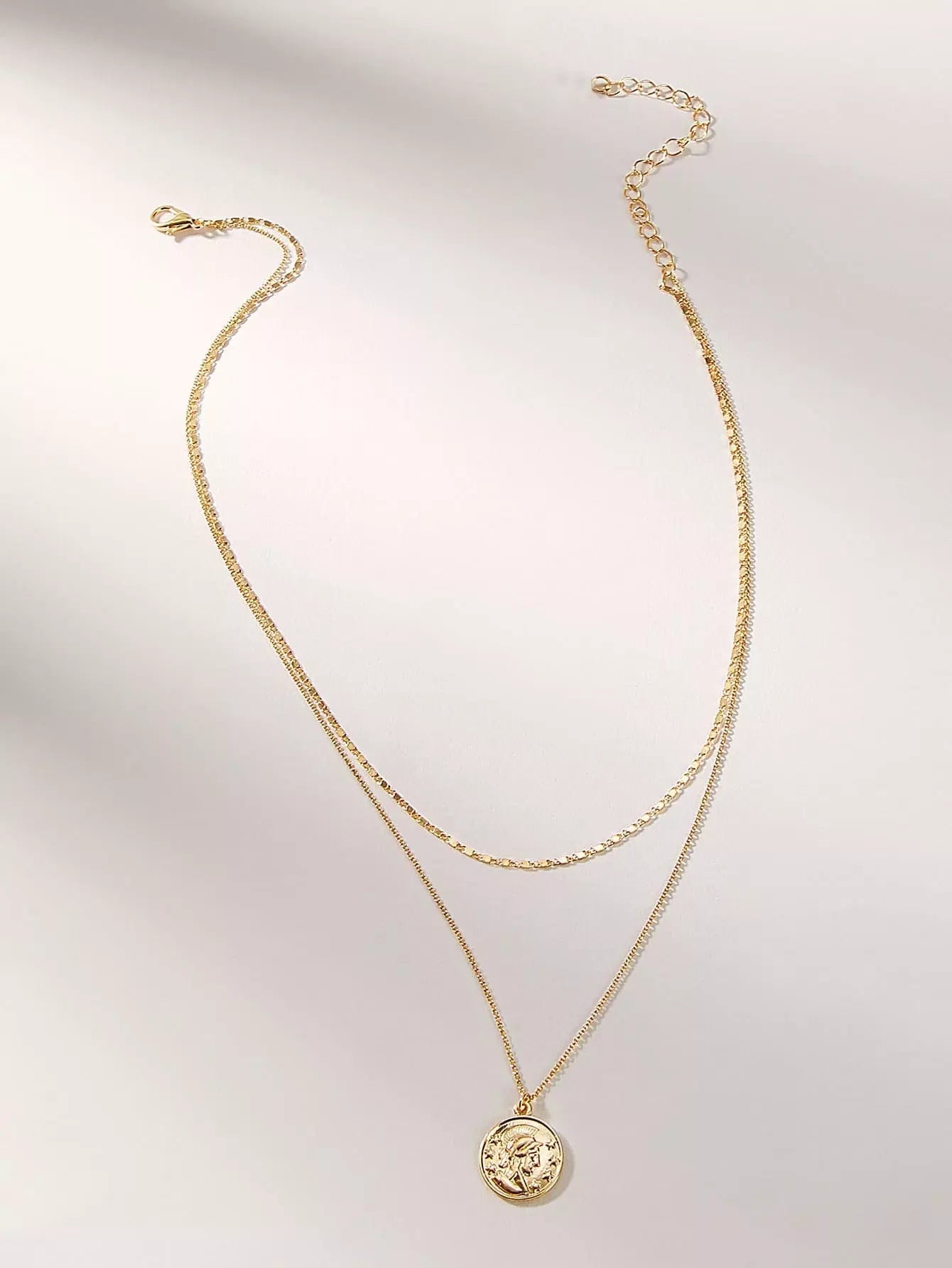للنساء - قلادة بسلسلة مزدوجة الطبقات بتفاصيل عملة معدنية قطعة واحدة