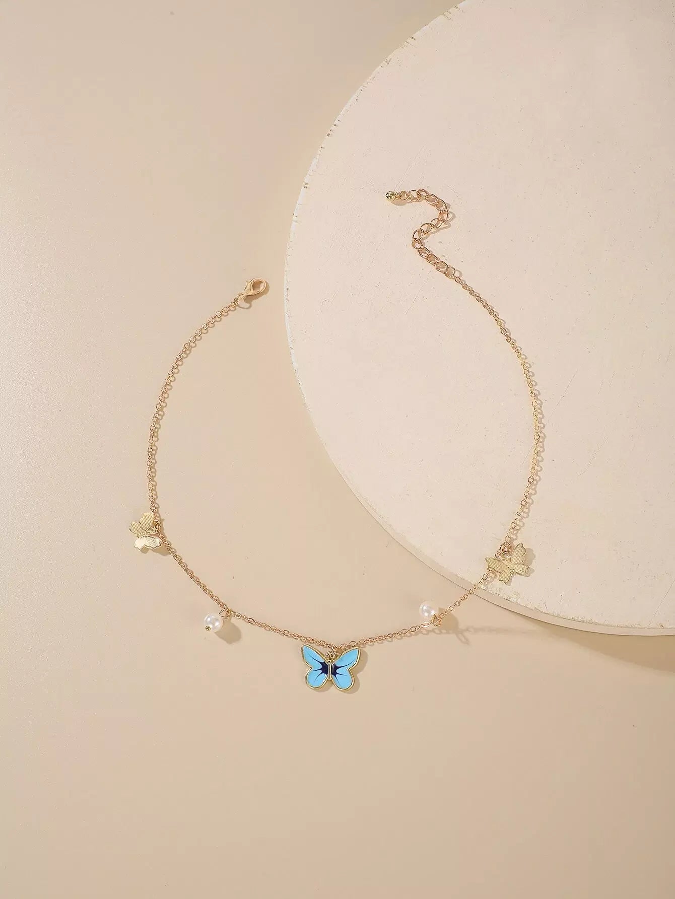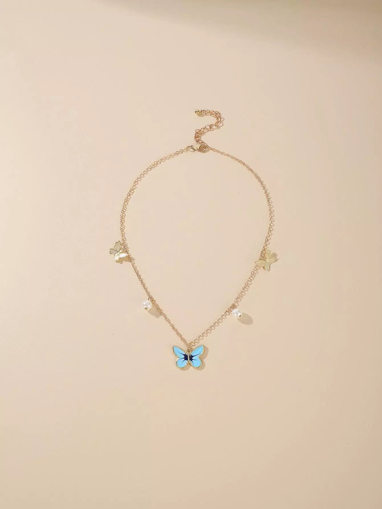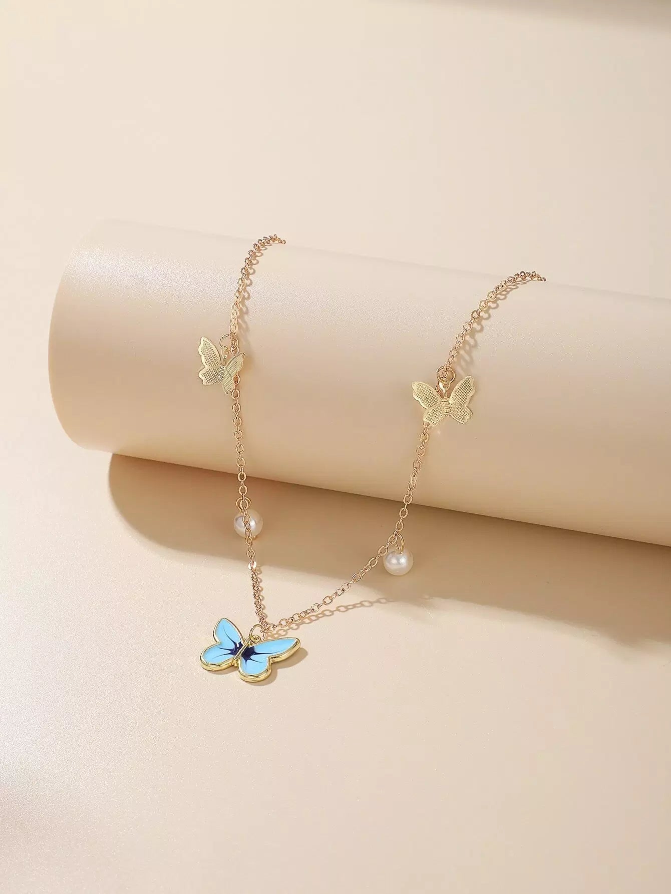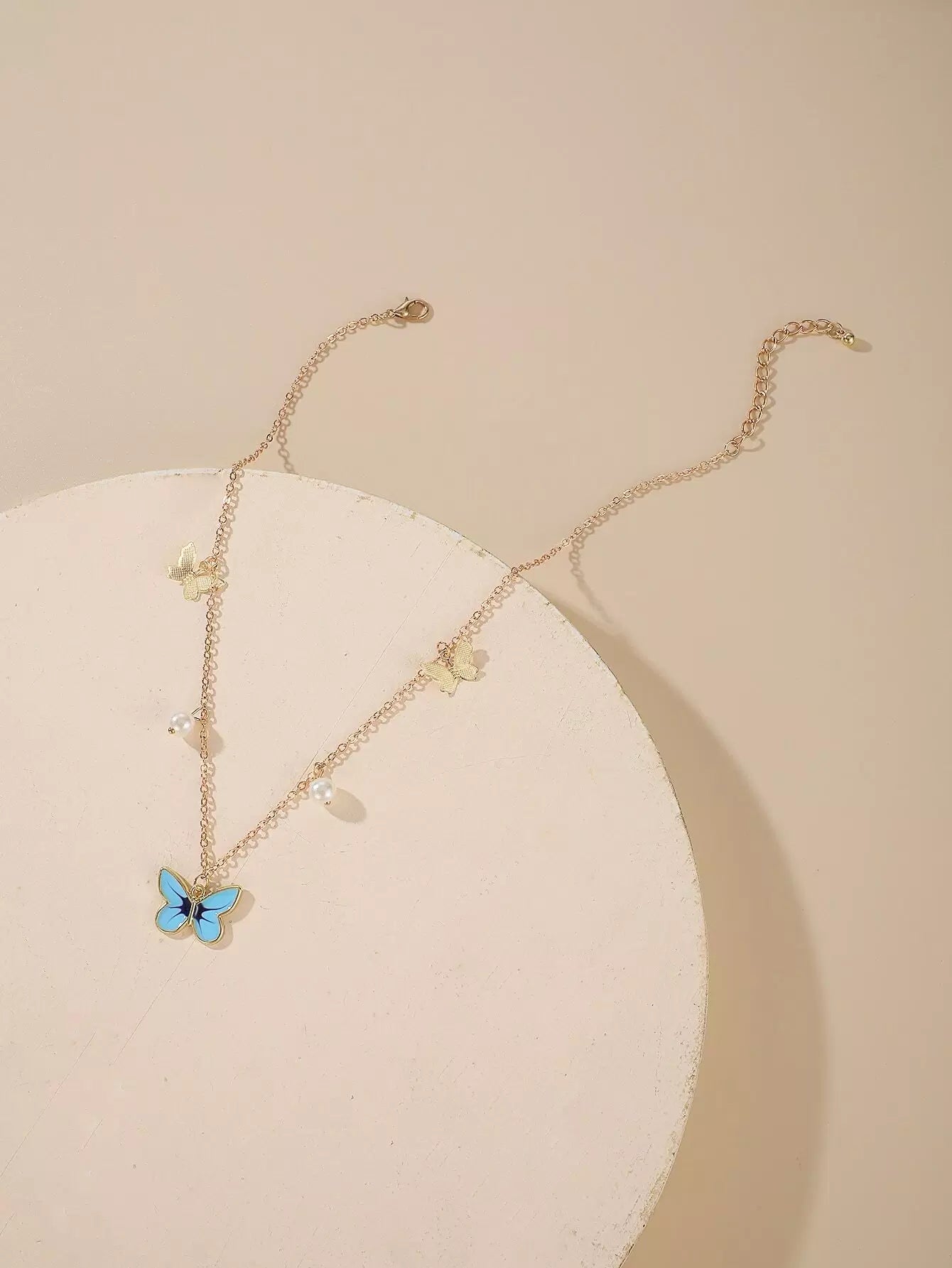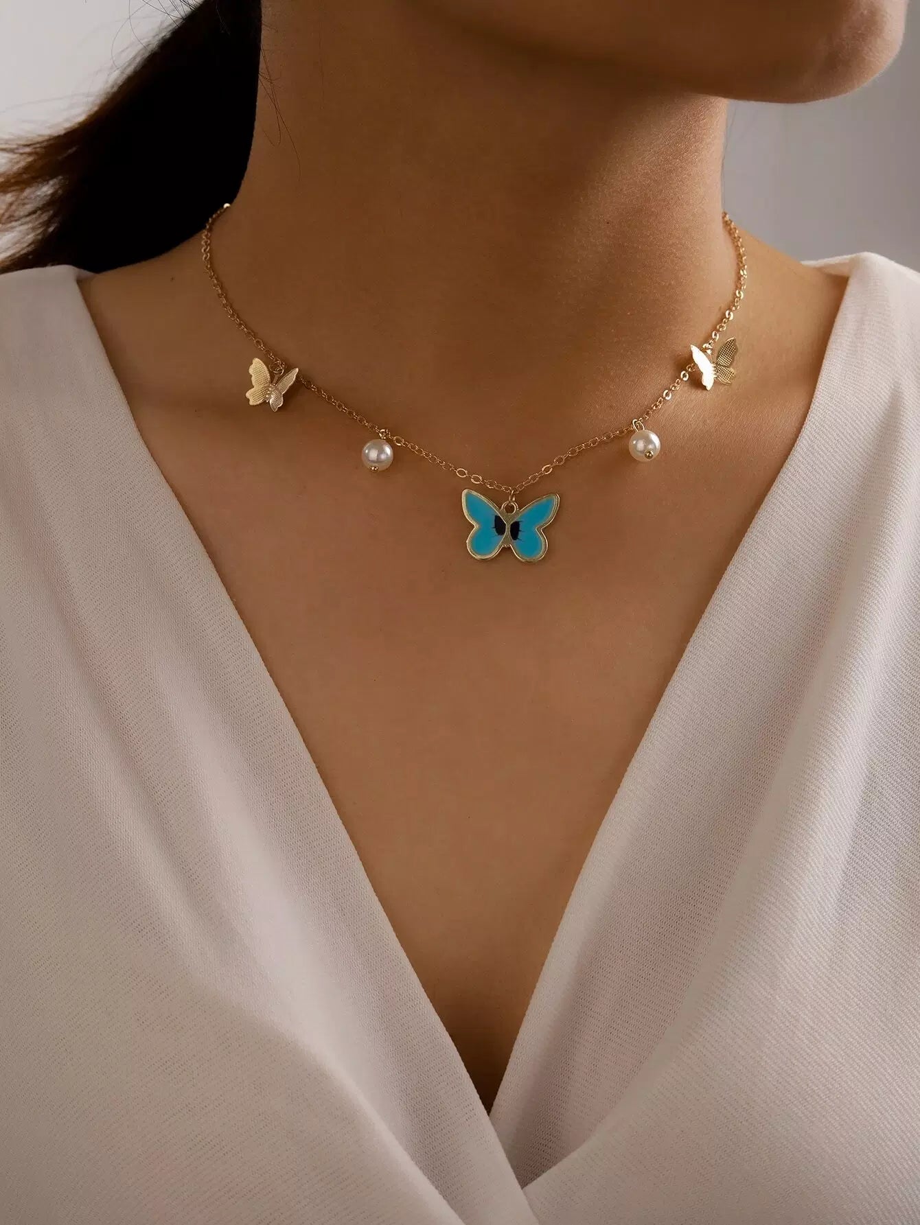 المجوهرات - قلادة من اللؤلؤ الصناعي والفراشة