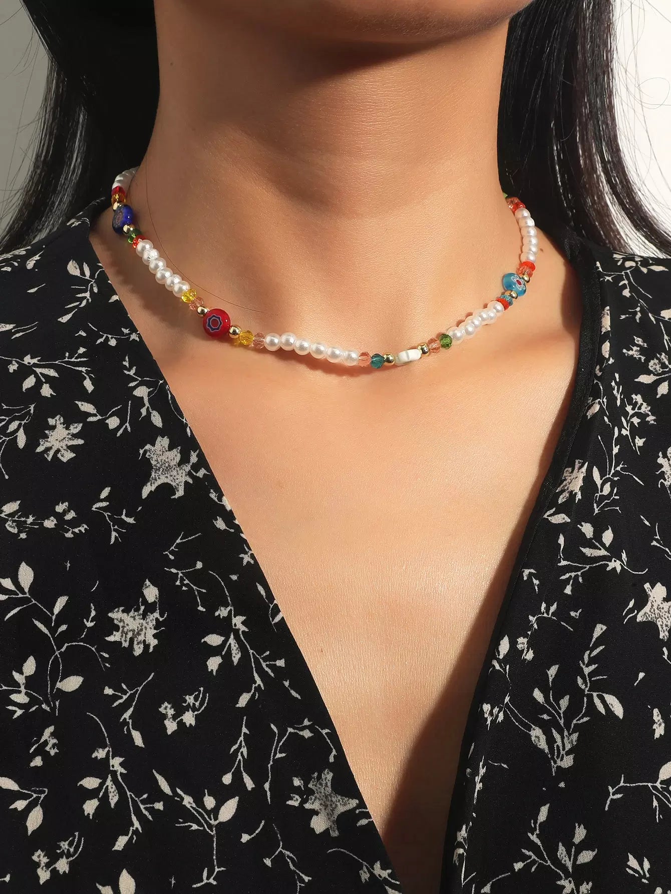 سلسال اللؤلؤ الصناعي المزين بالخرز