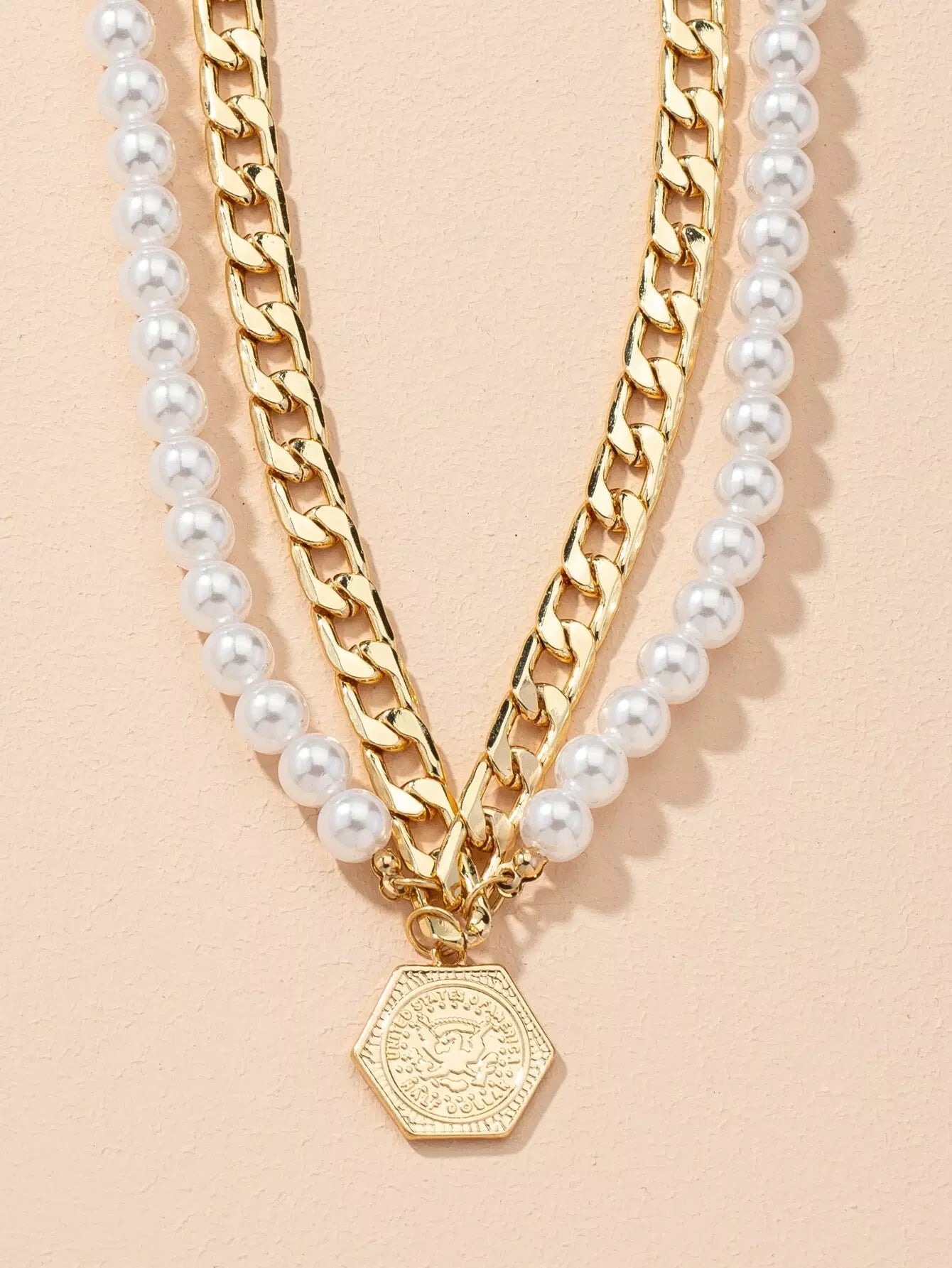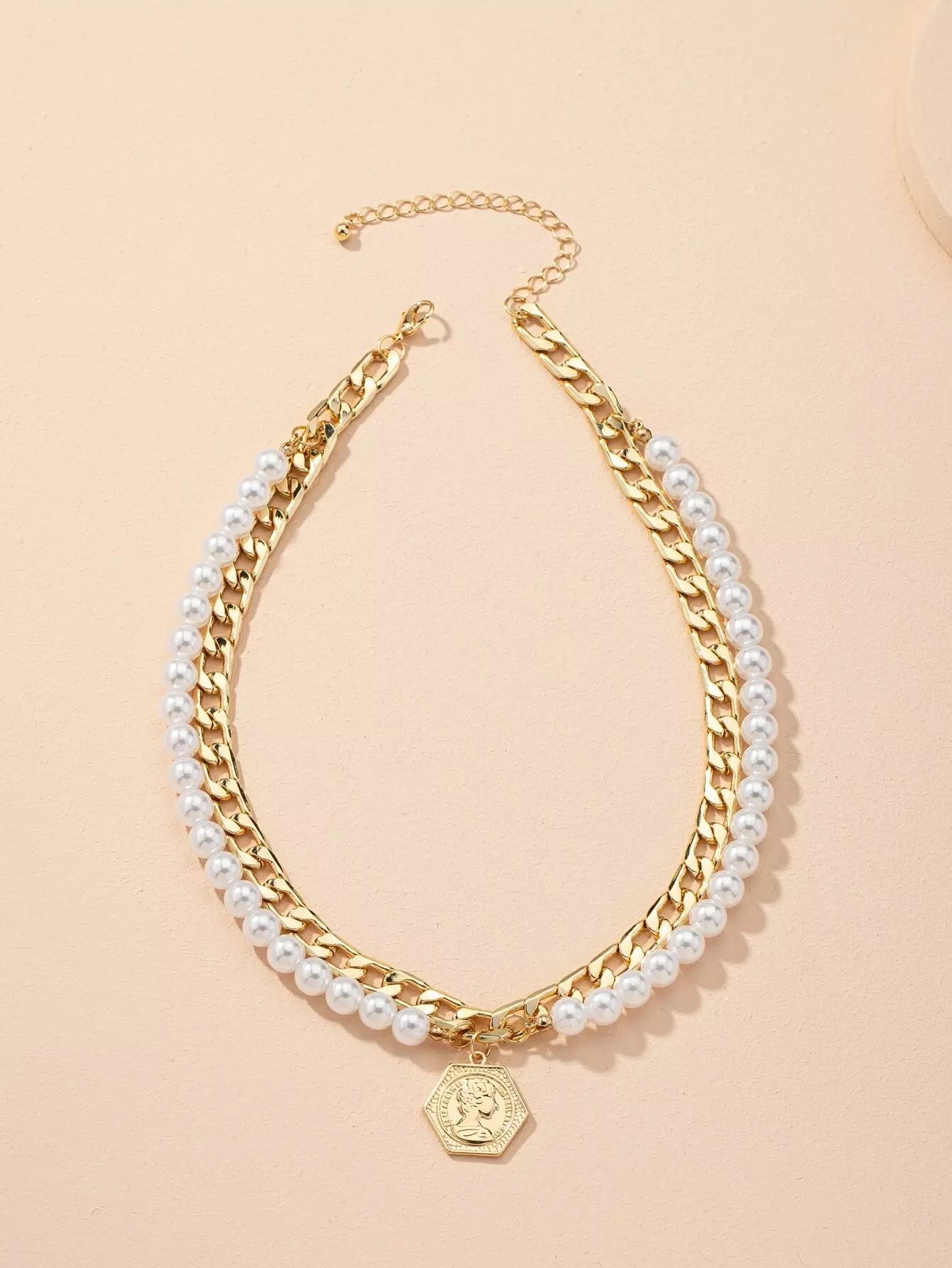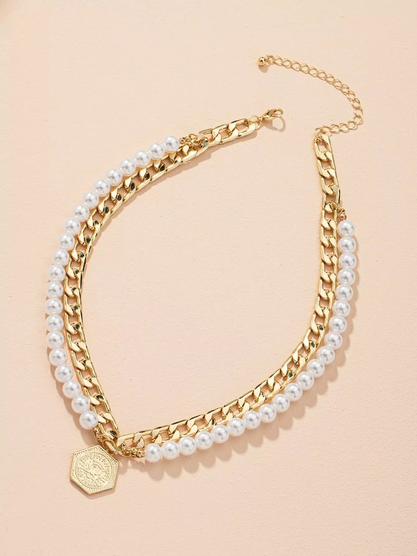 قلادة متعددة الطبقات بتصميم لؤلؤ صناعي