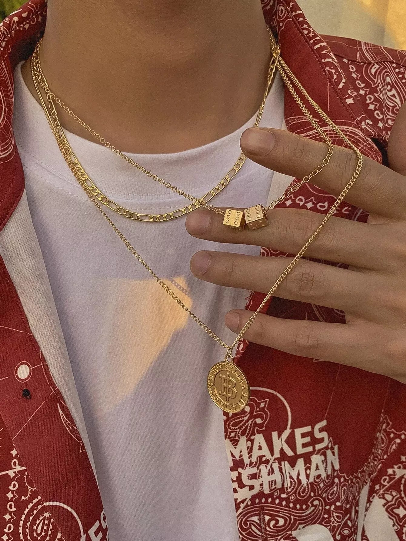 قلادة مكونة من قطعتين من سلسلة Geo Charm متعددة الطبقات للرجال