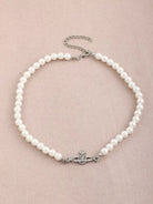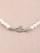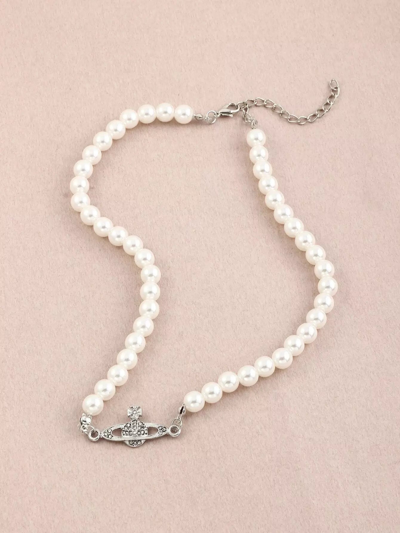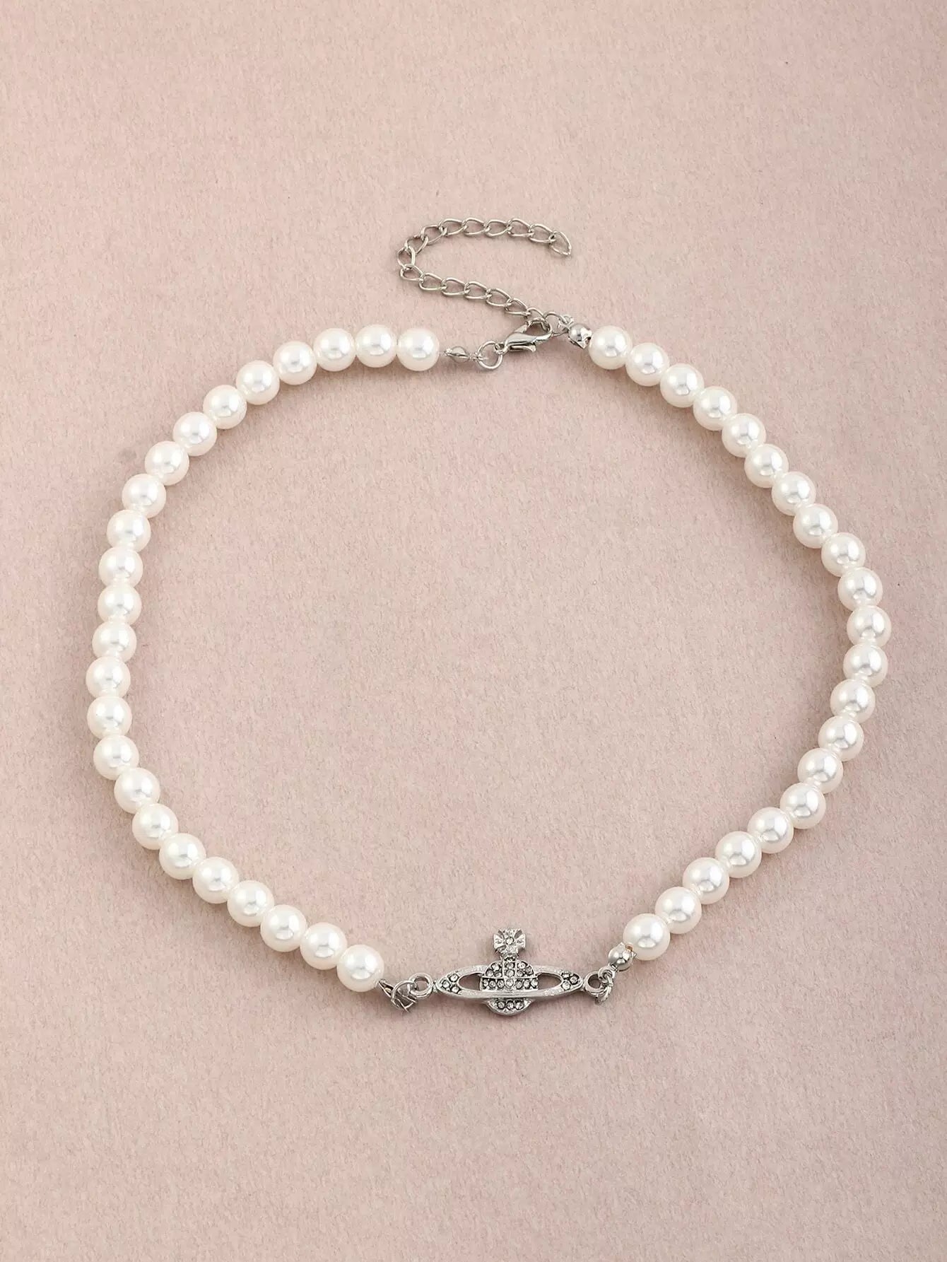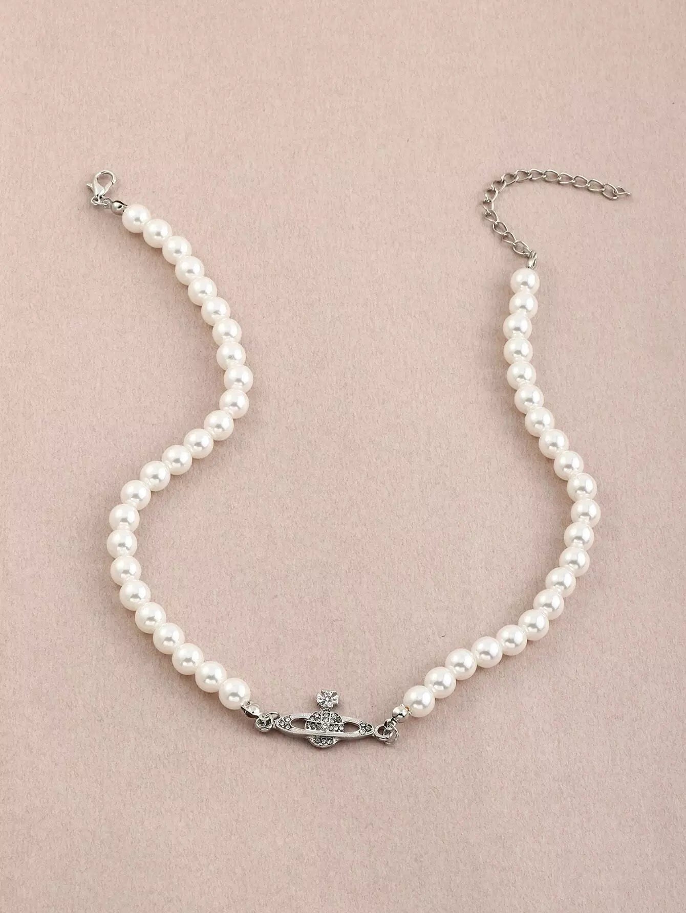 قلادة من خرز اللؤلؤ الصناعي مع حلية كوكبية مرصعة بأحجار الراين