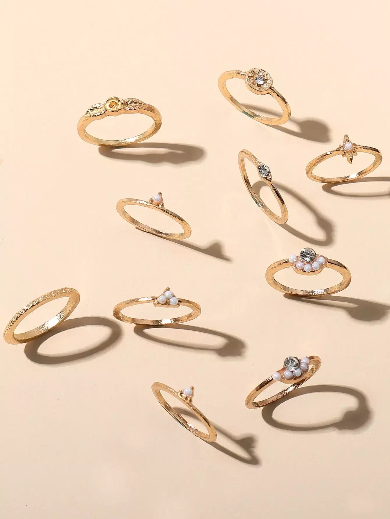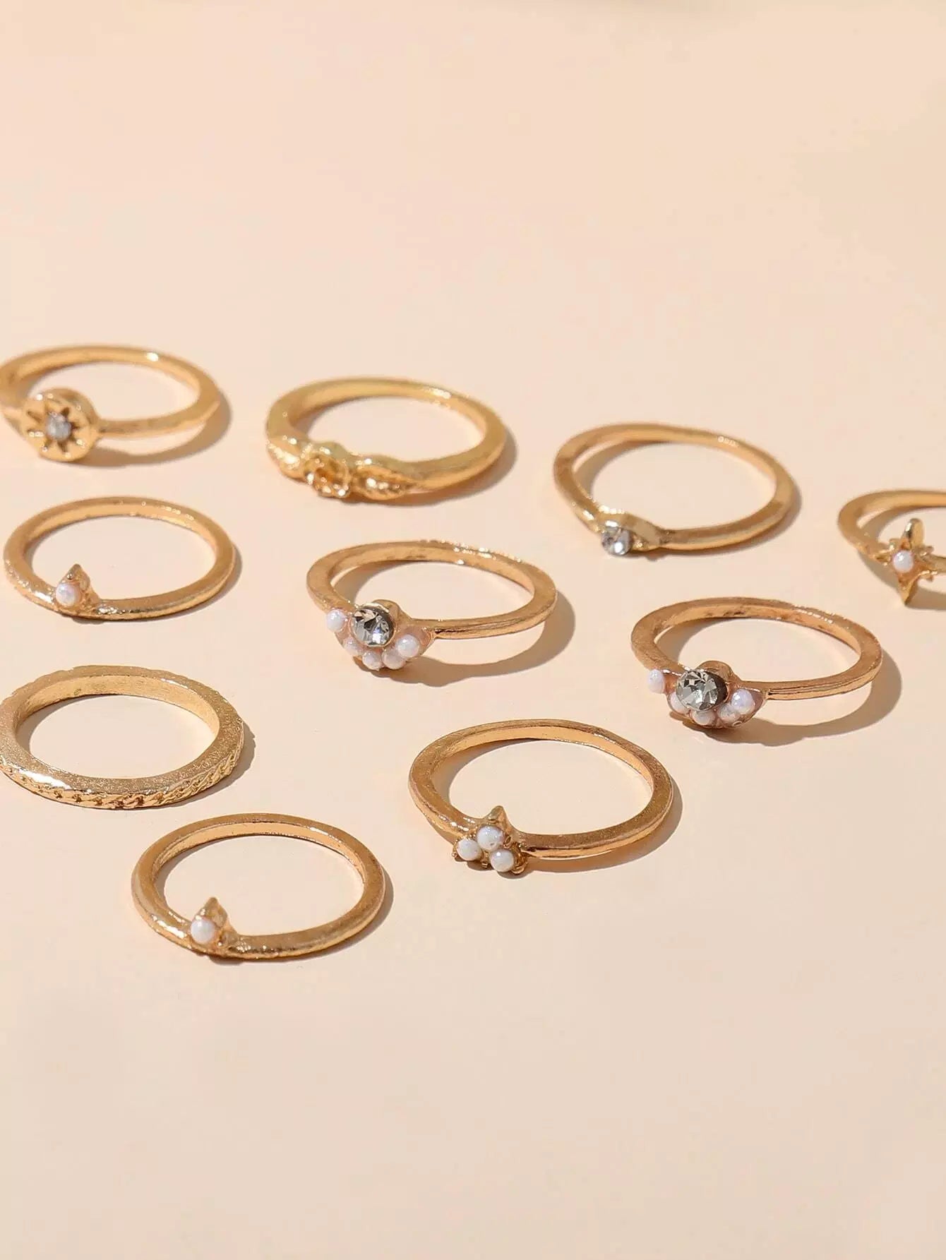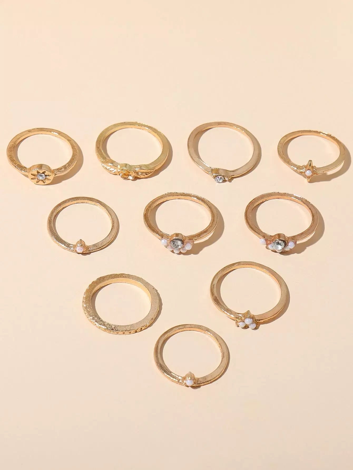 10 قطع من حلقات الديكور المصنوعة من أحجار الراين واللؤلؤ الصناعي