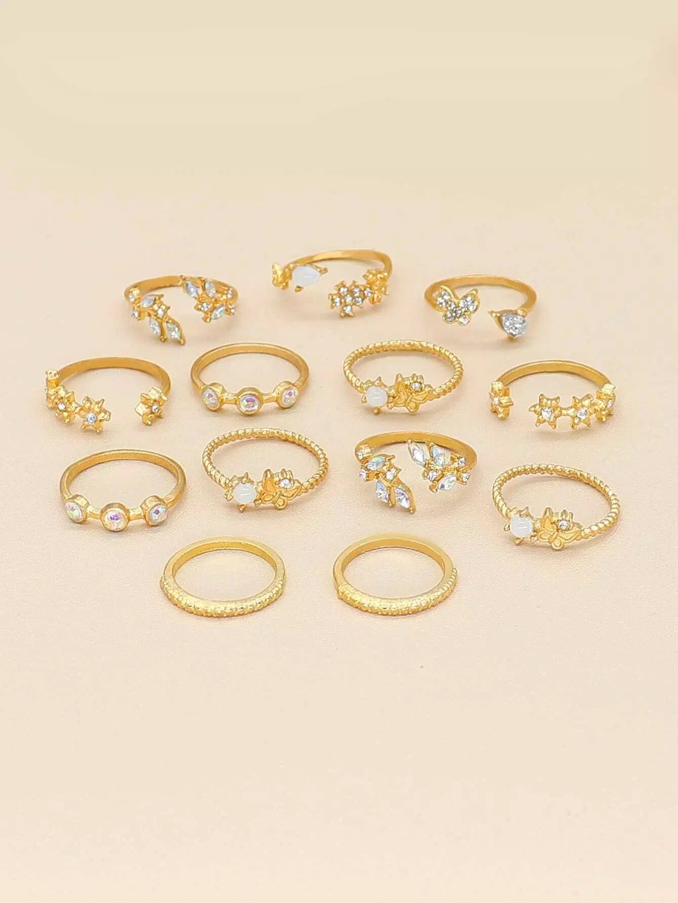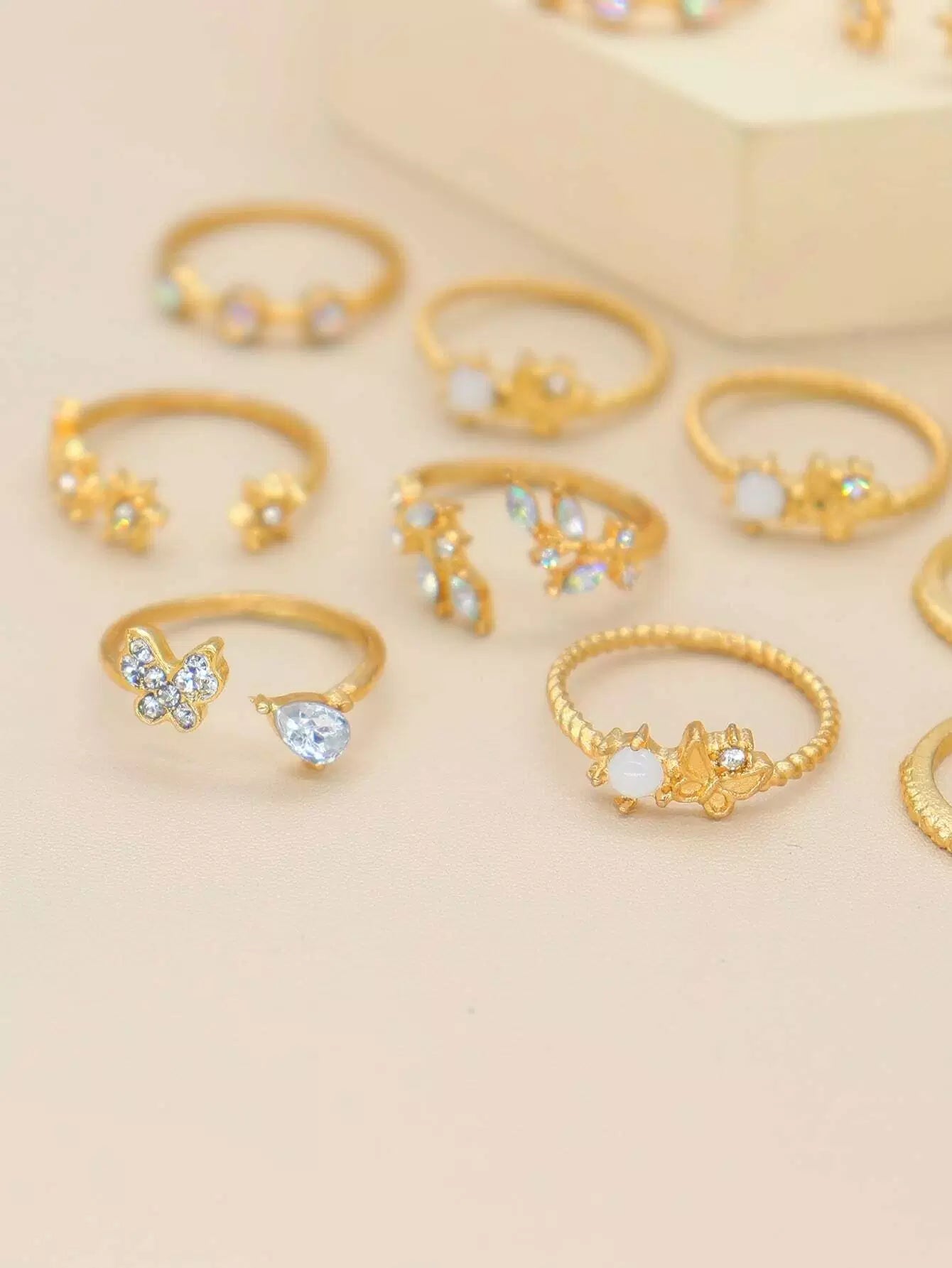للنساء - 13 قطعة من خاتم ديكور الفراشة بحجر الراين