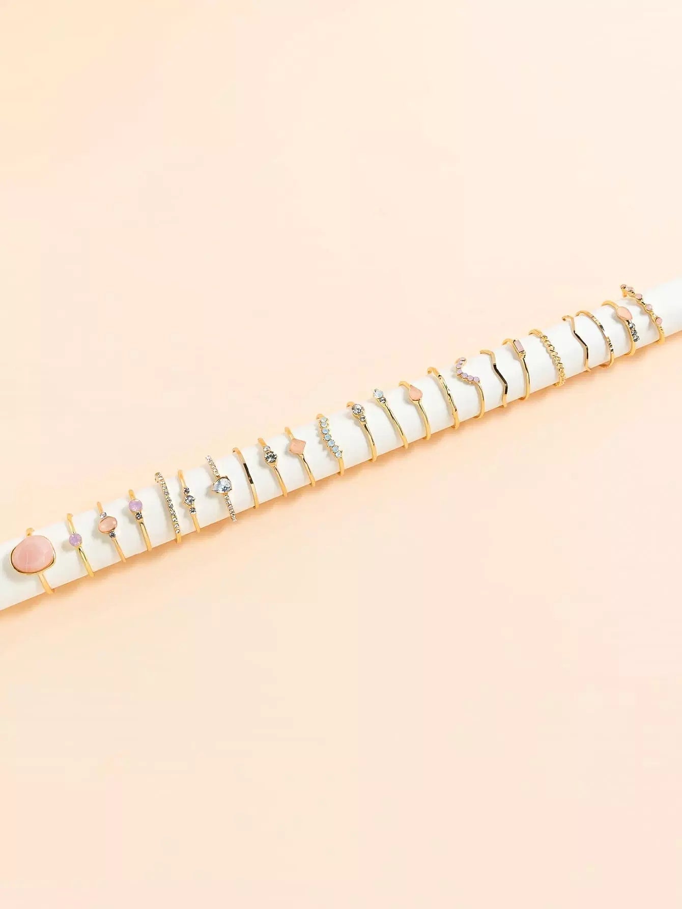 للنساء - 23 قطعة من خاتم ديكور حجر الراين