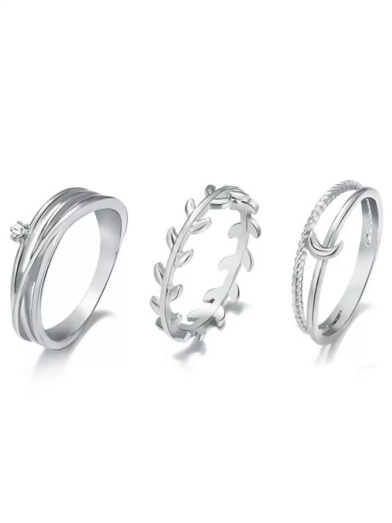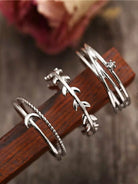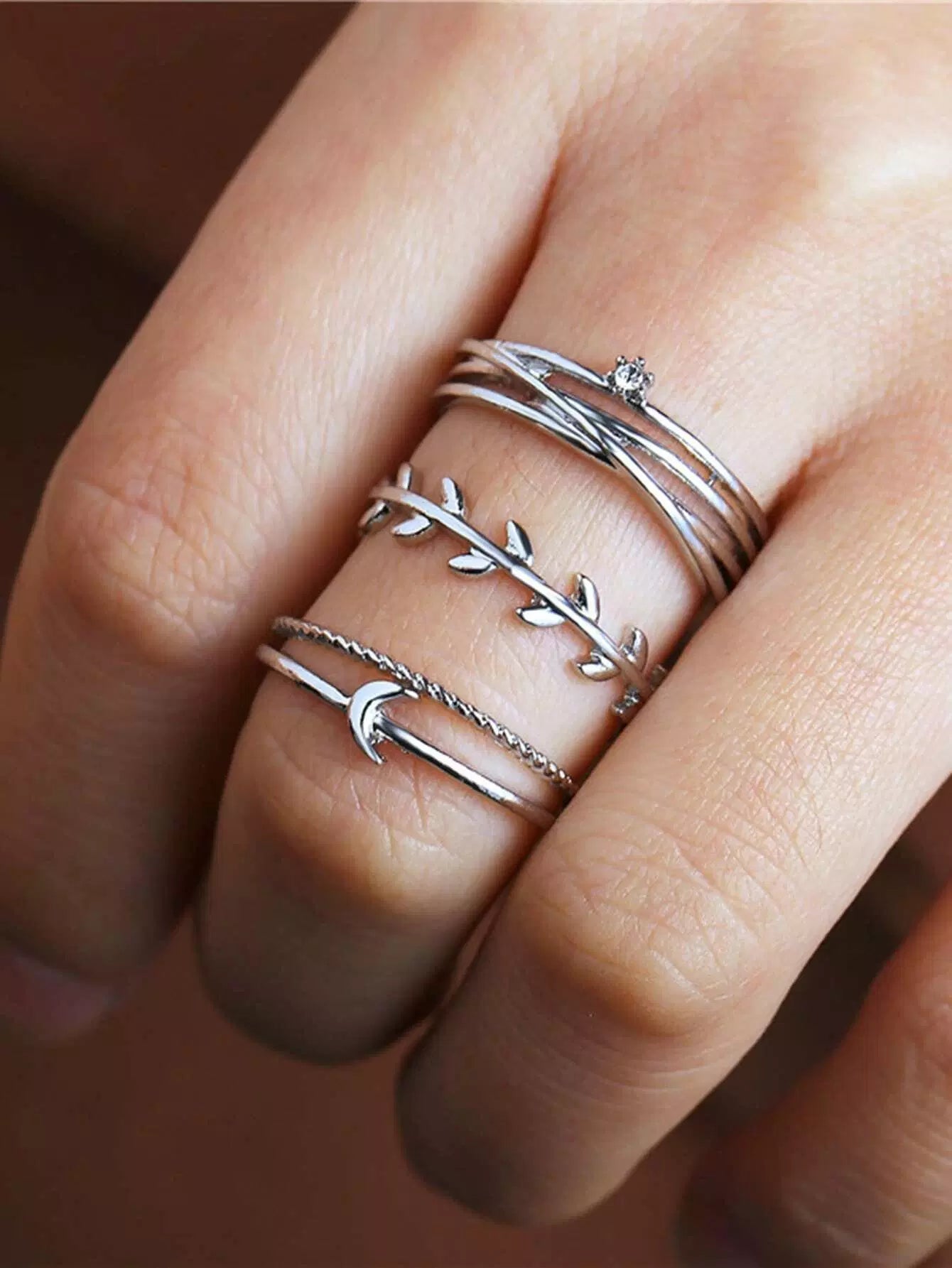 للنساء - 3 قطع من حلقات ديكور فرع القمر والشجرة
