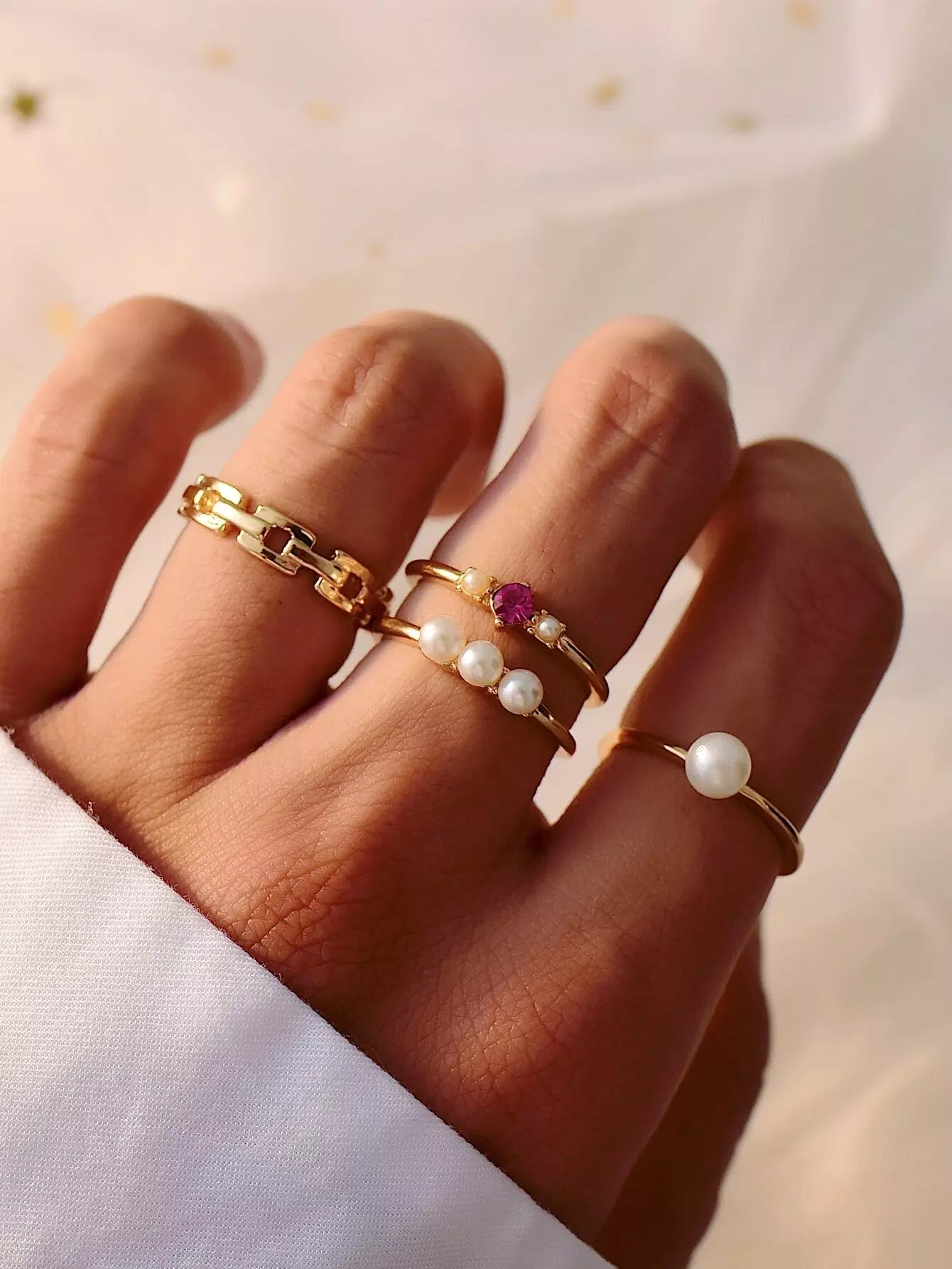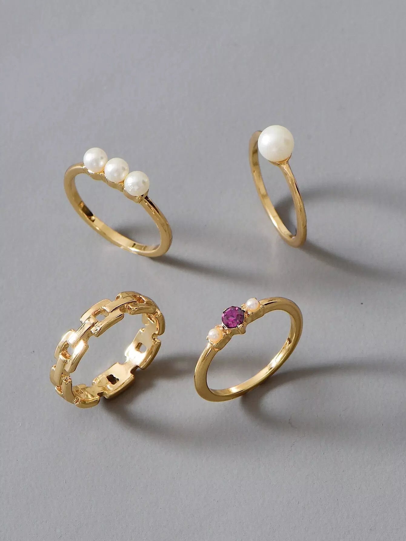 4 قطع خاتم تزيين اللؤلؤ الصناعي