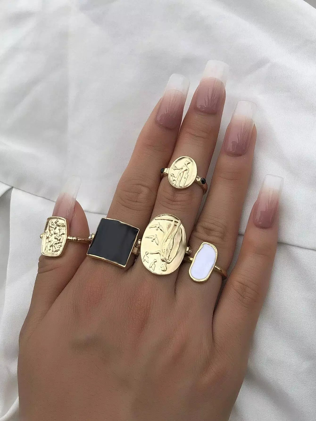 للنساء - 5 قطع خاتم بتصميم هندسي