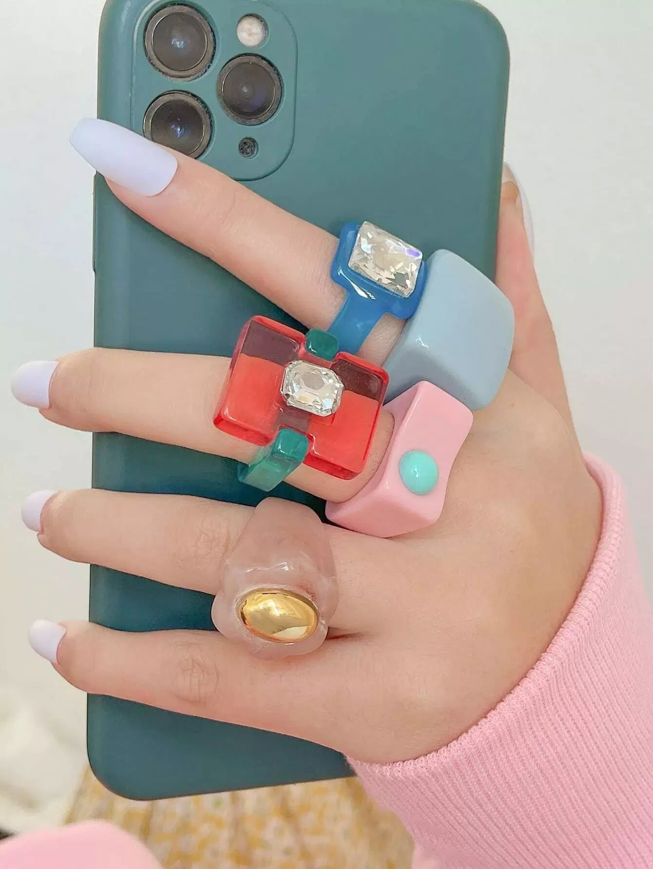 5 قطع من حلقات الديكور المصنوعة من أحجار الراين والأشكال الهندسية