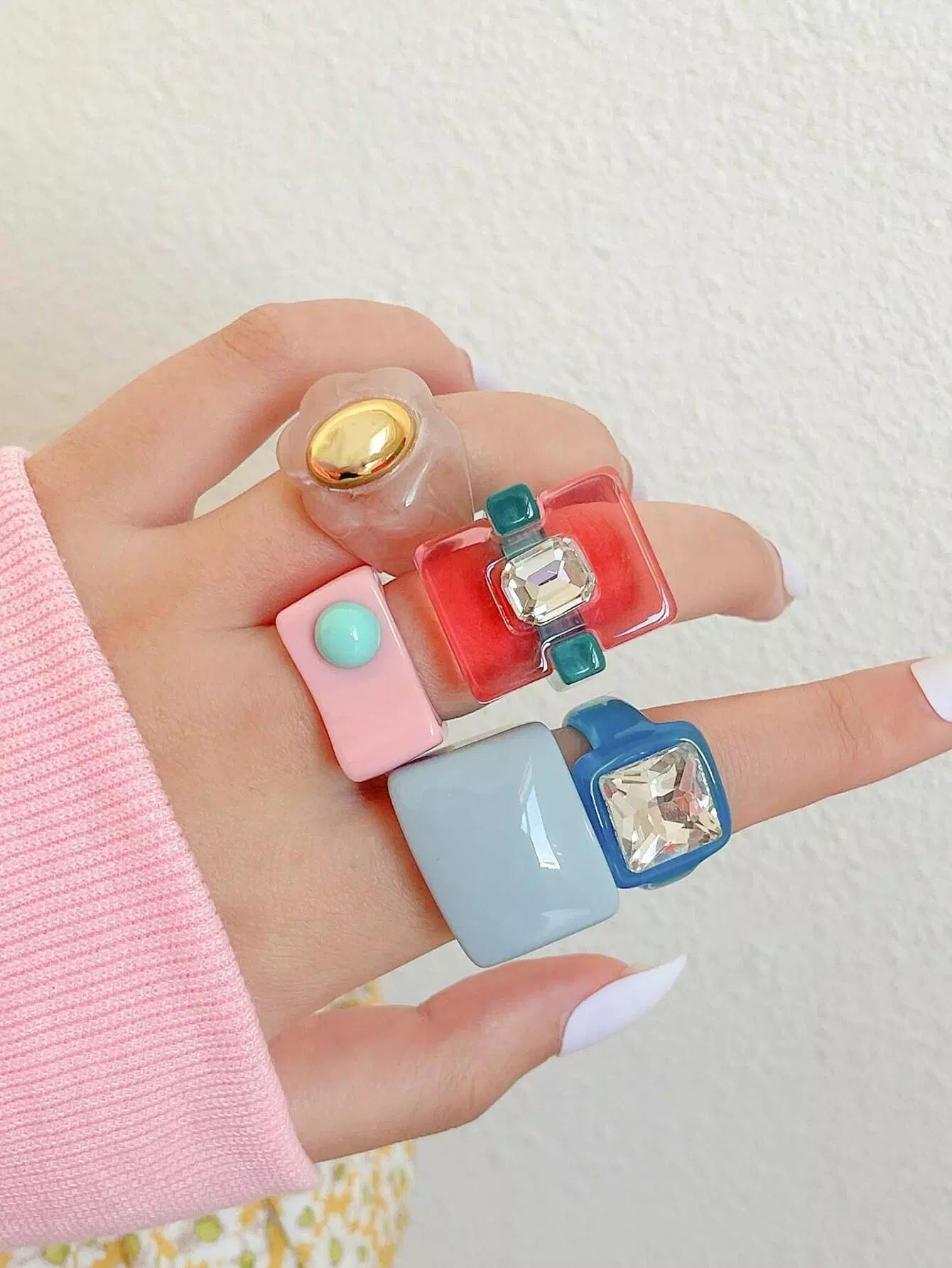 للنساء - 5 قطع من حجر الراين وخاتم ديكور هندسي