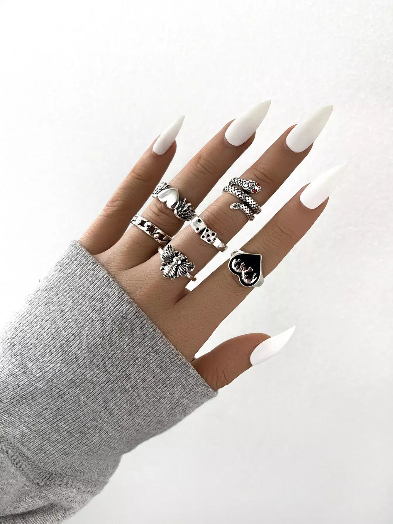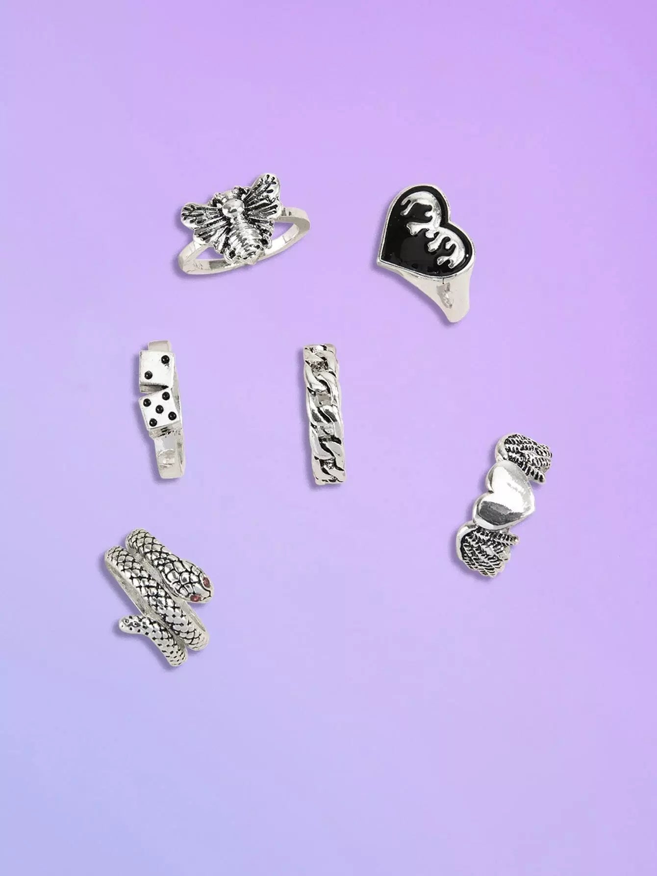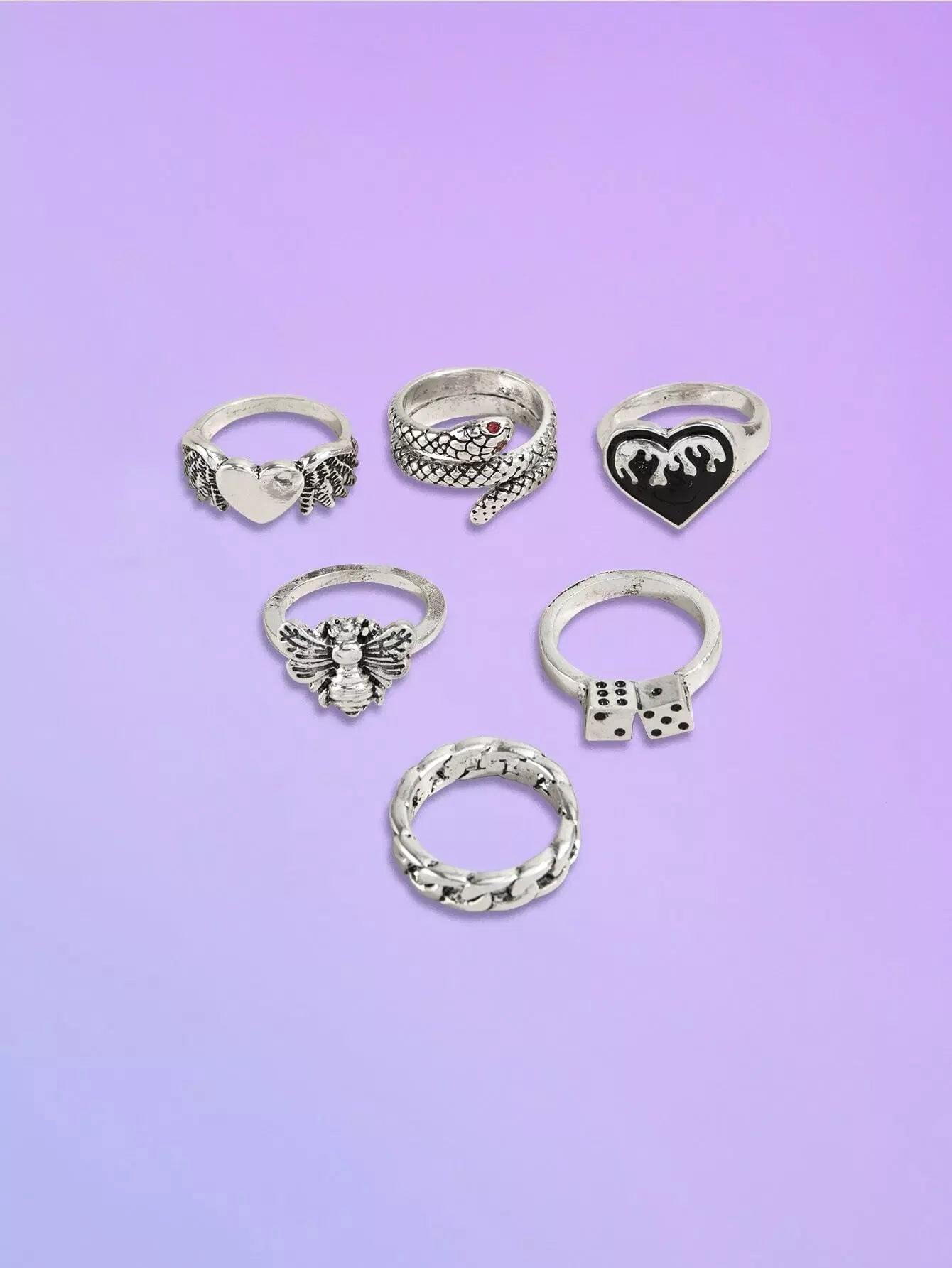 للنساء - مجموعة خواتم قلب ونرد مكونة من 6 قطع