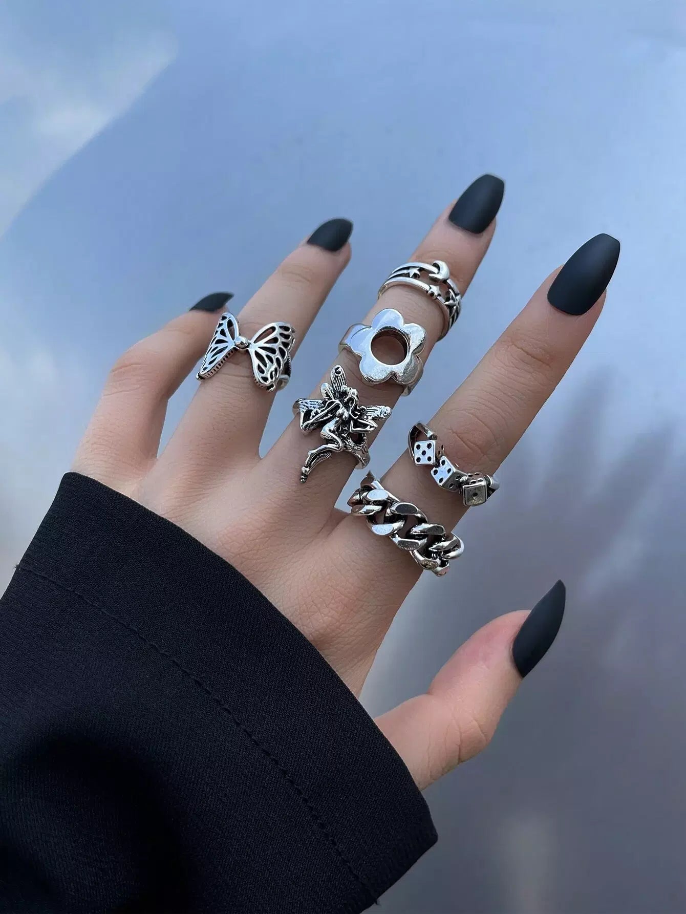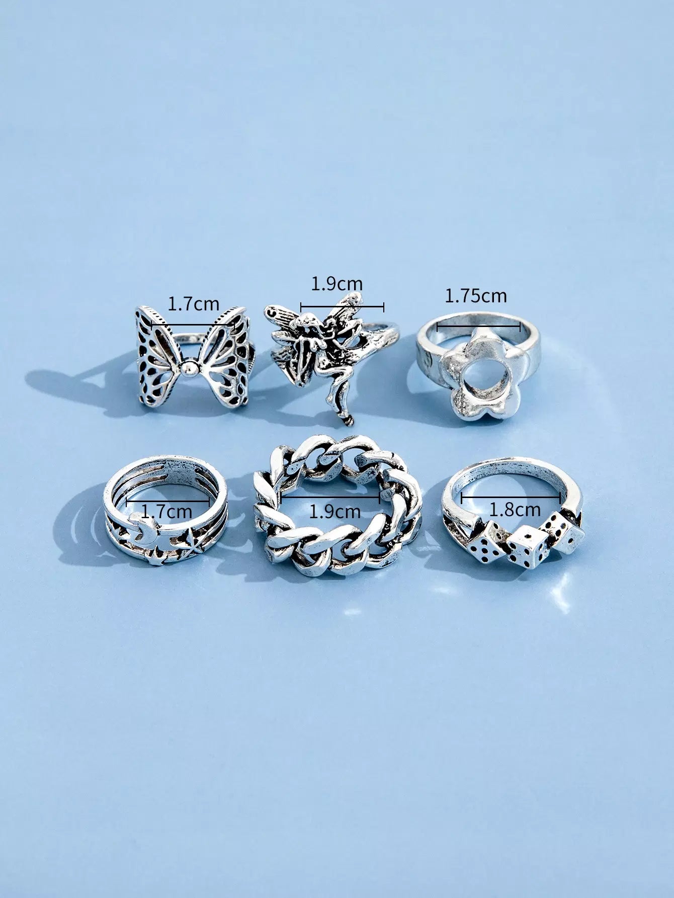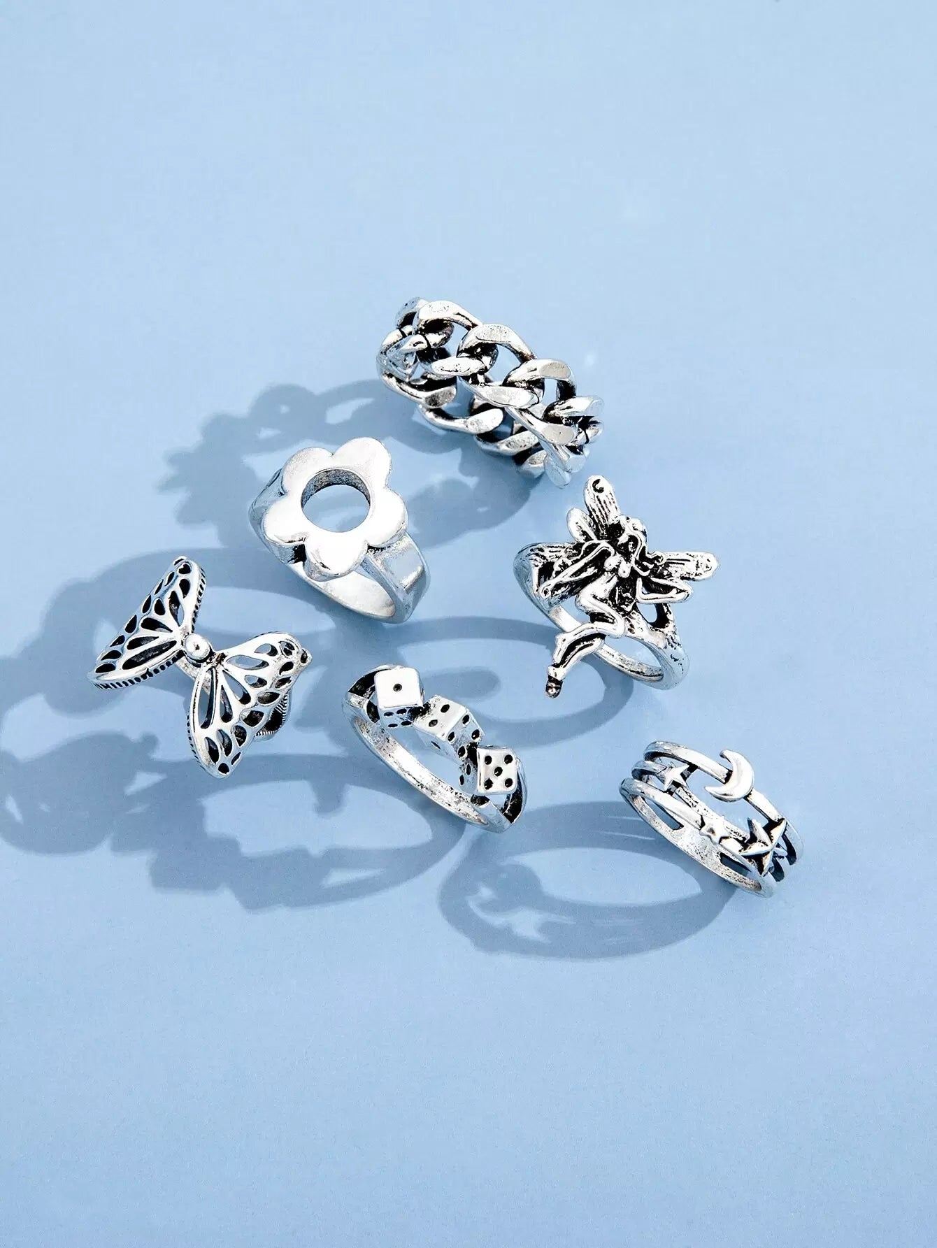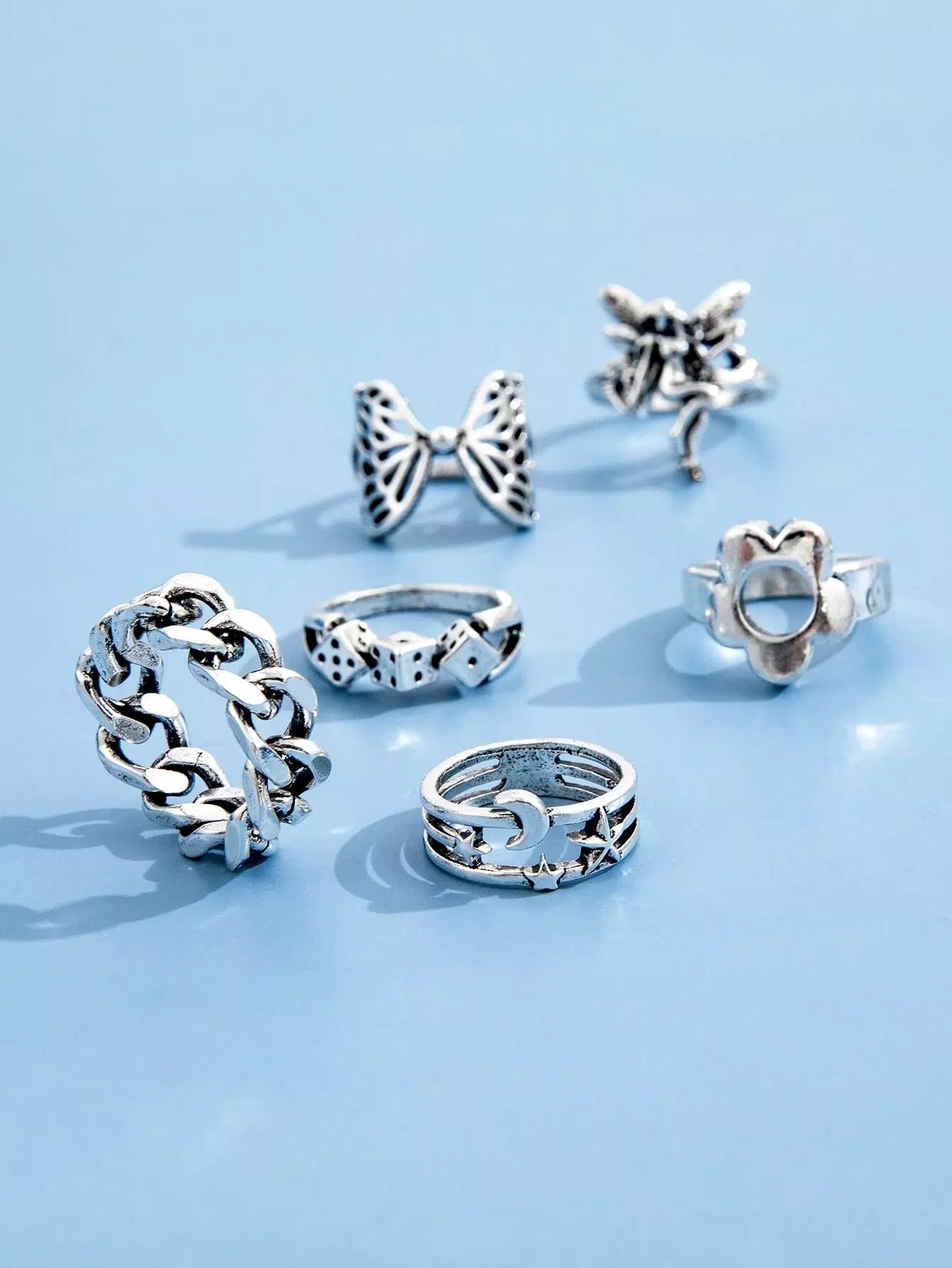 للنساء - 6 قطع من خاتم ديكور القمر والنجمة