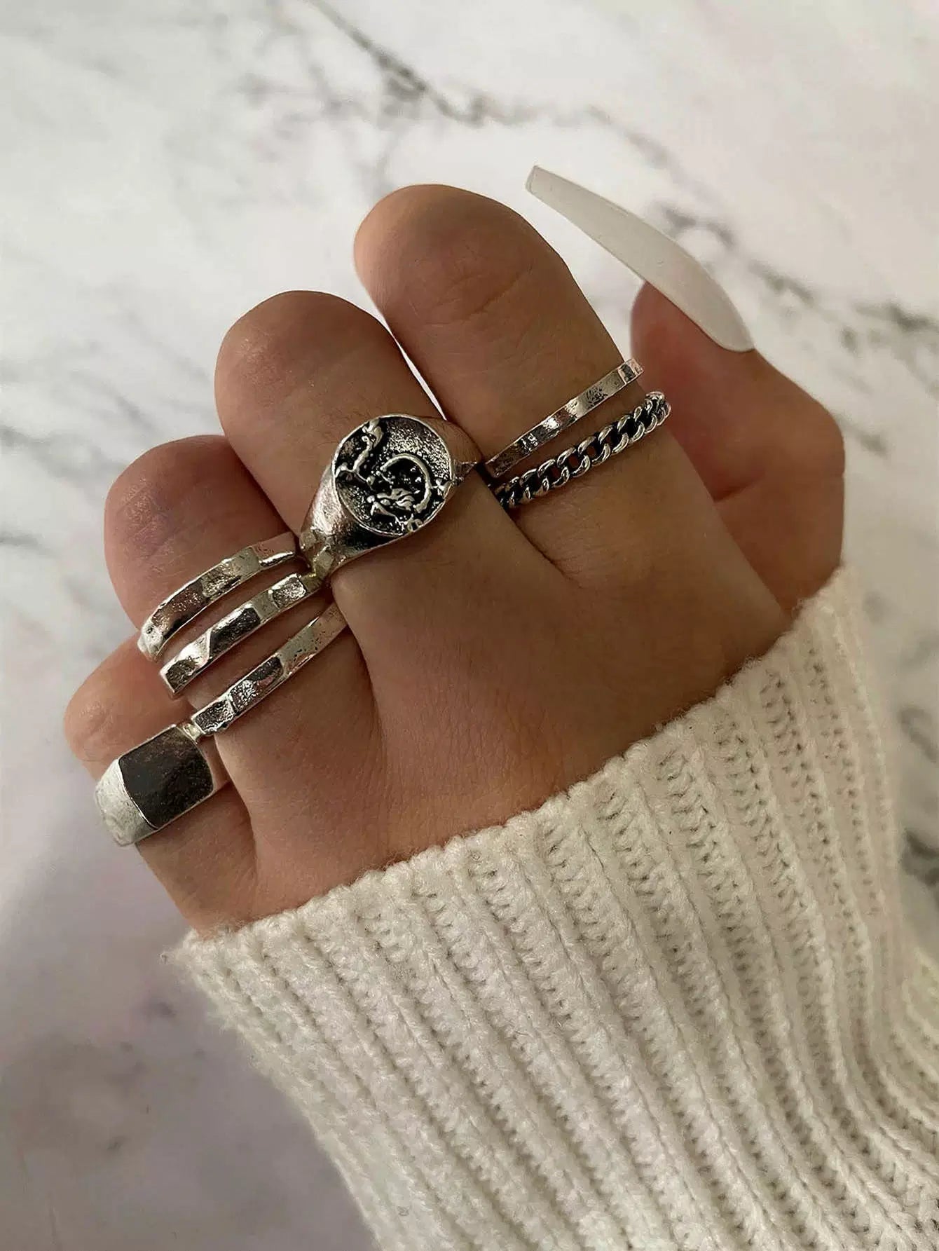 للنساء - 7 قطع خاتم منقوش على شكل حيوان