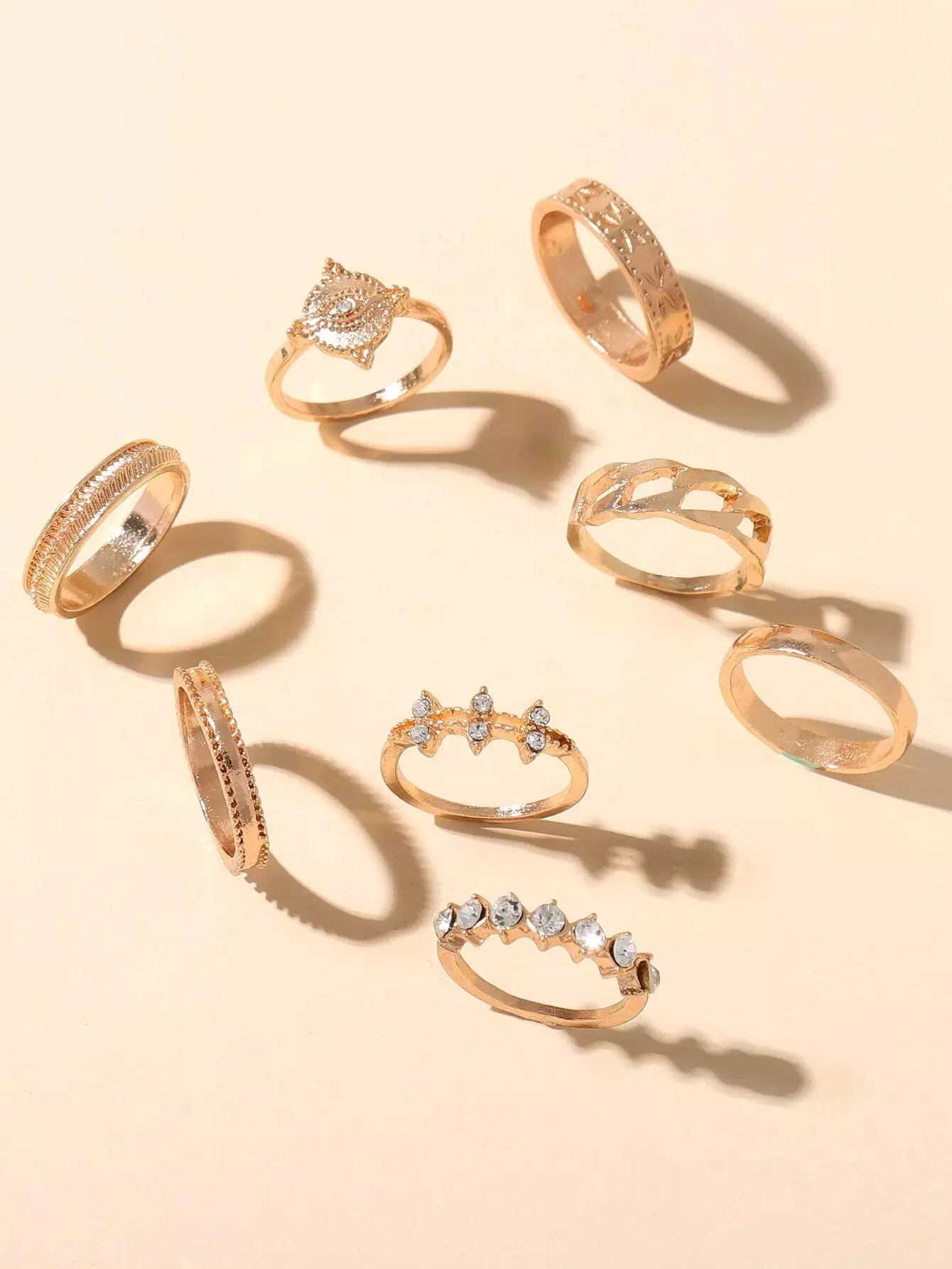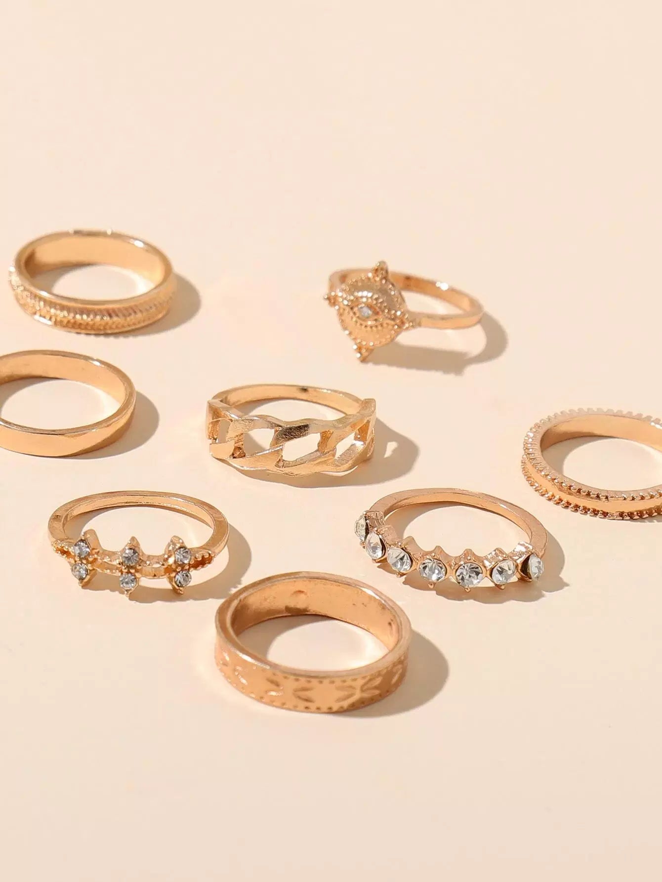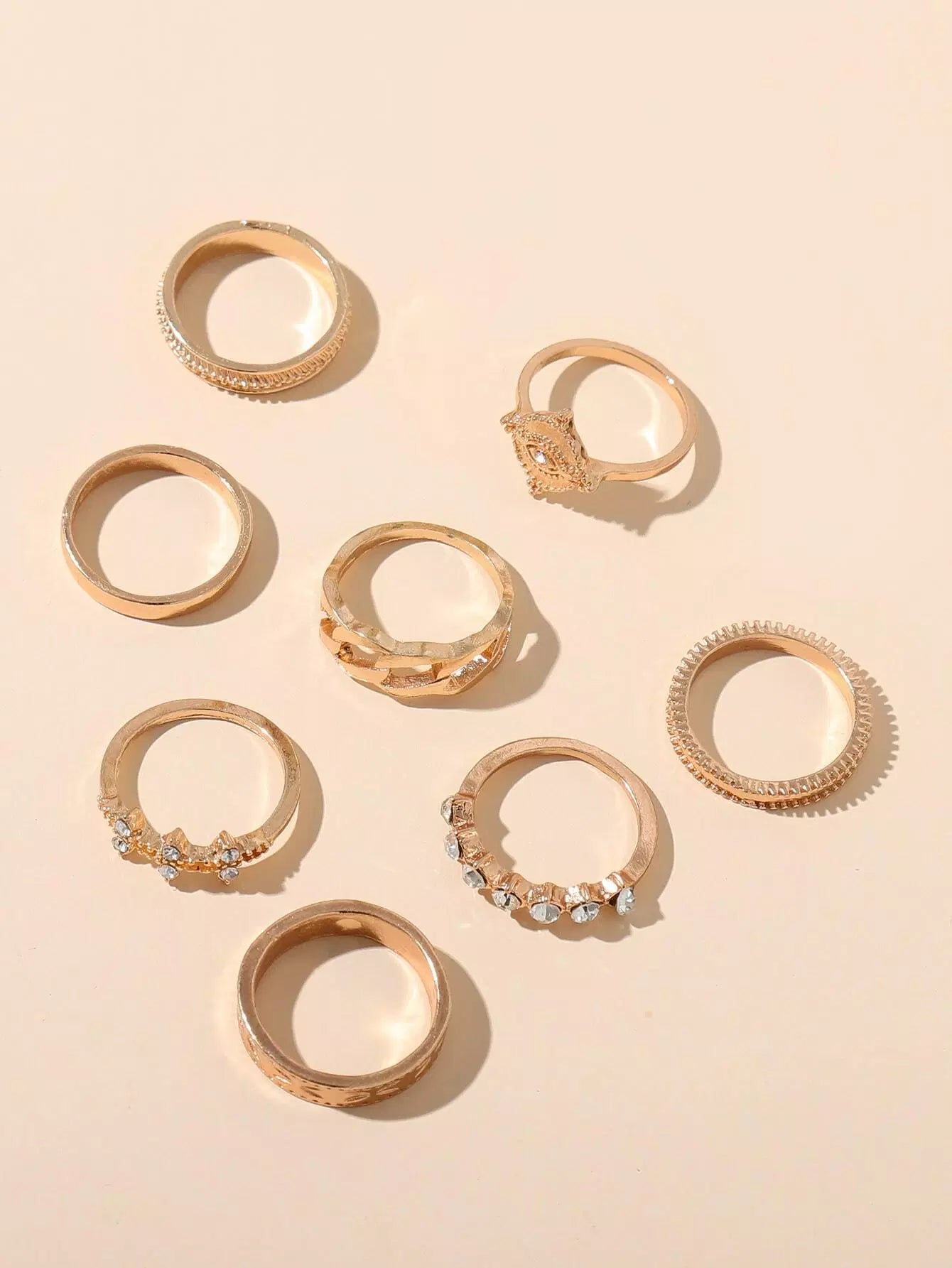 8 قطع من حلقات معدنية مزخرفة بأحجار الراين