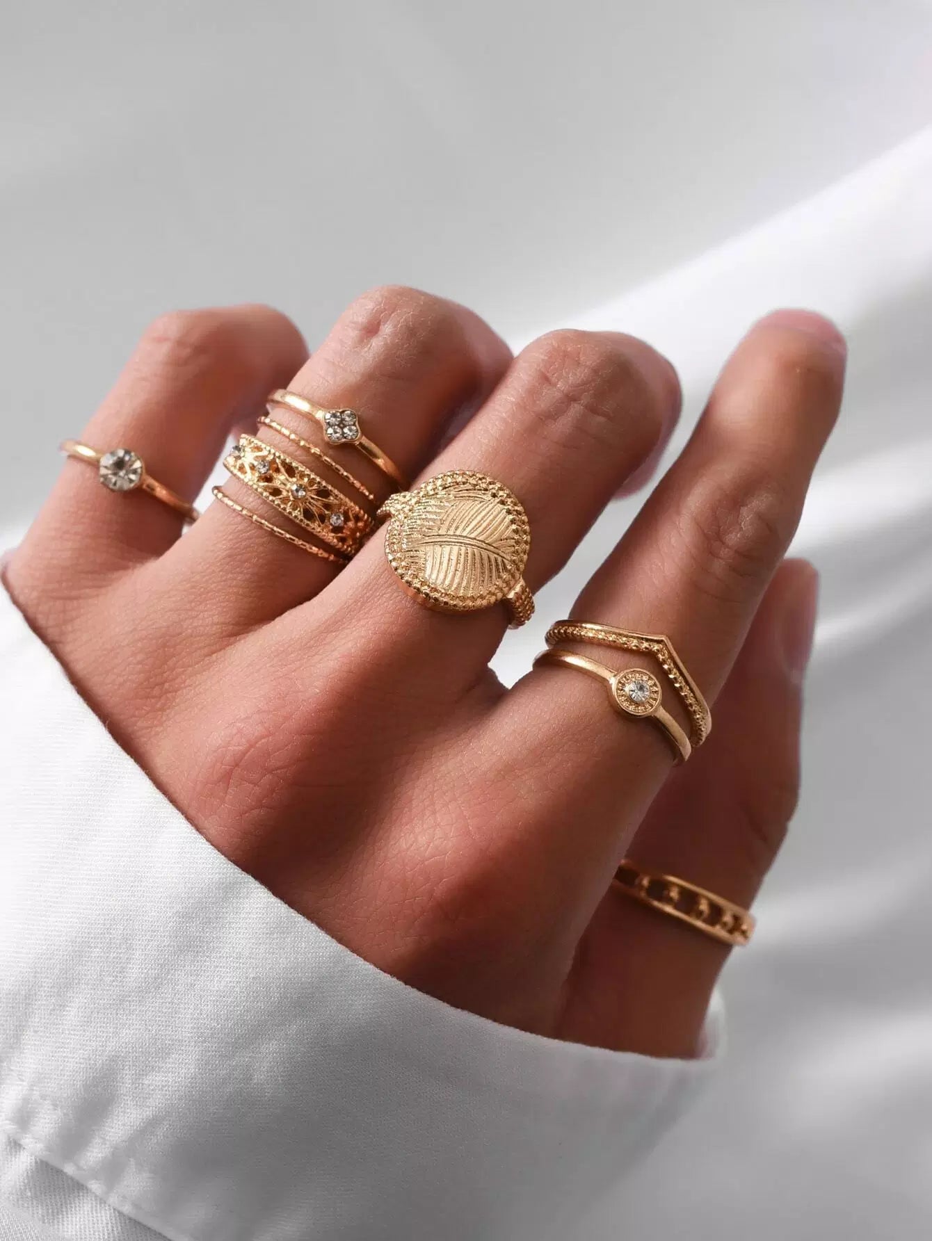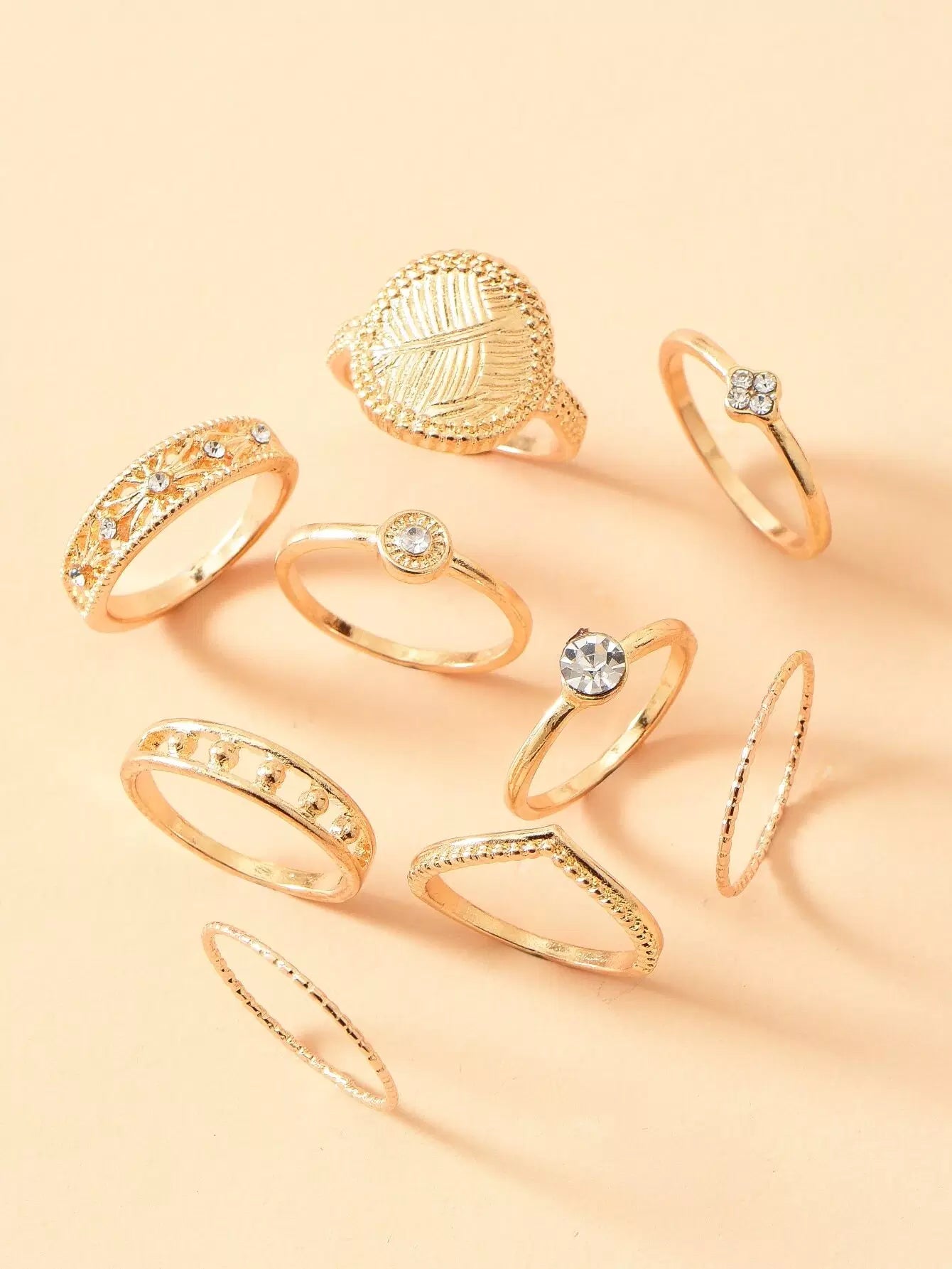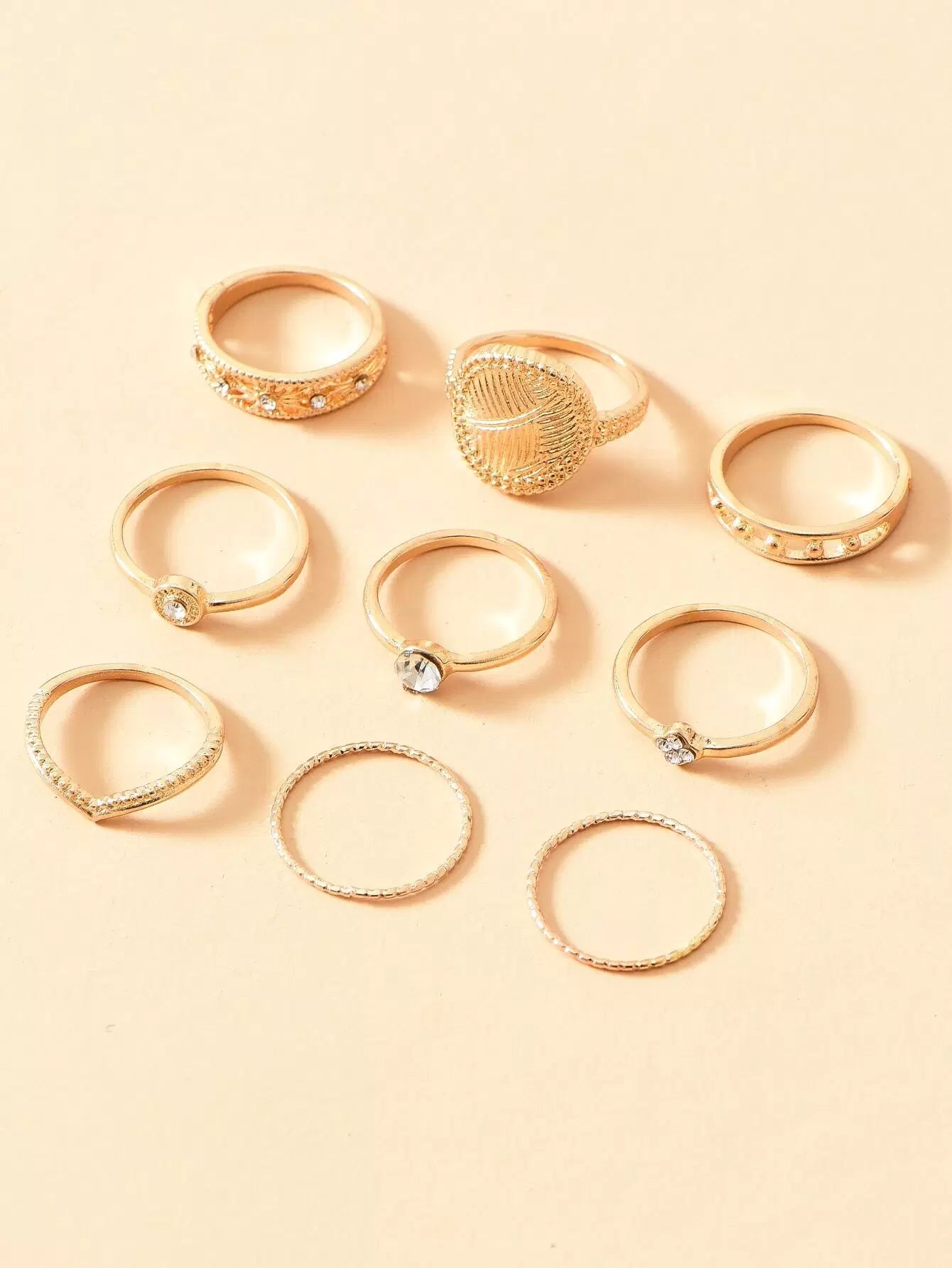 للنساء - 9 قطع من خاتم ديكور حجر الراين