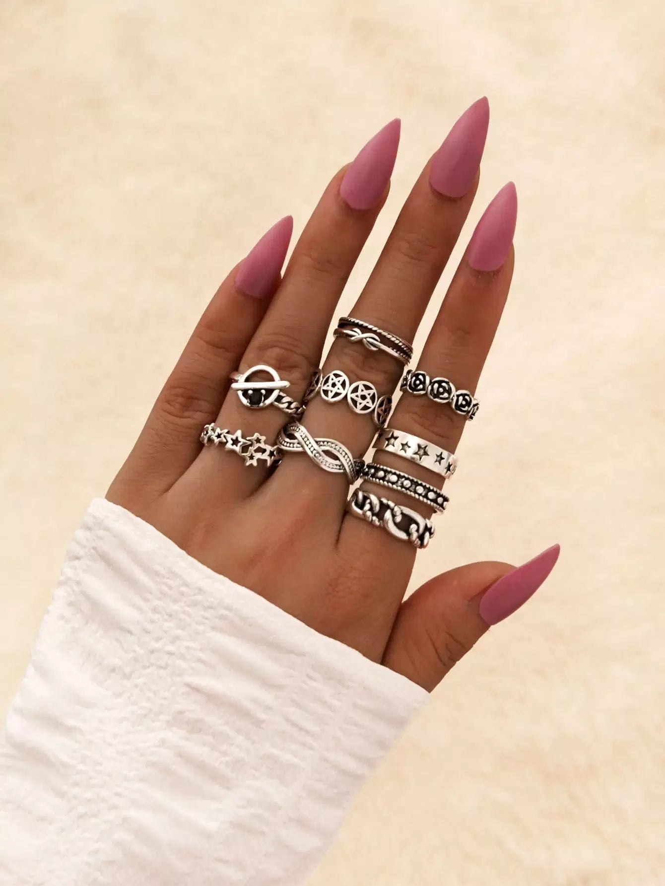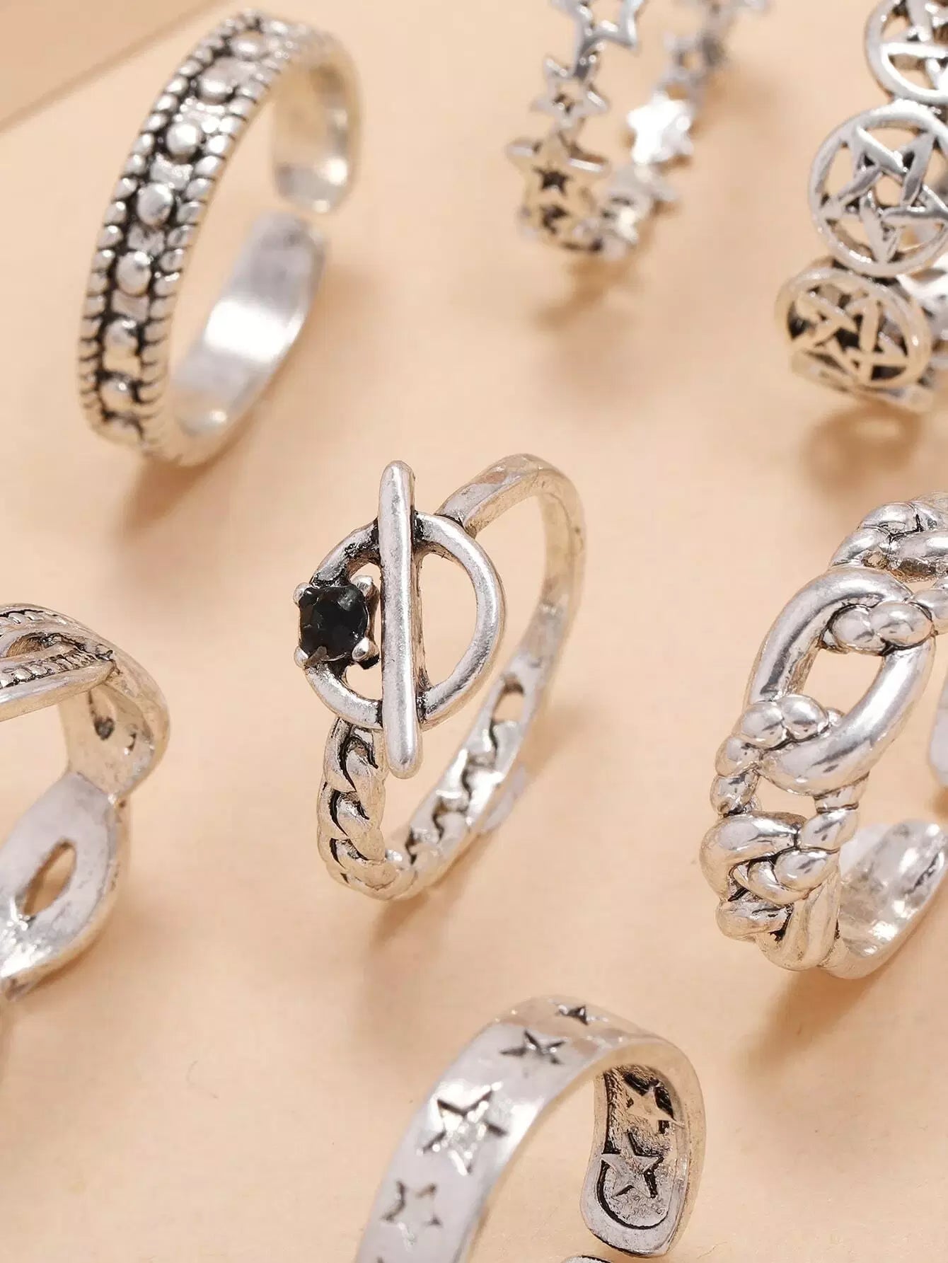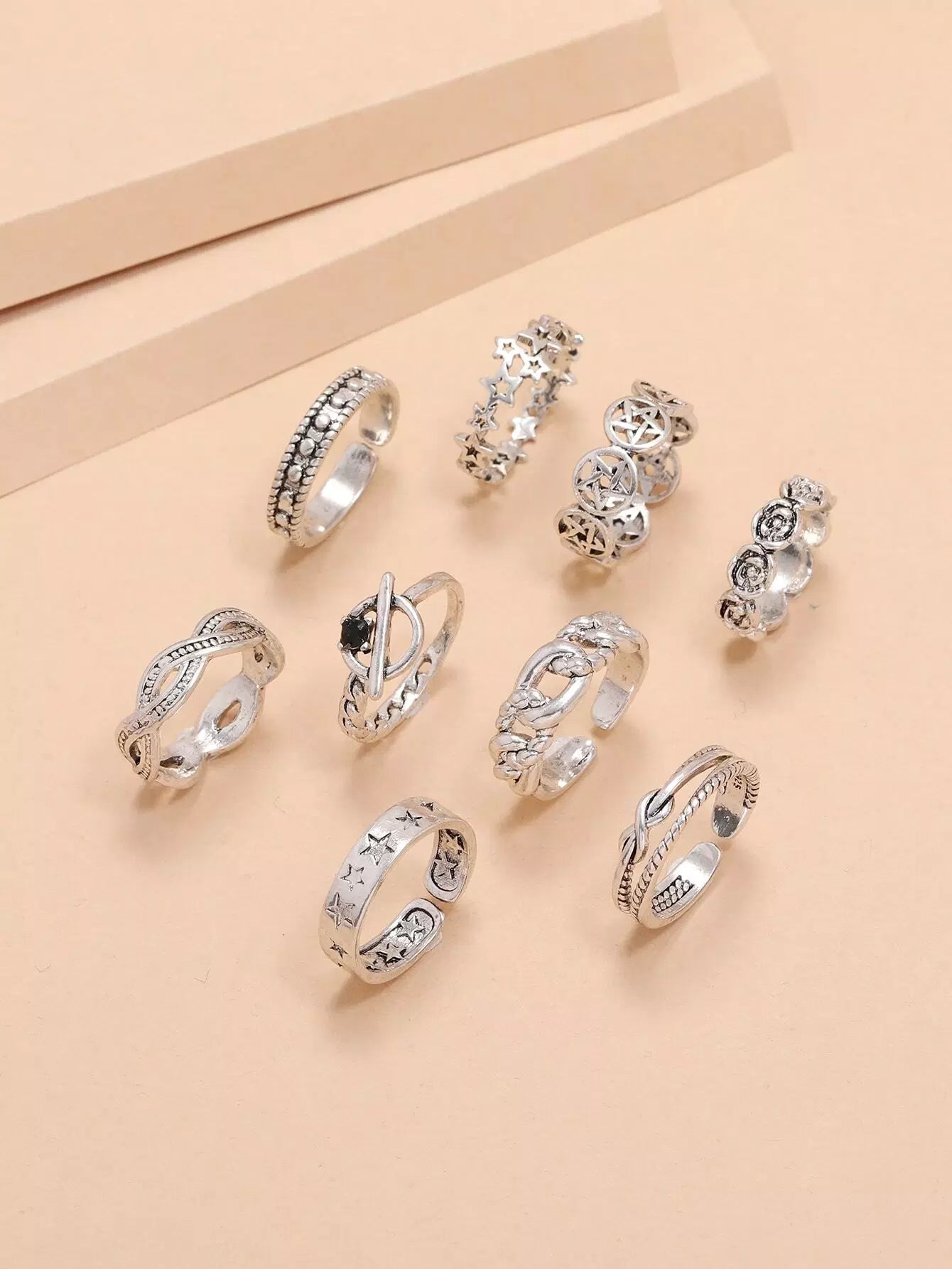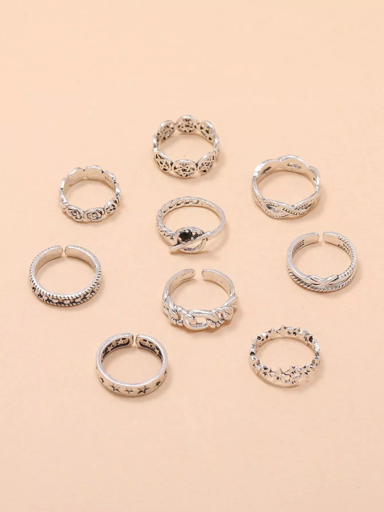 للنساء - 9 قطع خاتم ديكور على شكل نجمة وزهرة