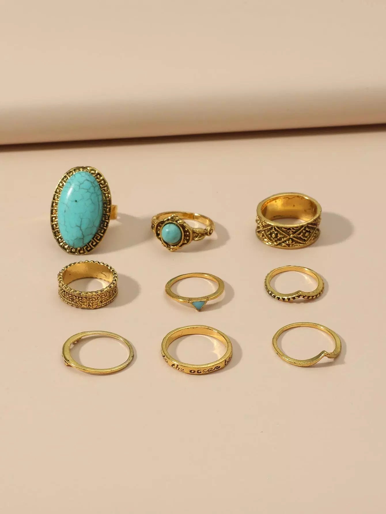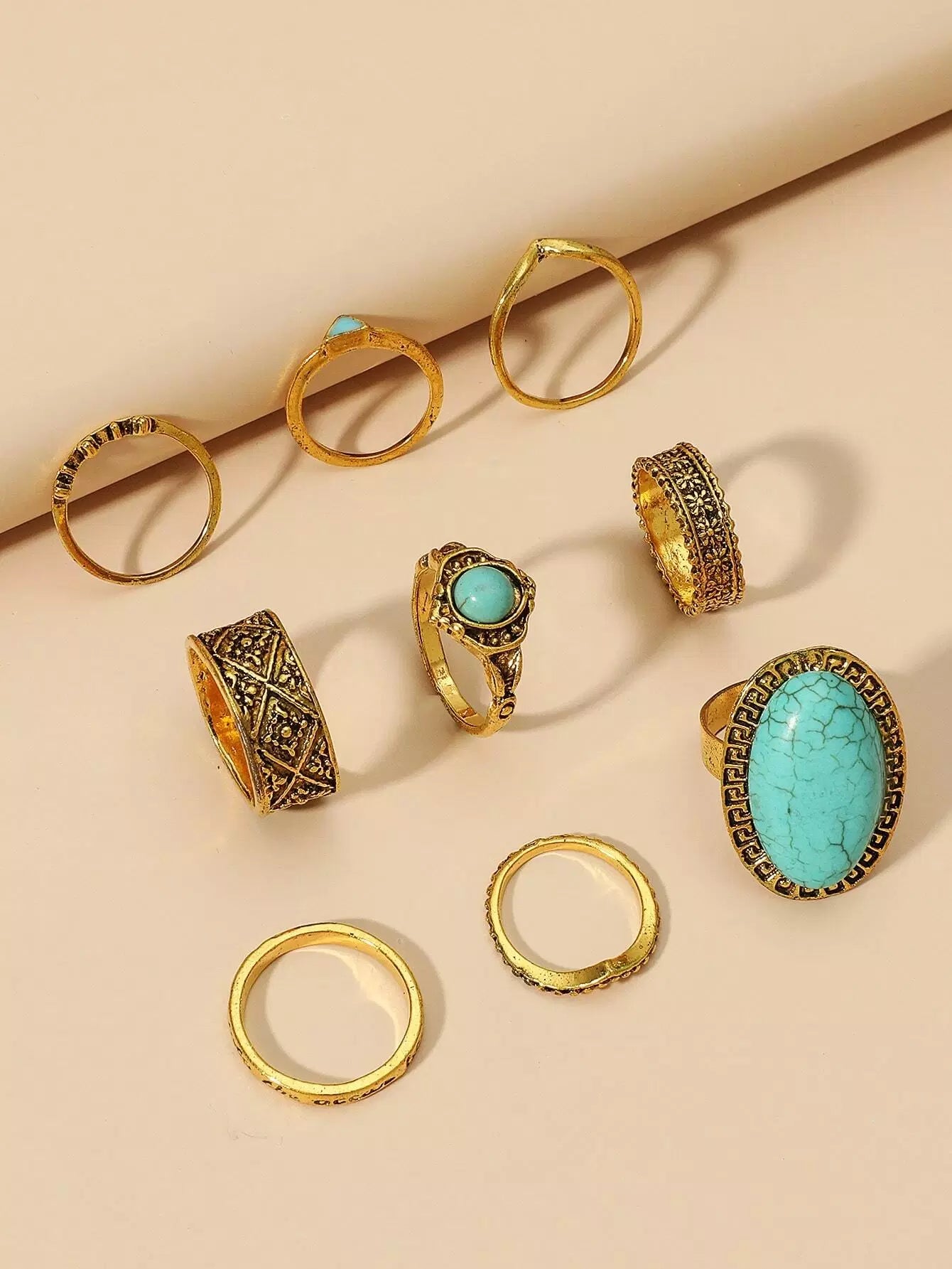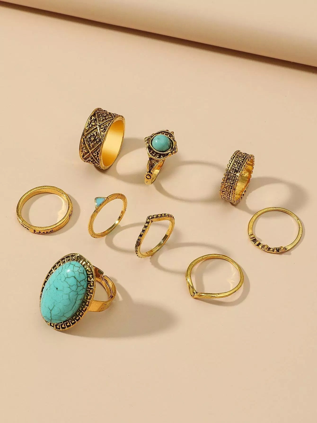 نسائي - 9 قطع خاتم ديكور فيروزي