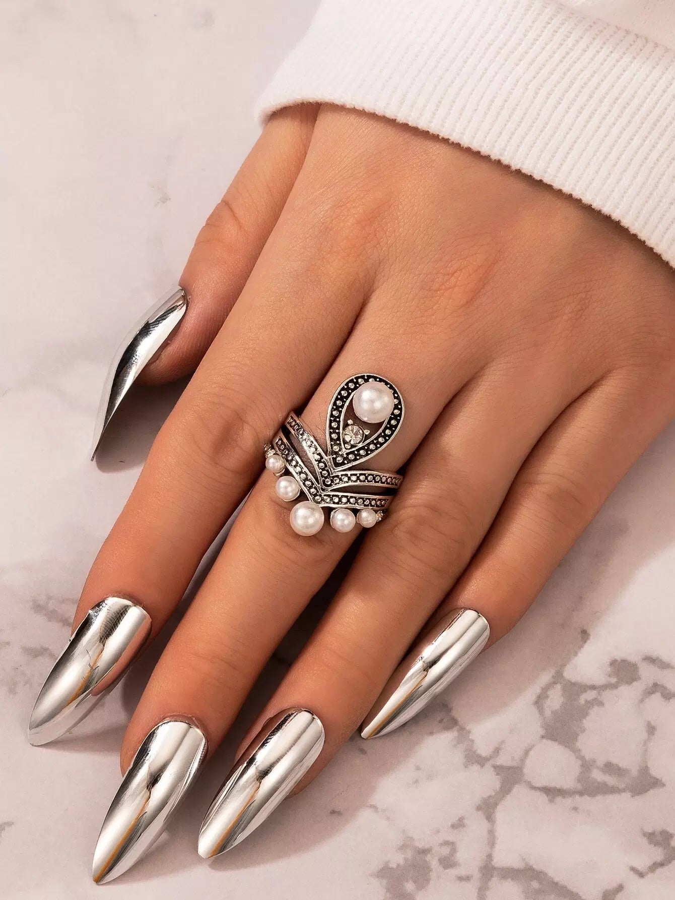 النساء - خاتم ديكور من اللؤلؤ الصناعي