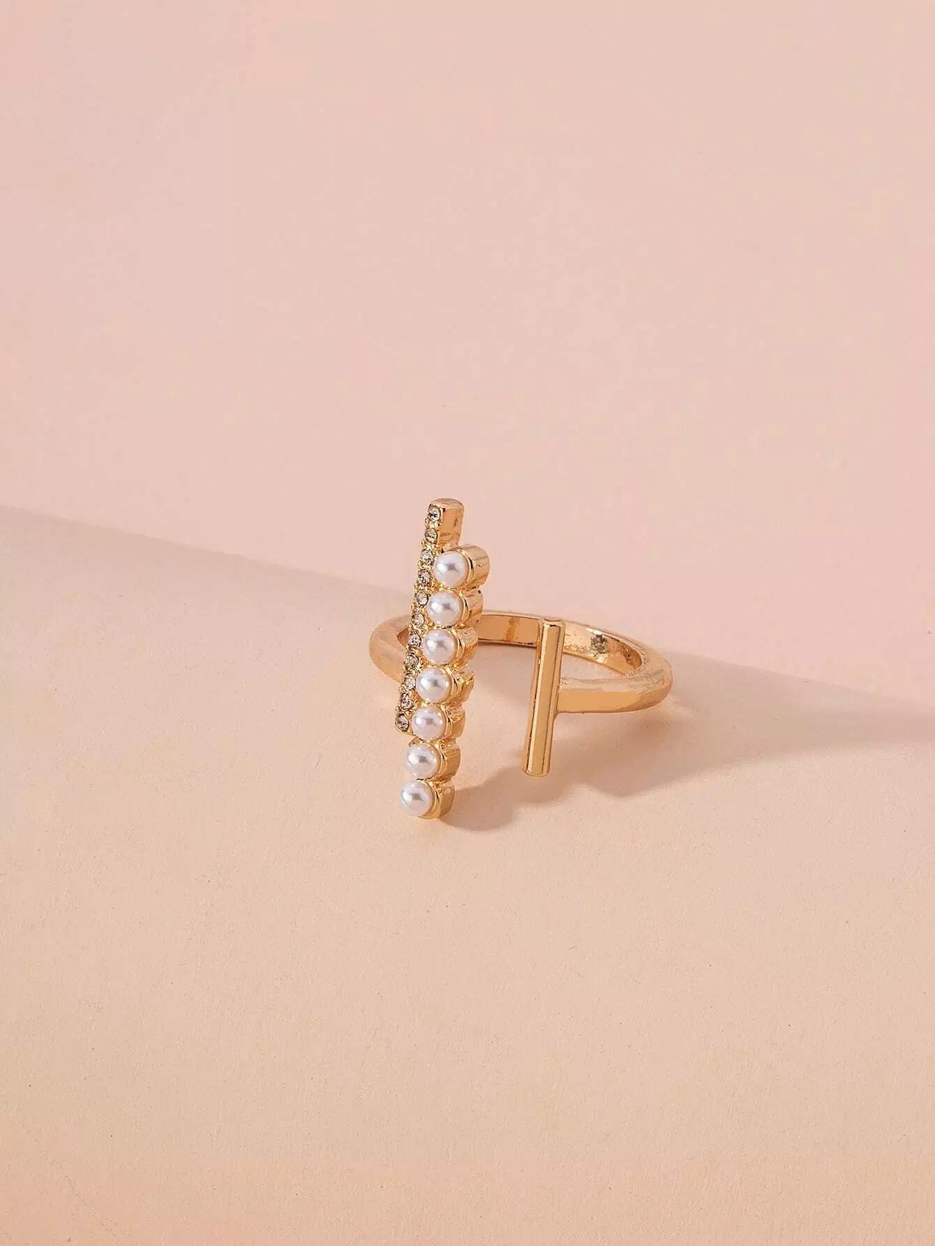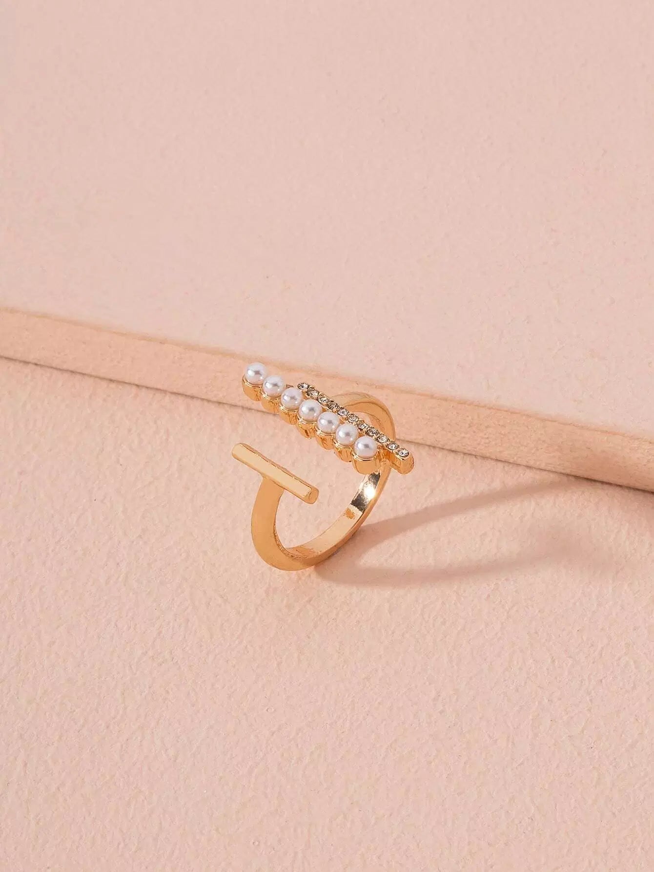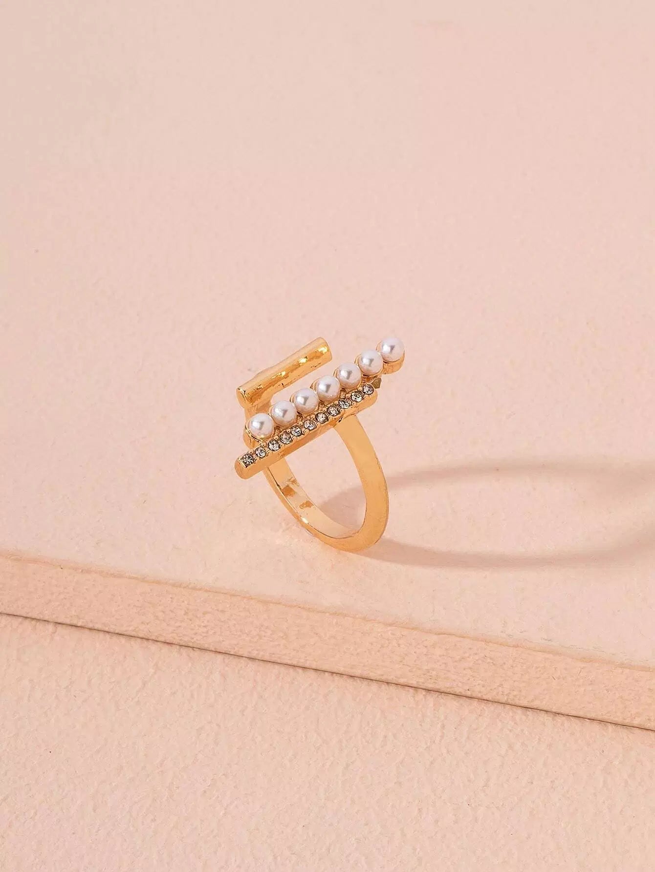للنساء - خاتم ديكور من اللؤلؤ الصناعي وحجر الراين
