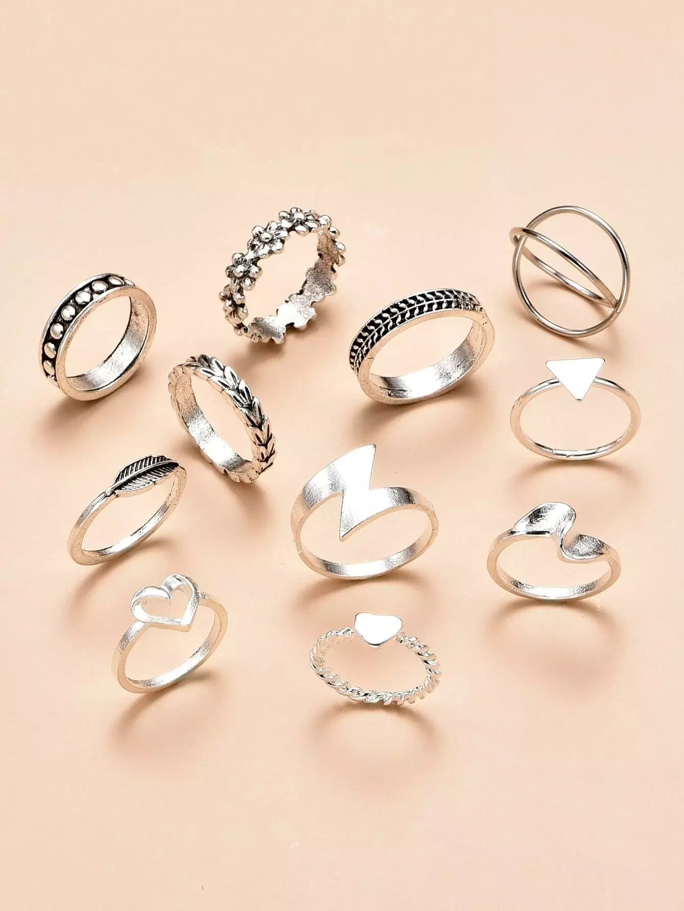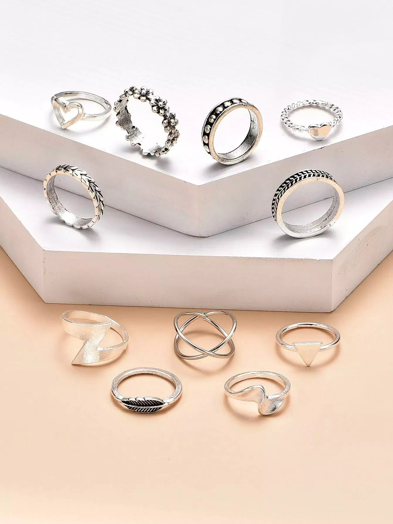 للنساء - خاتم ديكور على شكل قلب وأشكال هندسية