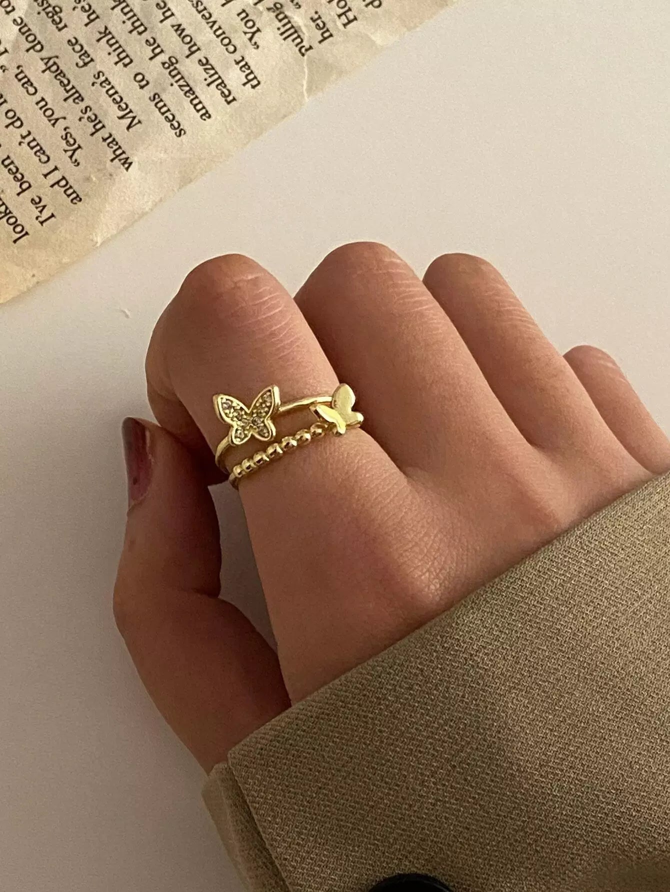 خاتم ديكور على شكل فراشة مرصع بأحجار الراين