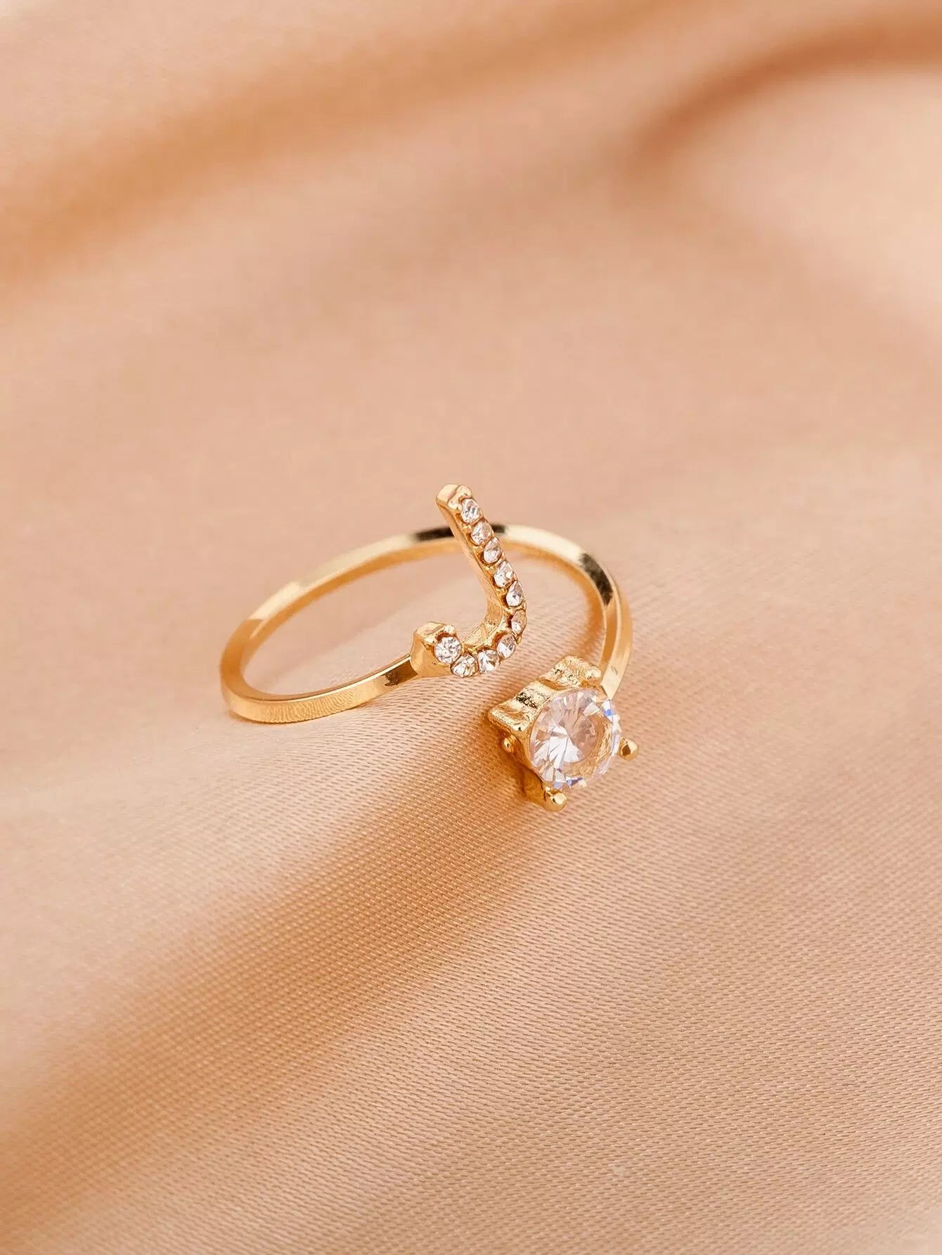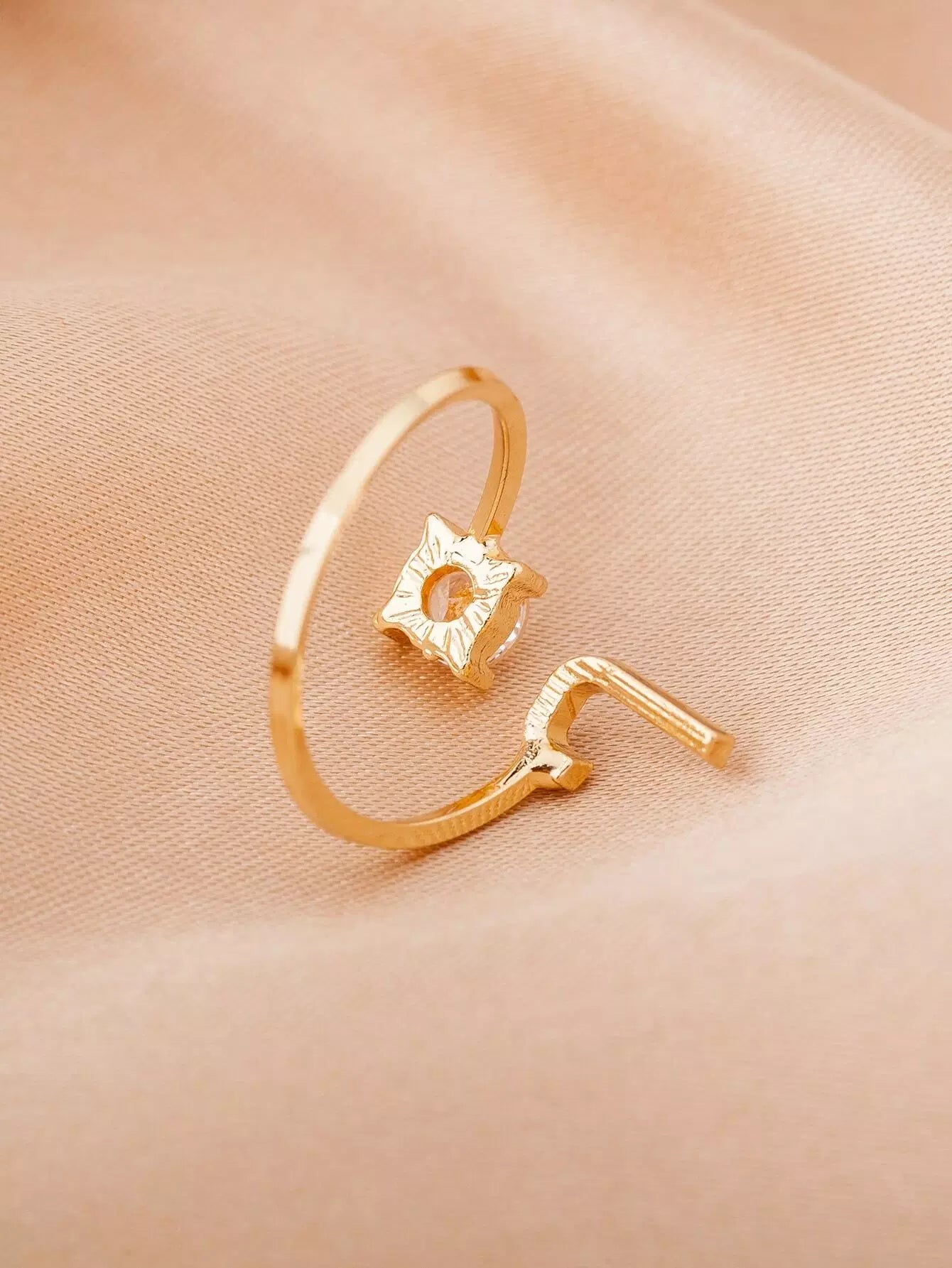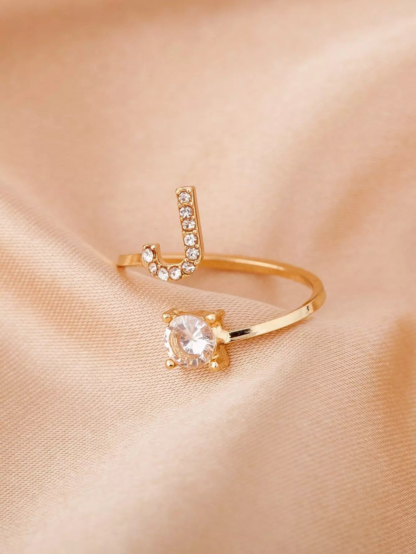 للنساء - خاتم بتصميم حرف مزخرف بحجر الراين
