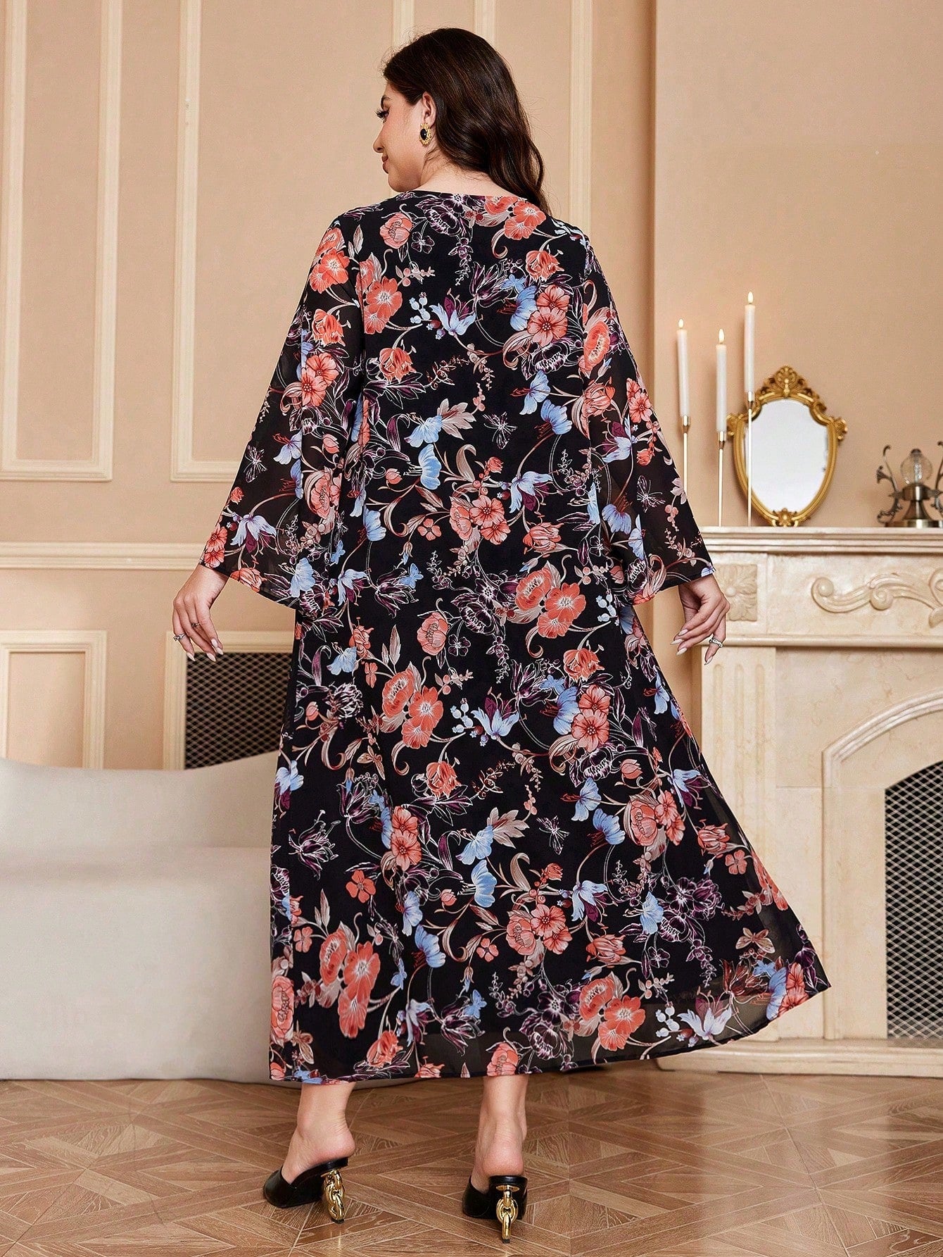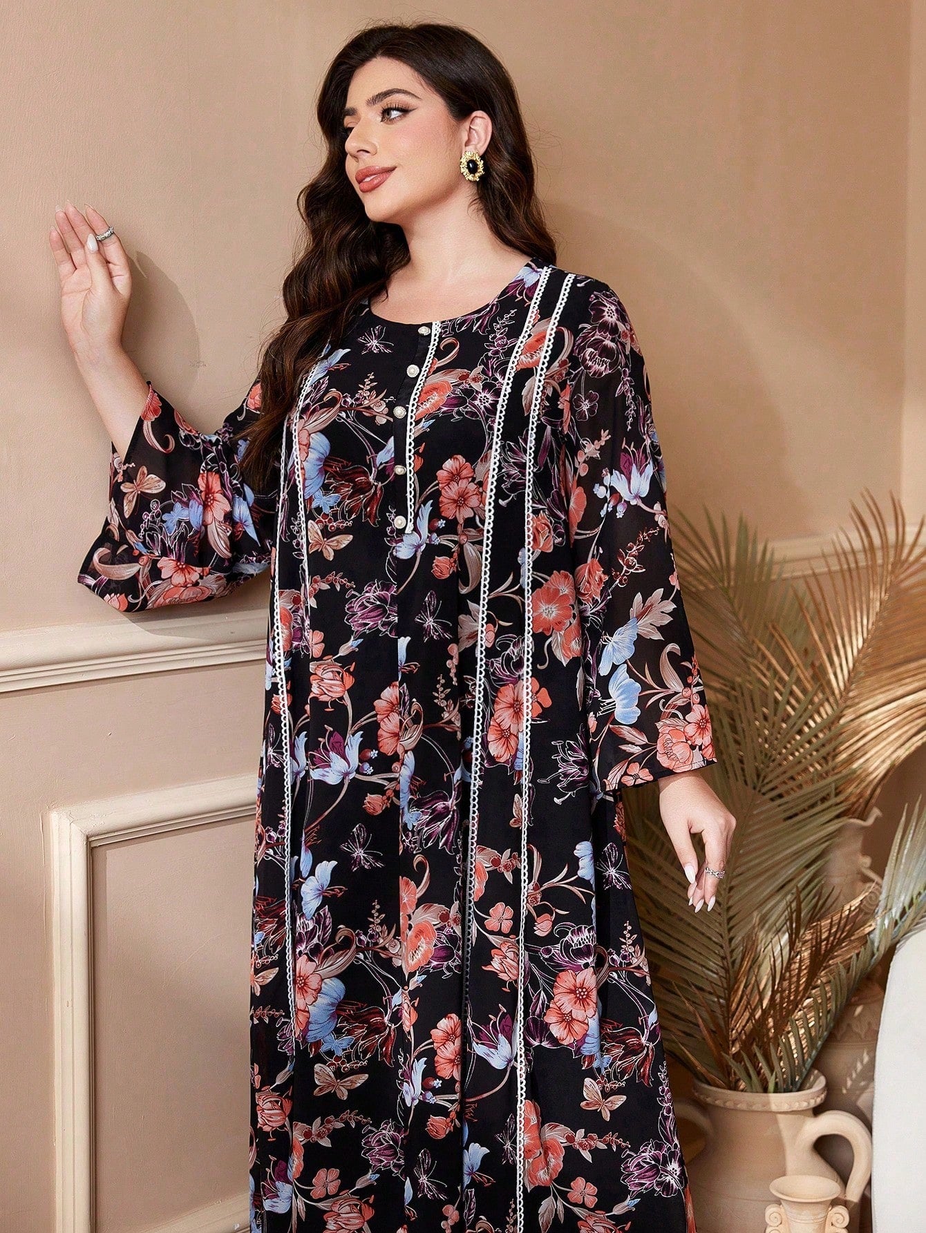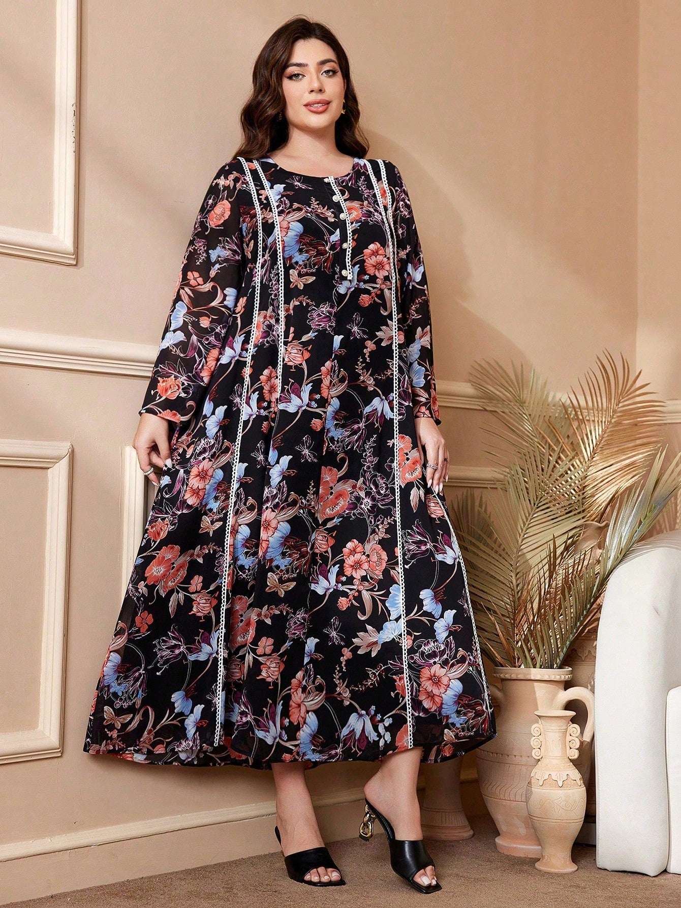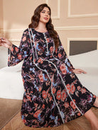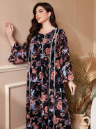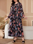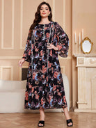 women Al Najma Plus Size Women's Spring Summer Butterfly Printed Round Neck Long Sleeve Maxi Loose Elegant Dress