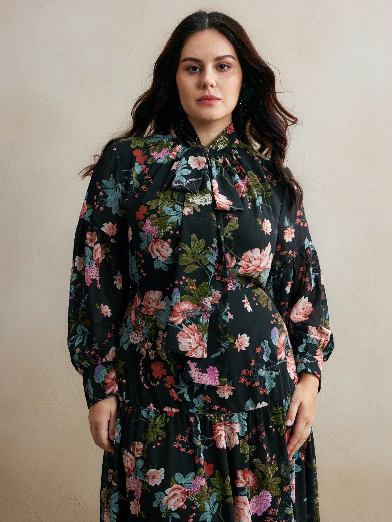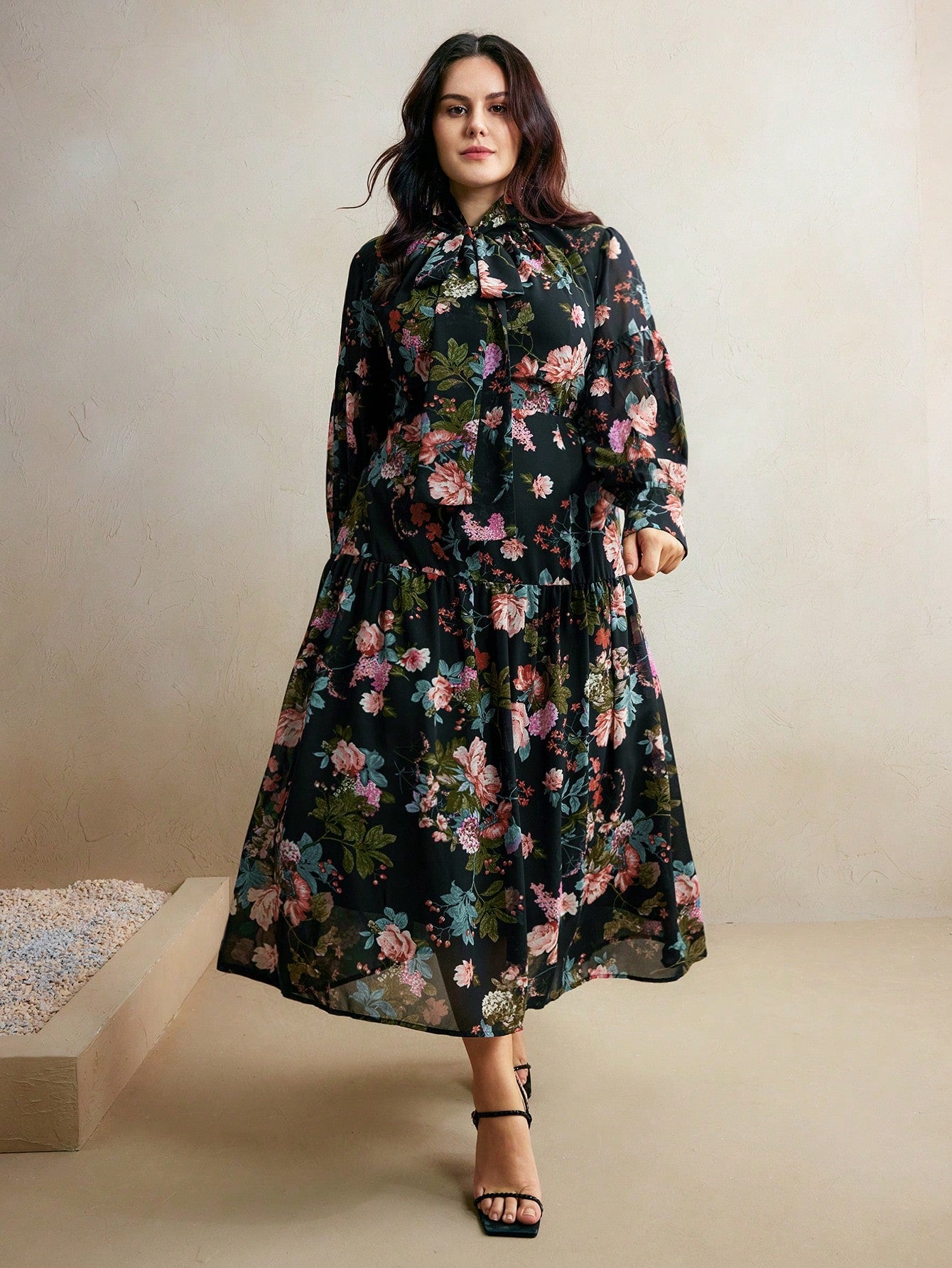 فستان أنيوستا النسائي الأنيق لفصل الخريف بطبعة زهور مقاس كبير