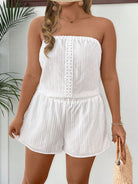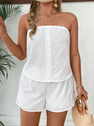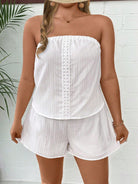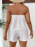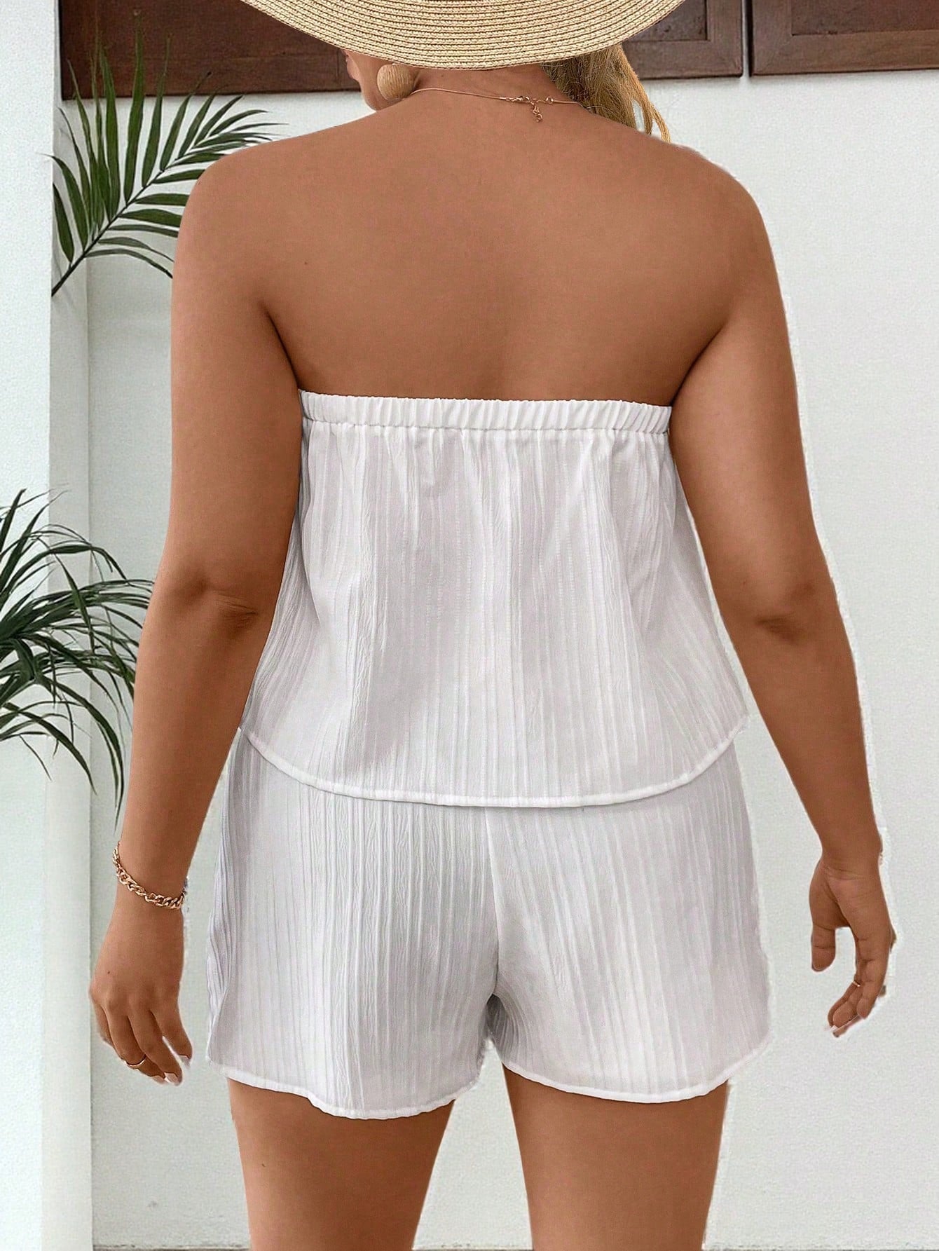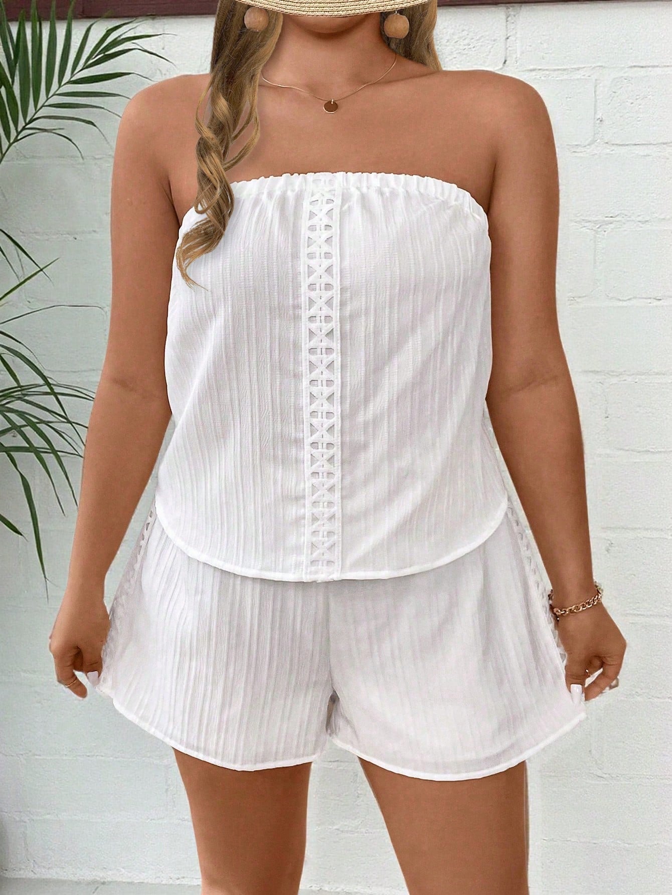 Breezaya Plus Size 2pcs Set Textured Fabric Lace Patchwork Top & Shorts