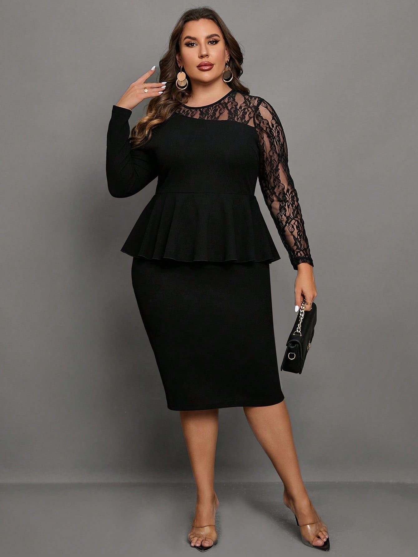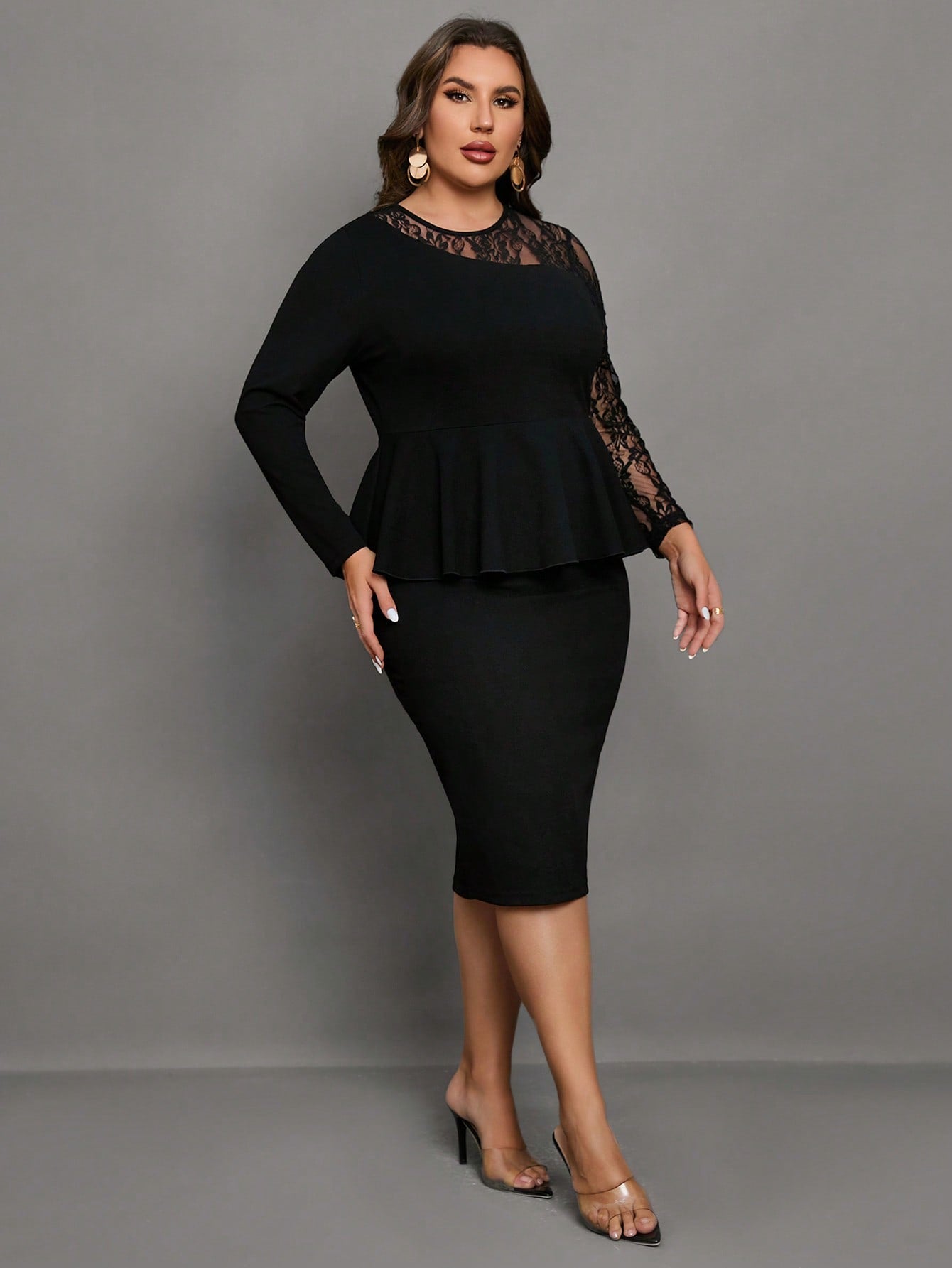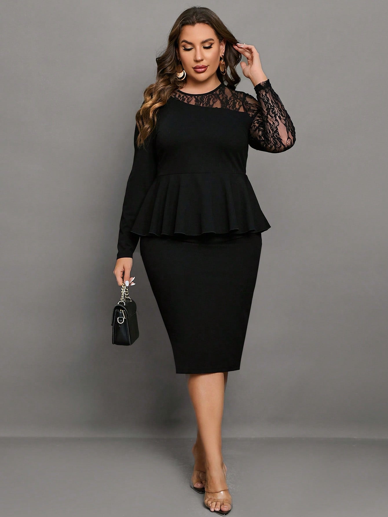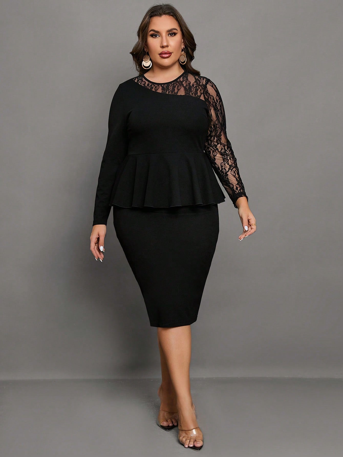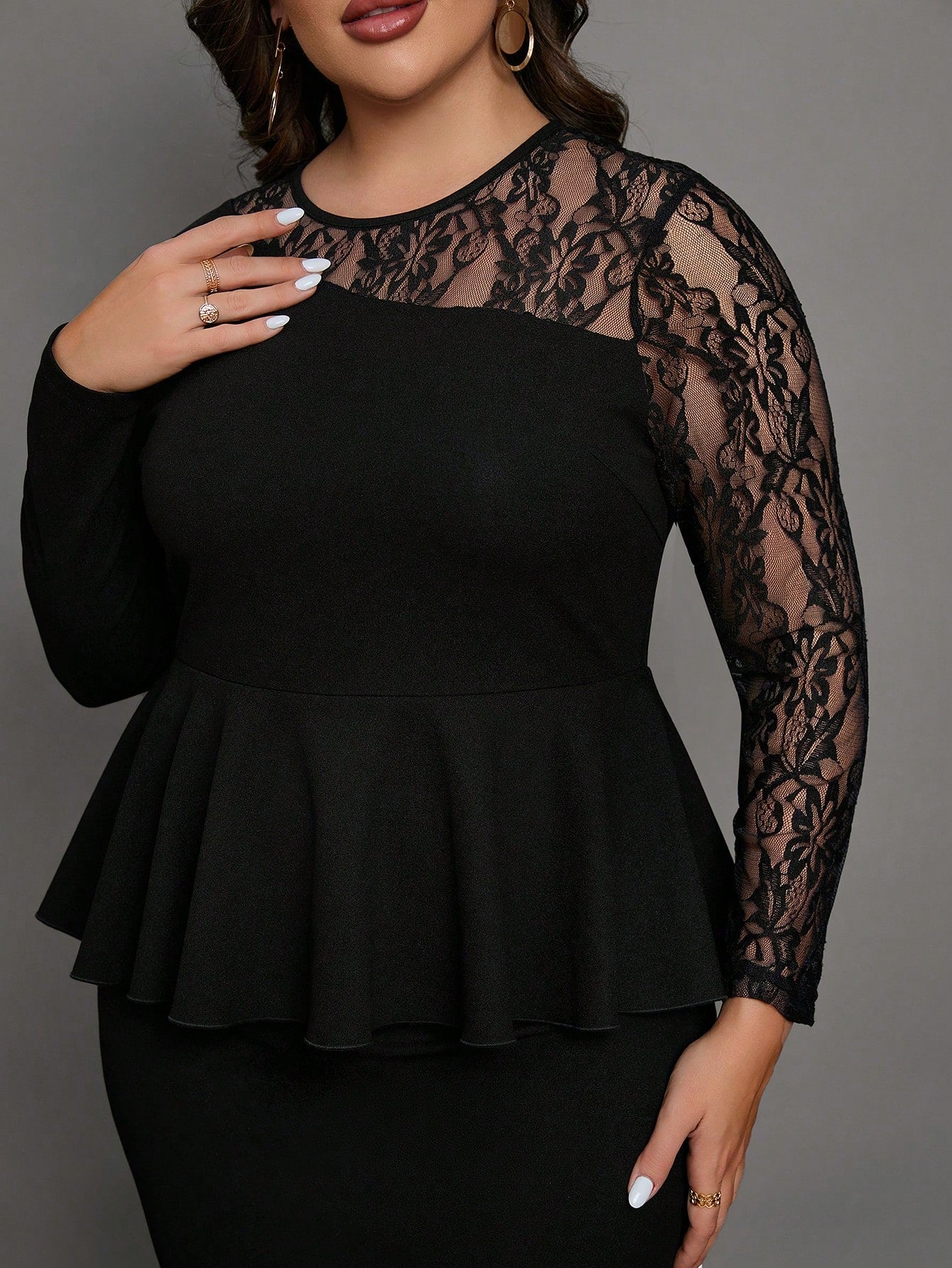 Chikora Plus Contrast Lace Peplum Dress
