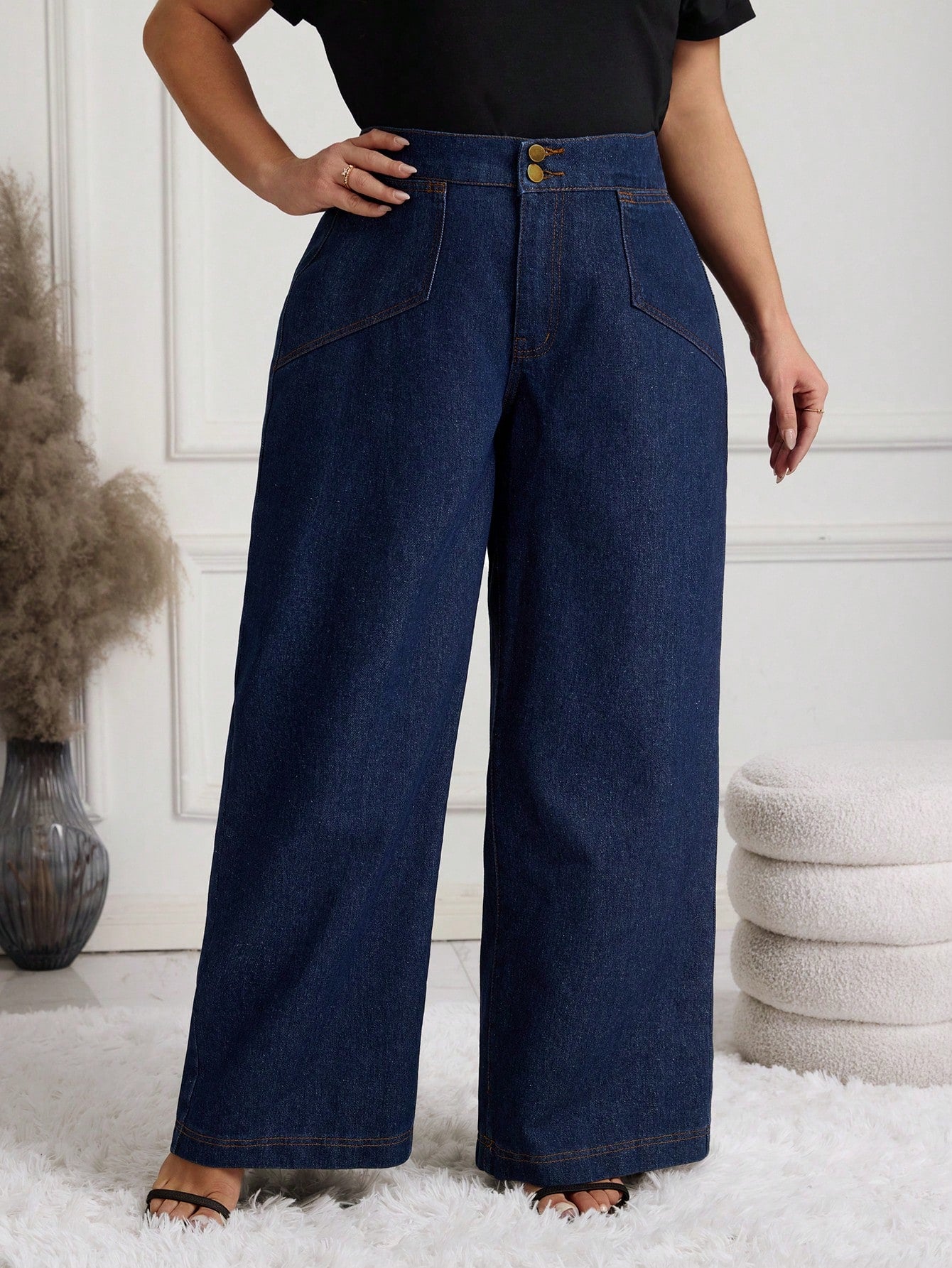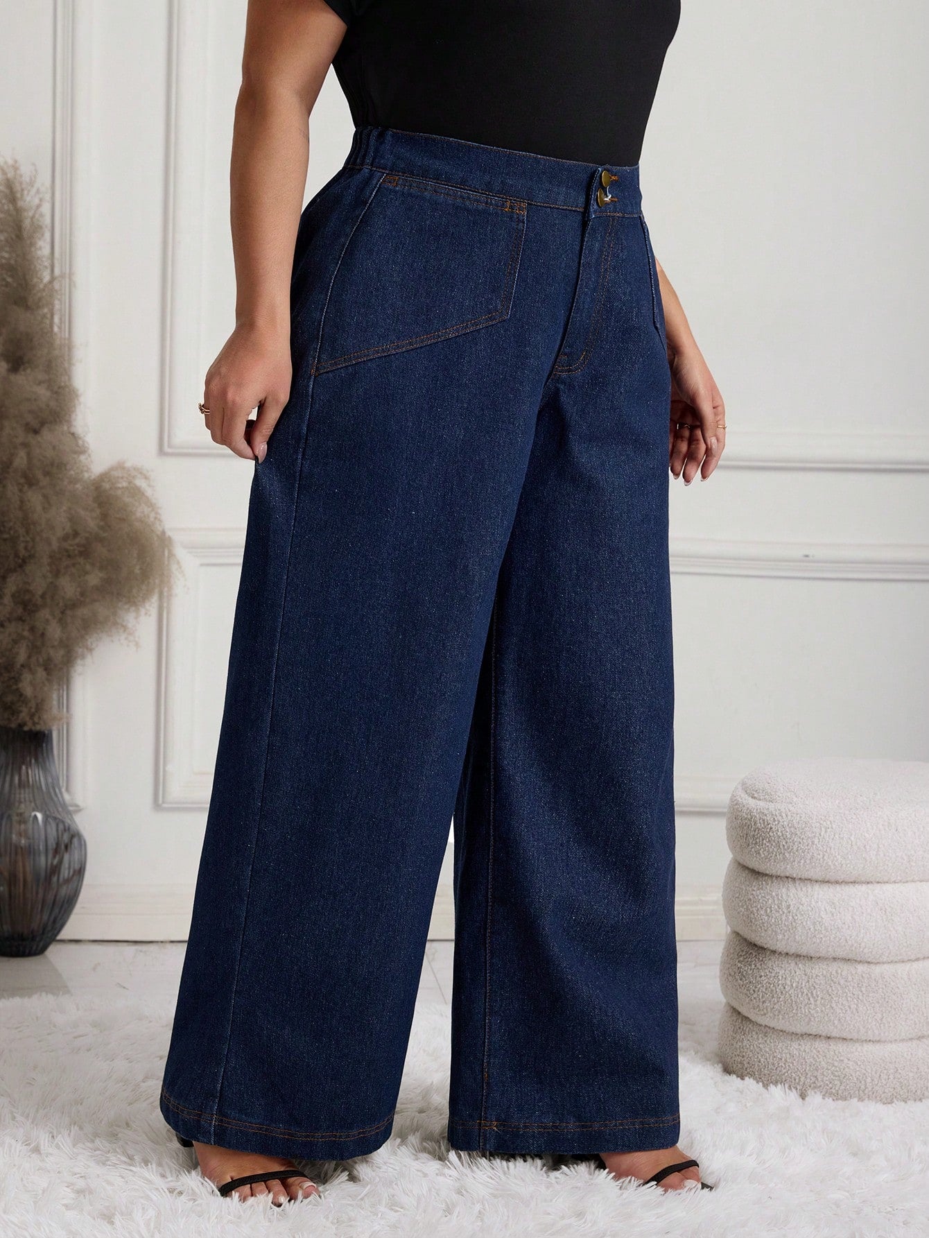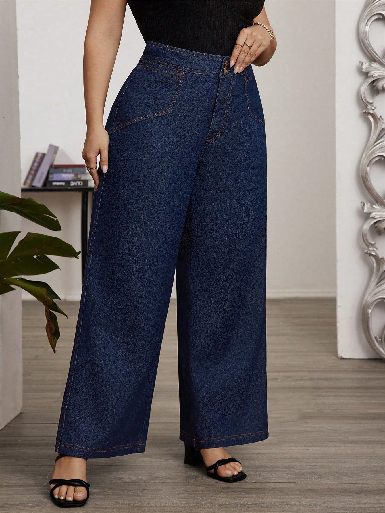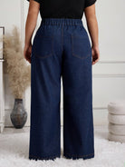 بنطلون جينز نسائي واسع الساق من إيمري روز، مقاس كبير، أزرق داكن، قابل للغسل