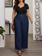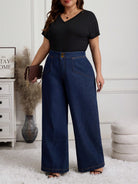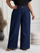 women EMERY ROSE Plus Size Wide Leg Jeans Women Dark Blue Wash-Through Commuter Jeans
