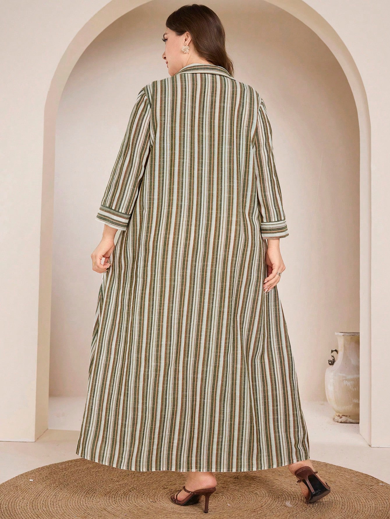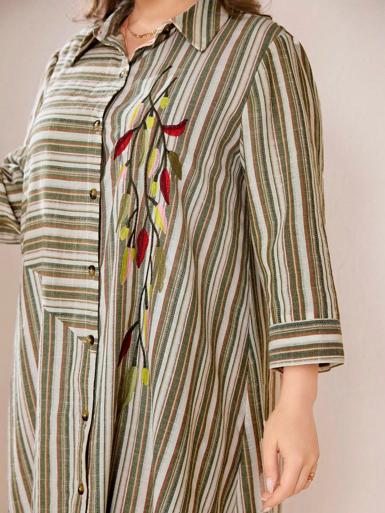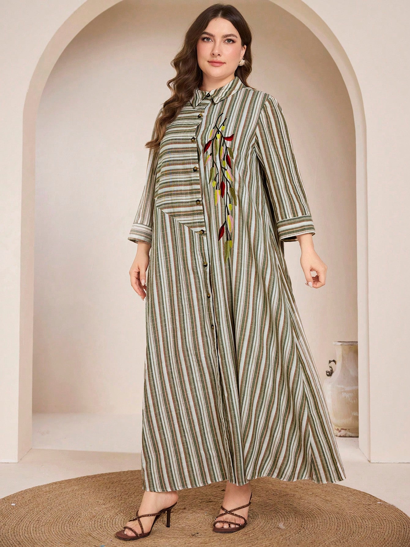 Graceveil Plus Size Women Embroidered Striped Collared Shirt Dress, Arabic Style
