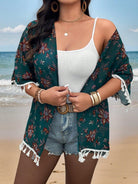 LUNE Plus Size Kimono With Fringe Hem, Fashionable For Summer Easter Vacation Boho Relaxed Mother Day