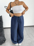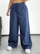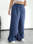 PETITE Women Plus Size Simple Striped Button Casual Loose Pants