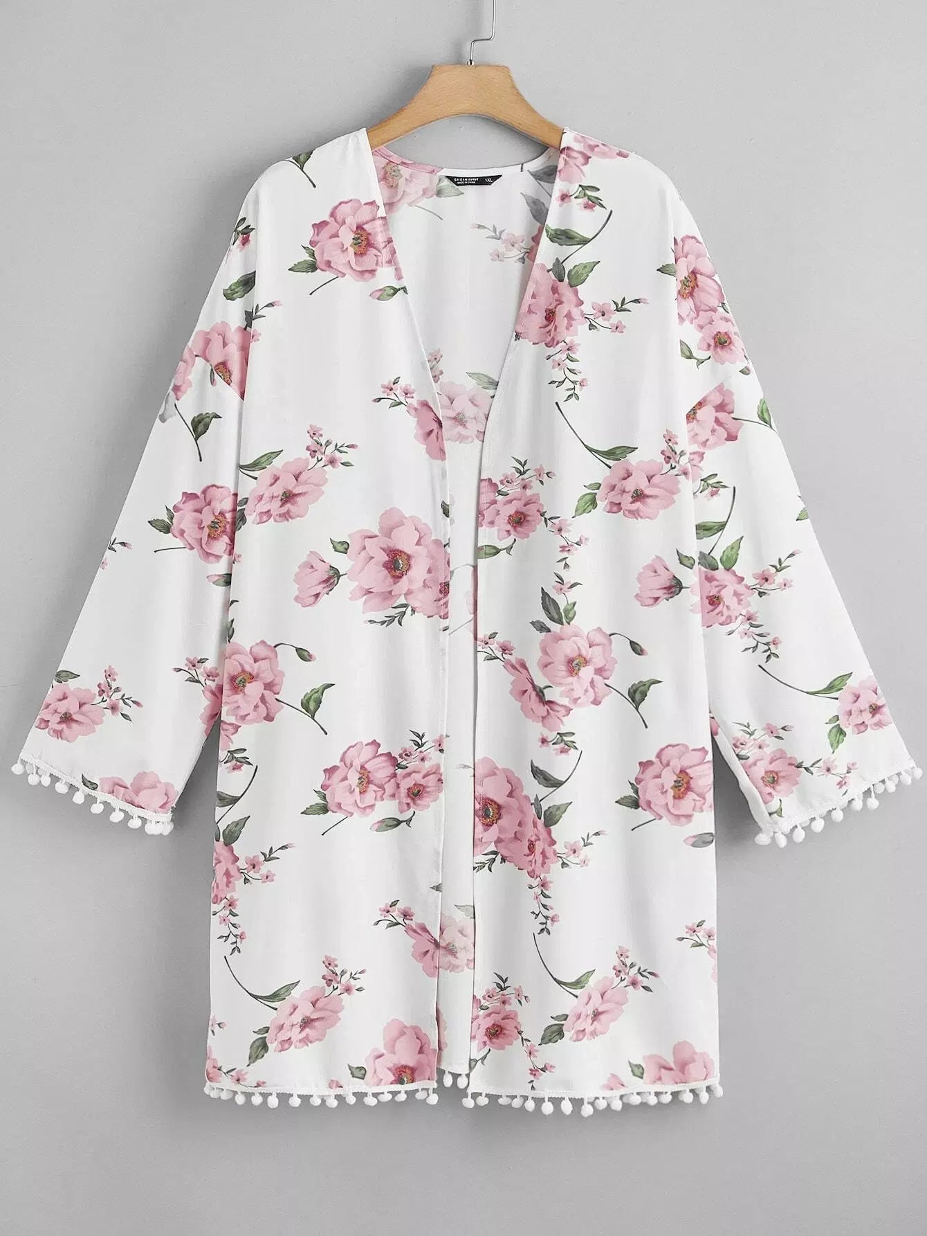 كيمونو منسدل الأكتاف مطبوع عليه زهور بالكامل