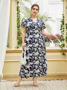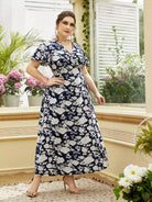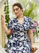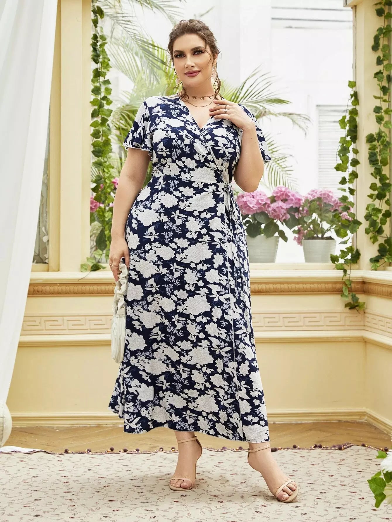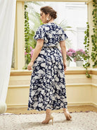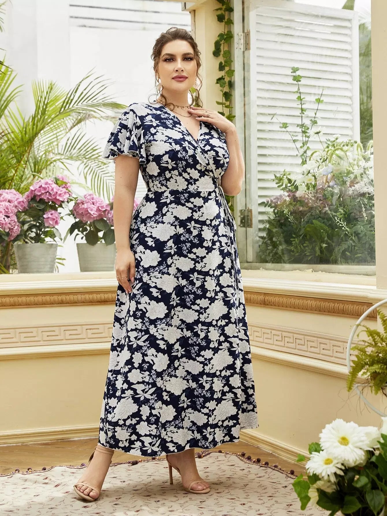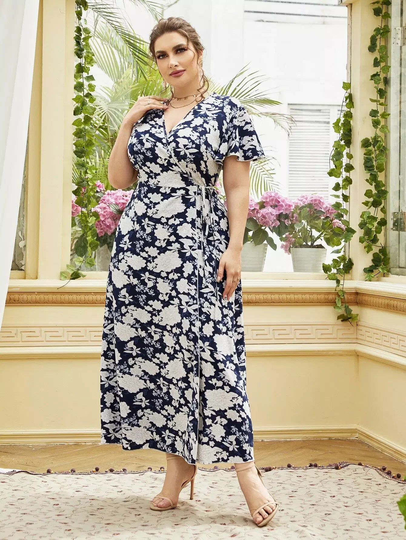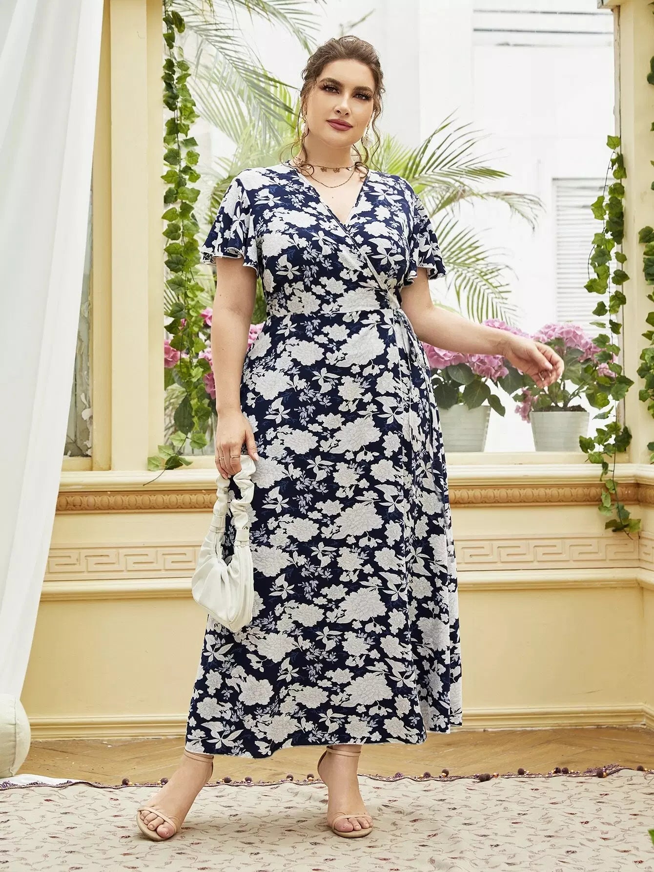 فستان بأكمام زهرية مطبوعة على شكل فراشة بأكمام جانبية على شكل عقدة زائدة