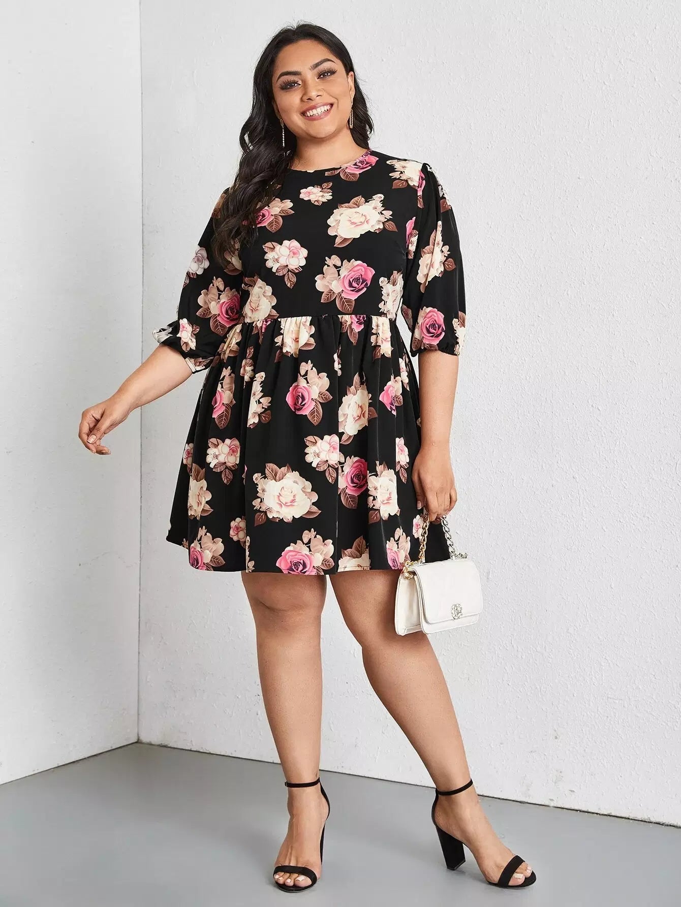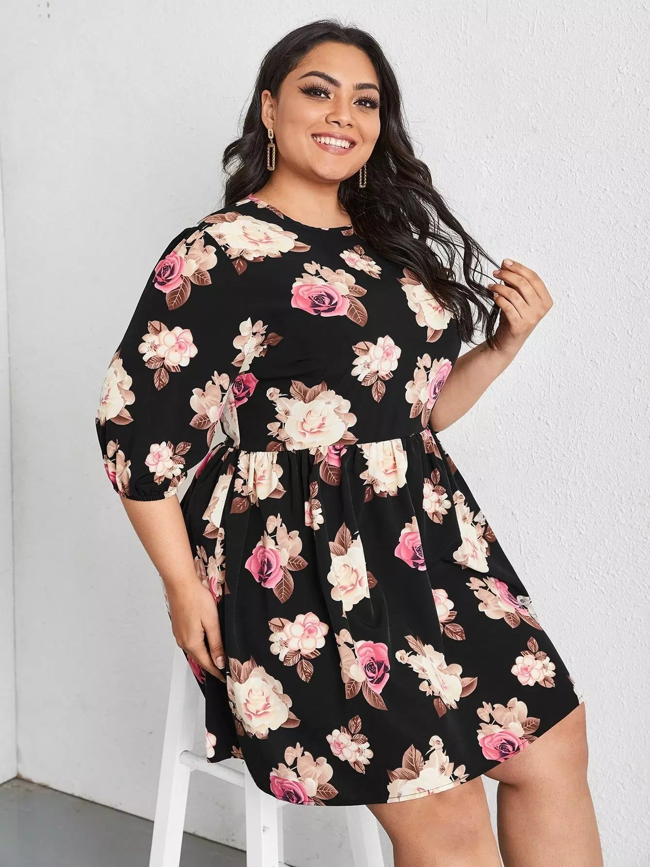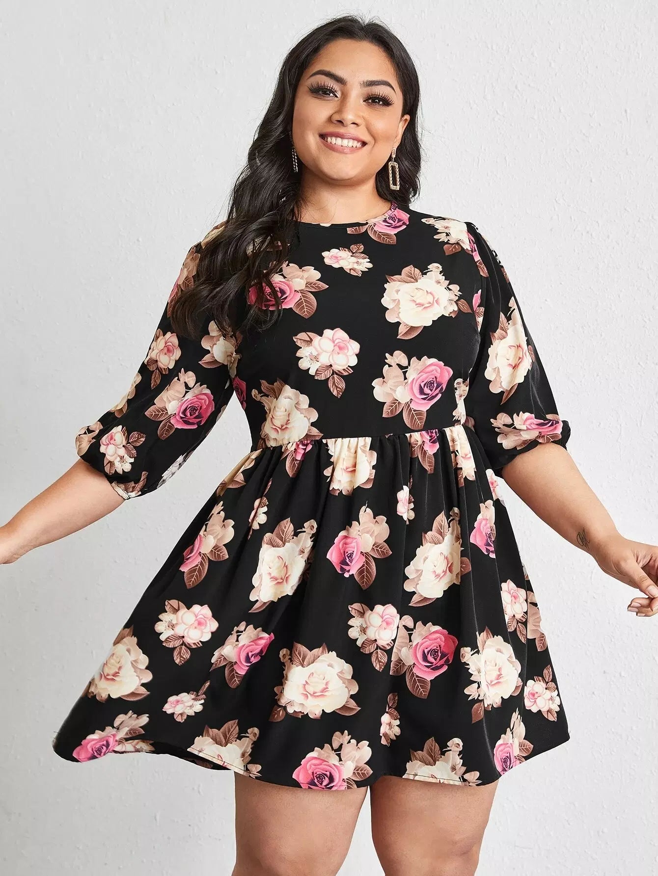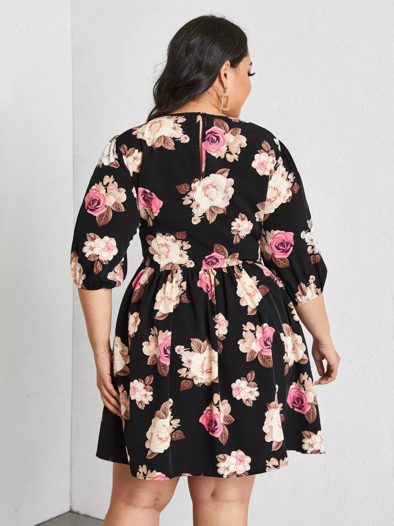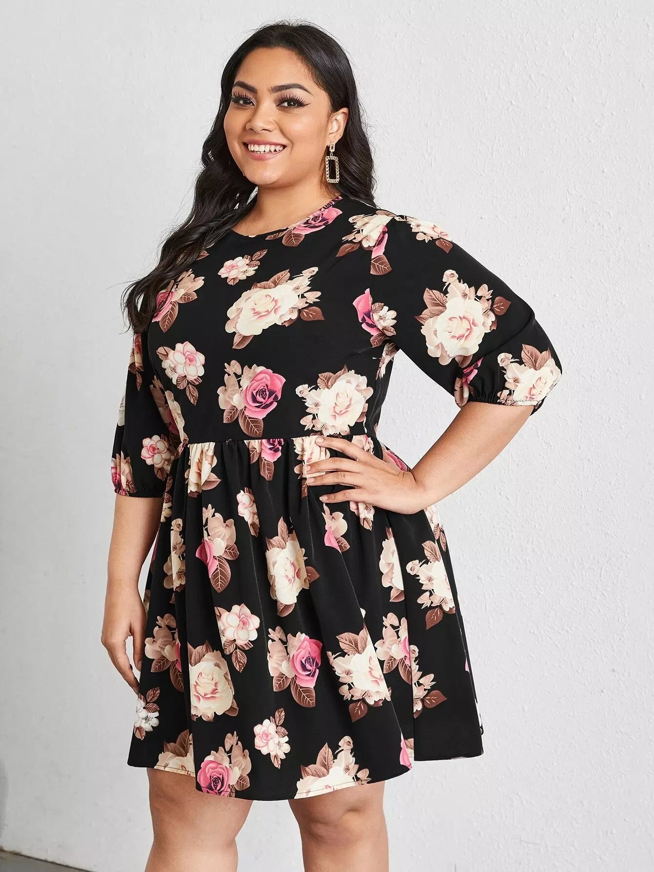 نحيف - مقاس كبير كل انحاء فستان طباعة الأزهار