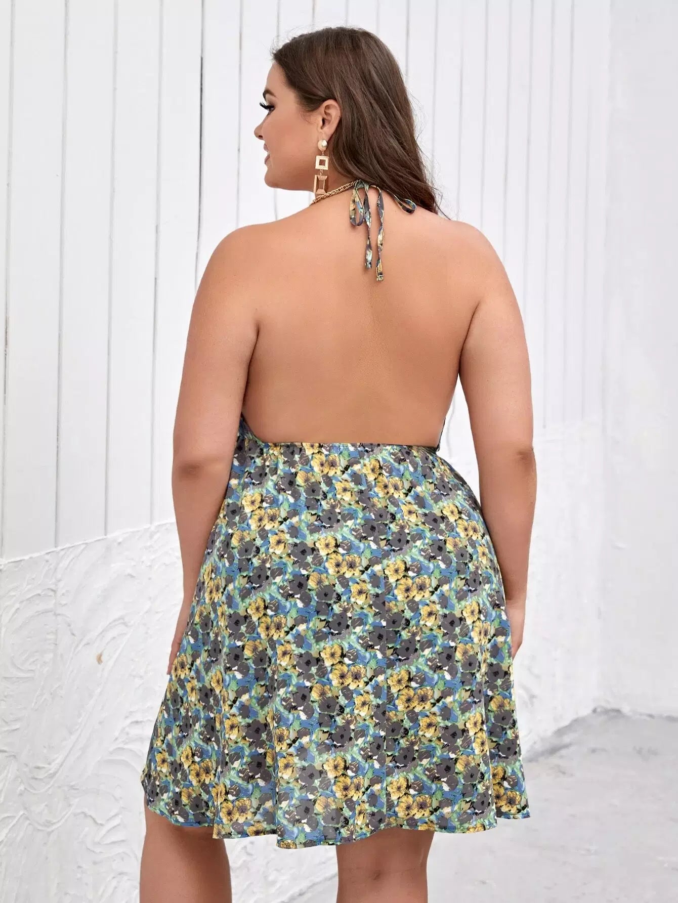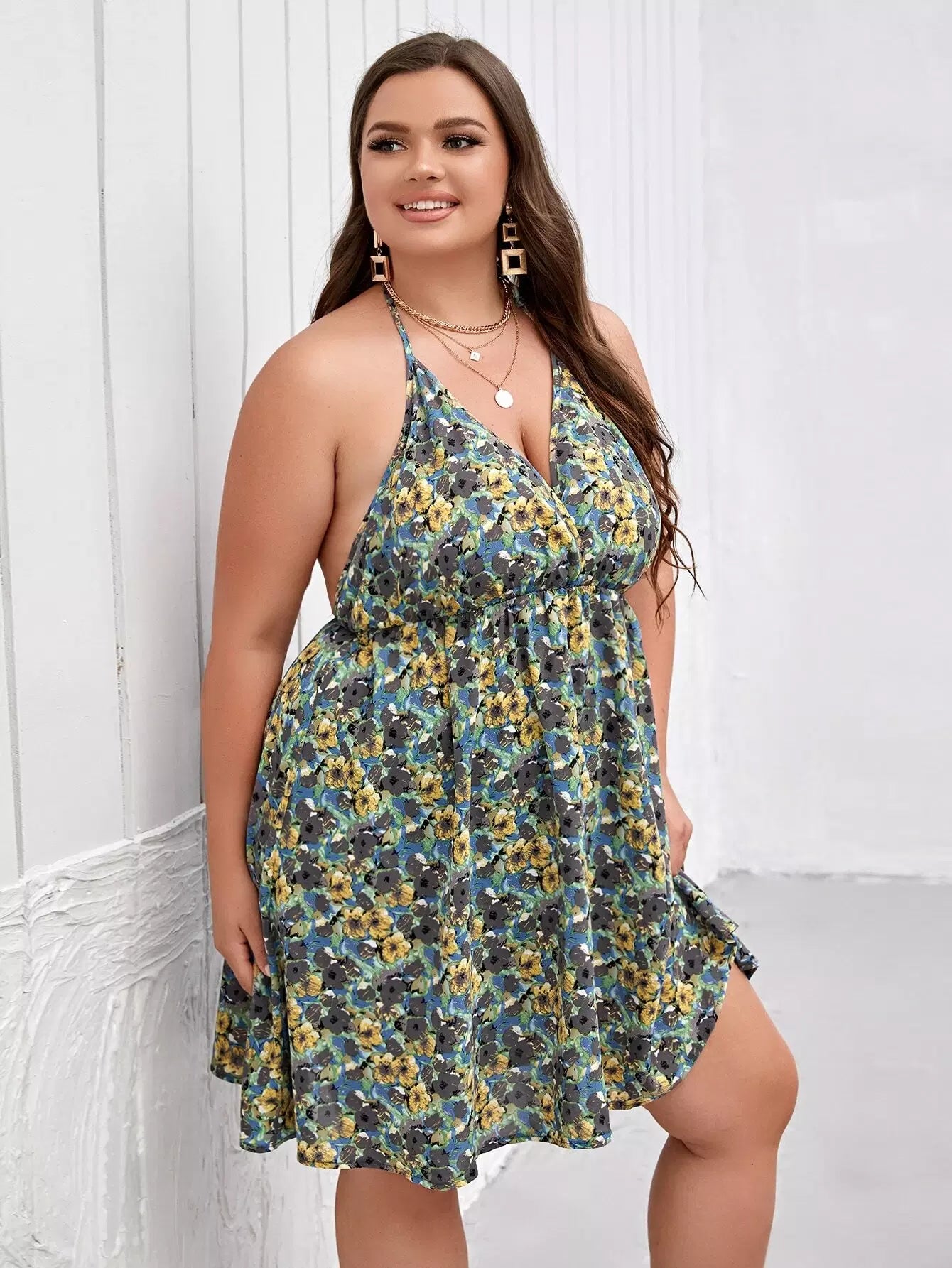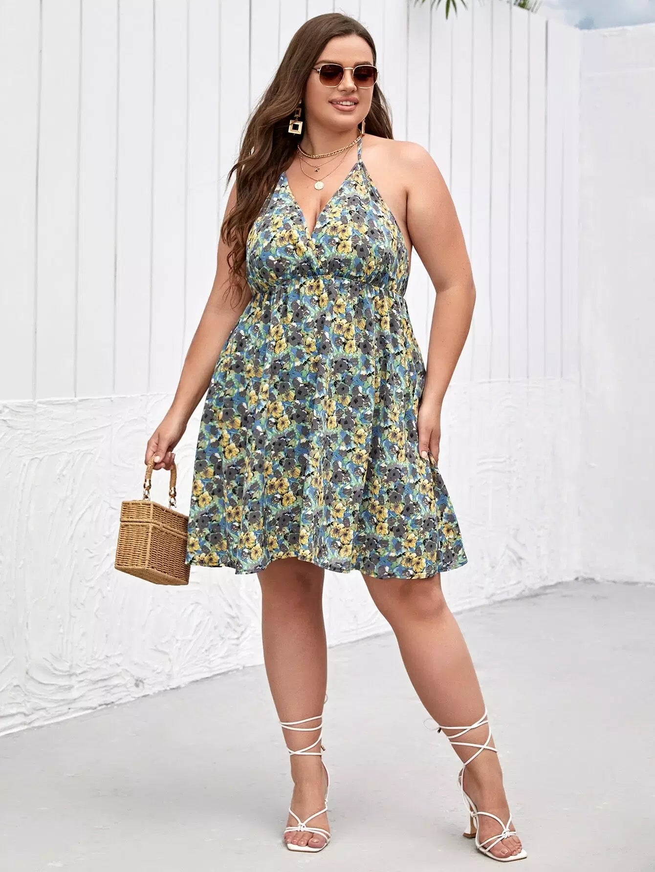 فستان بطبعة زهور مطبوع على الصدرية