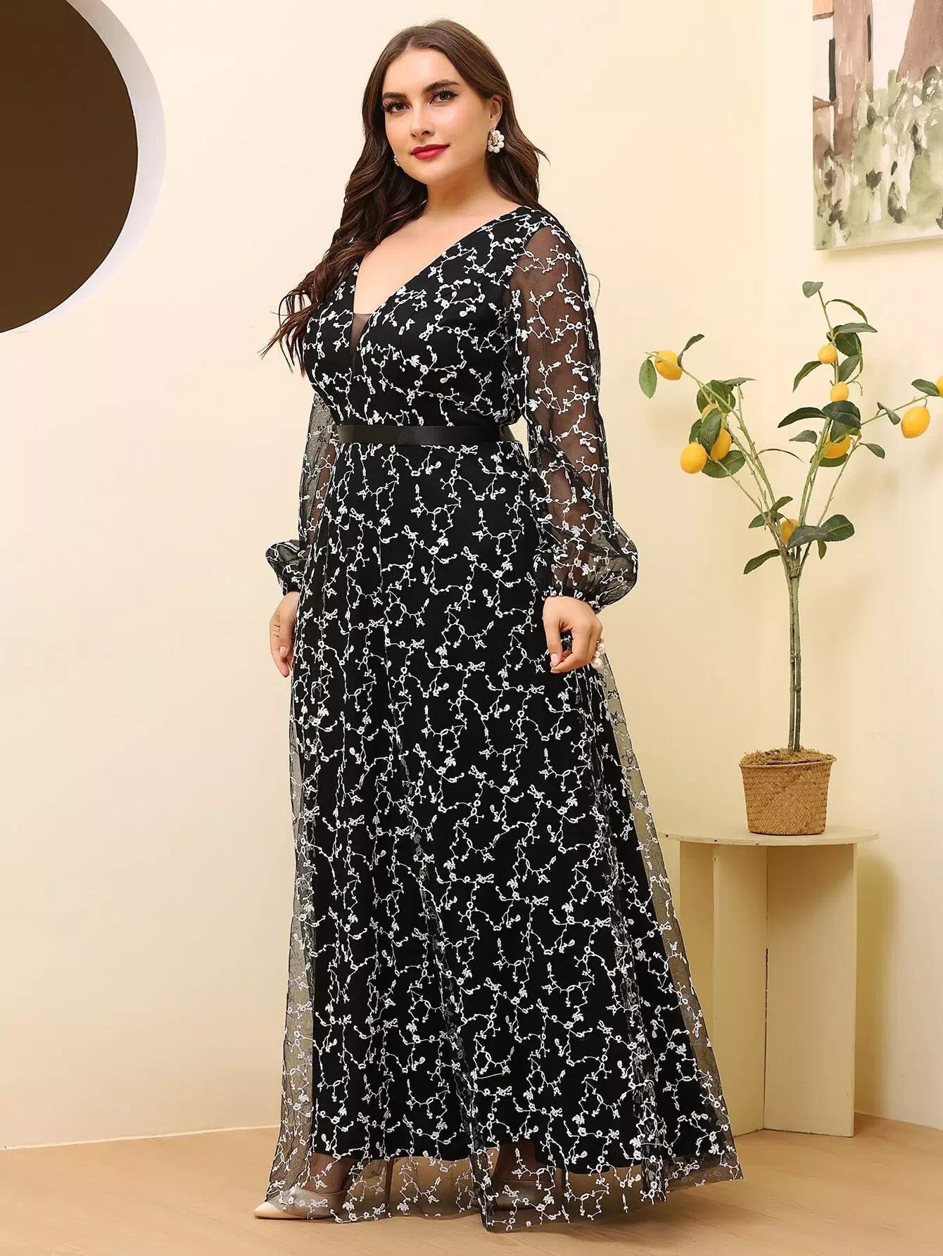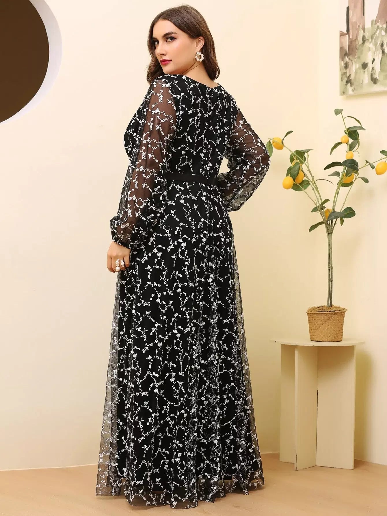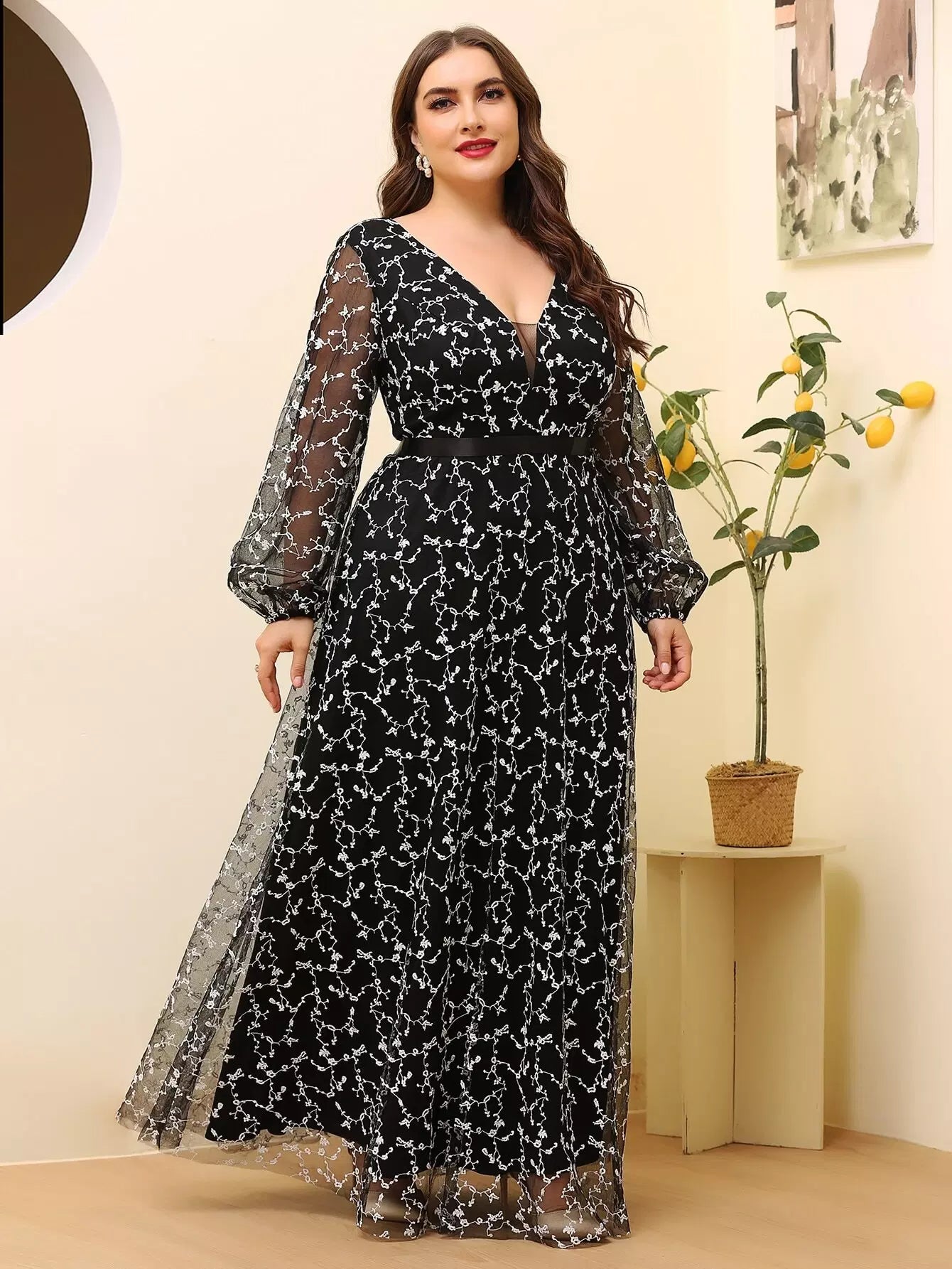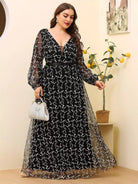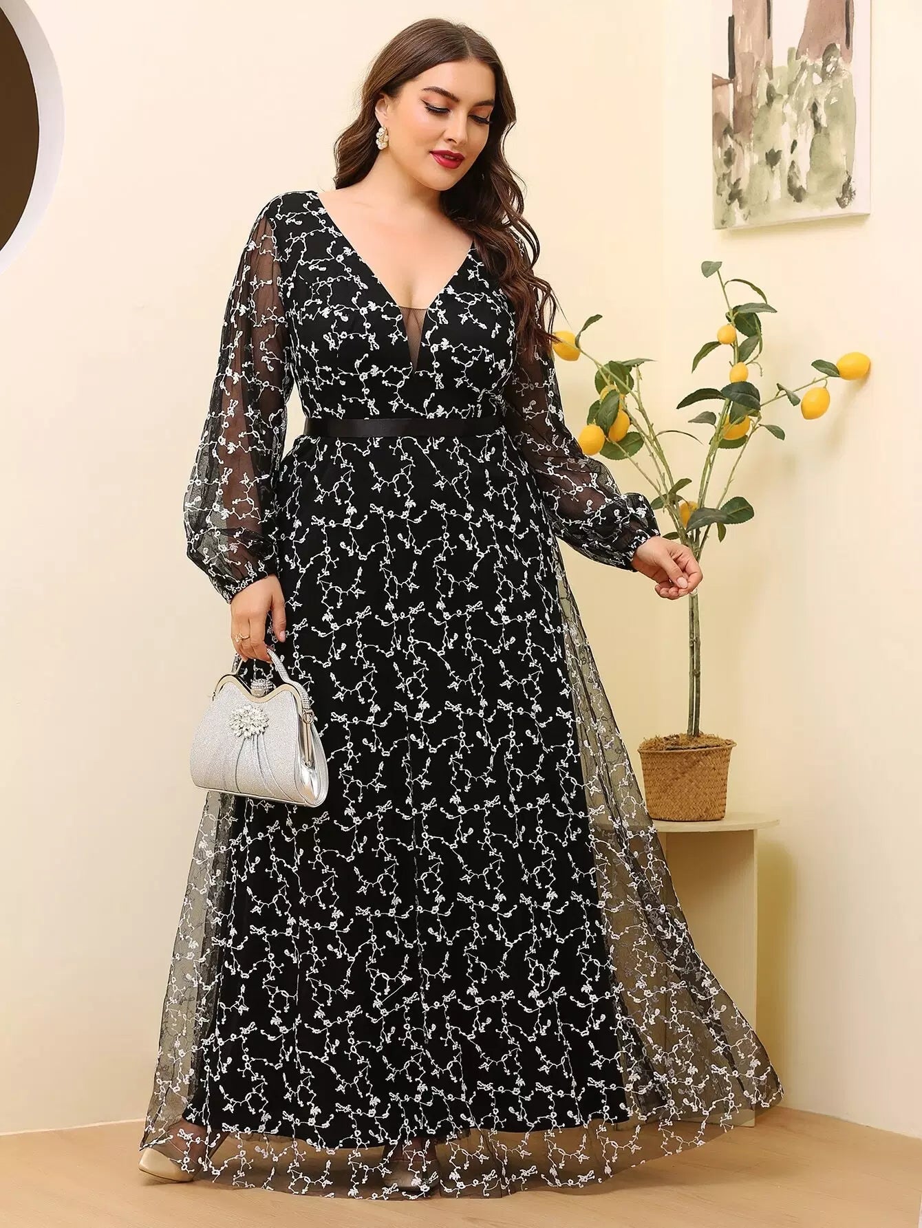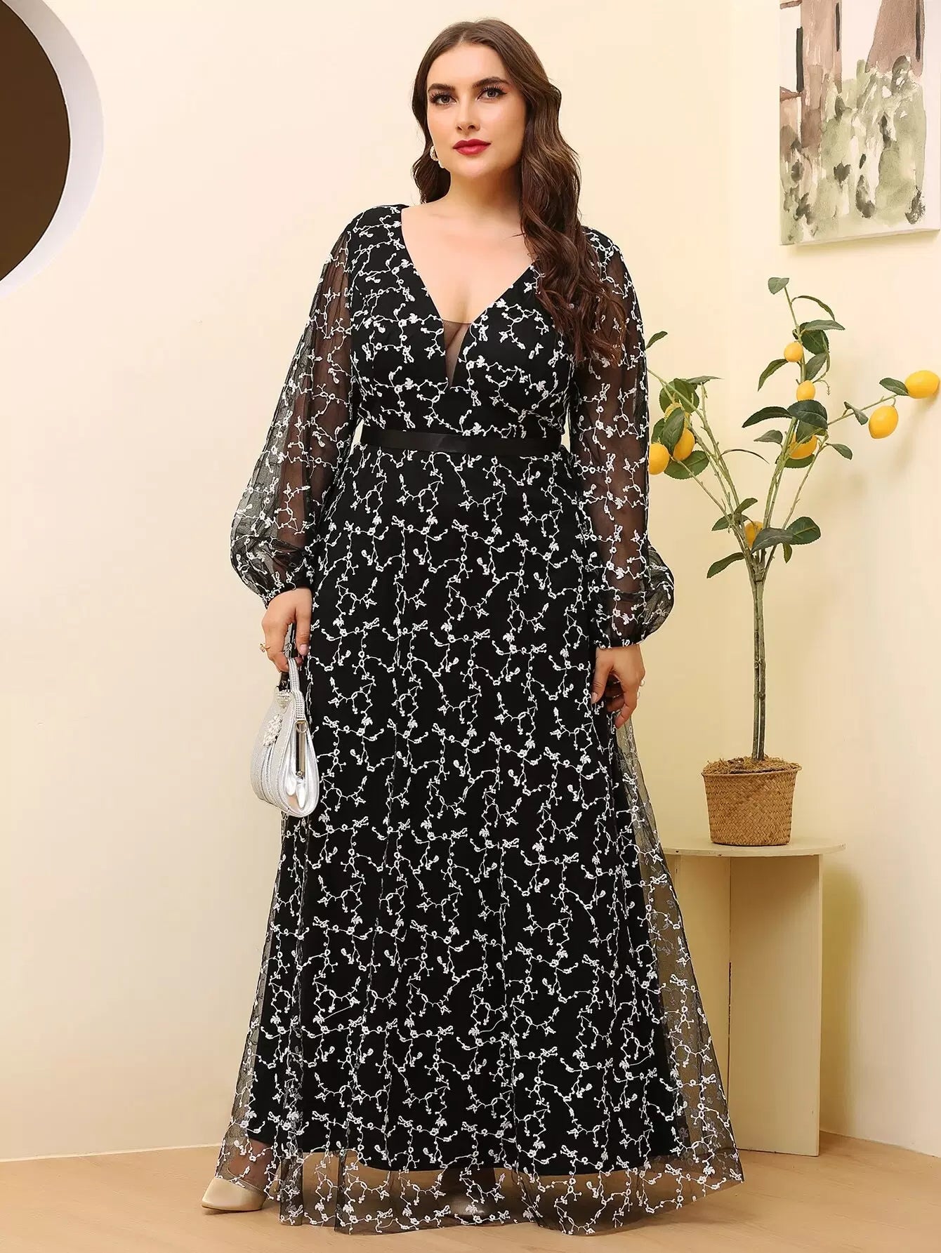 فستان بنقشة شبكية مطبوعة على شكل حرف A زائد