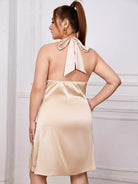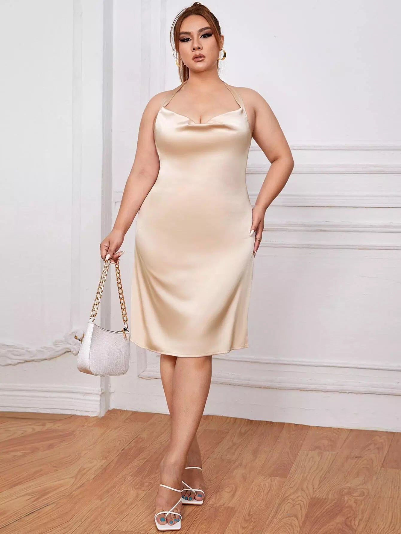 فستان ساتان مكشوف الظهر مكشوف الرسن زائد