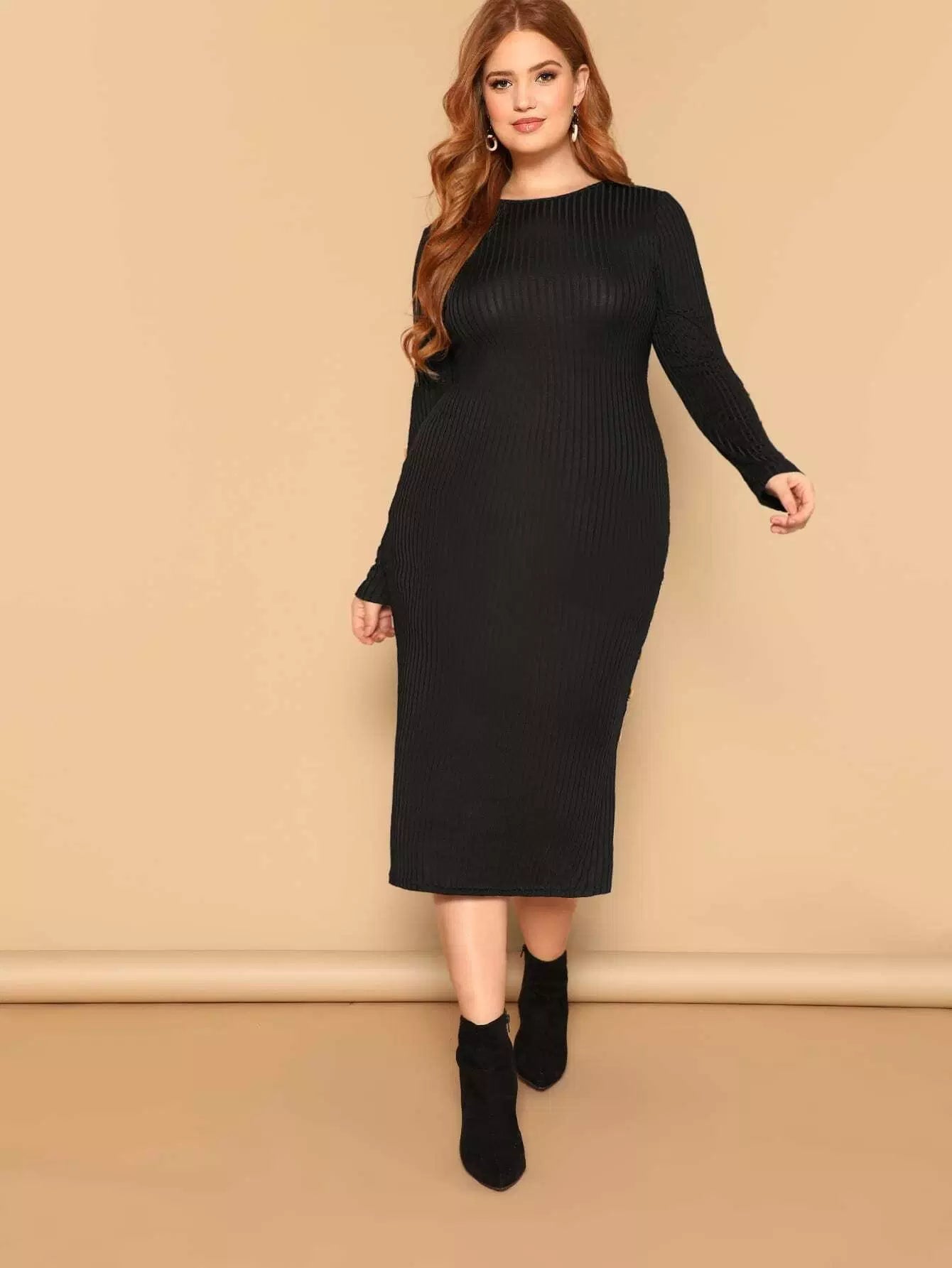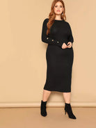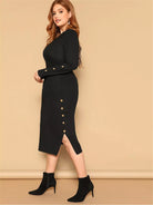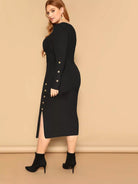 نحيف - مقاس كبير فستان ضيق بأزرار وجوانب مضلعة