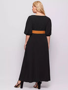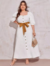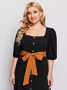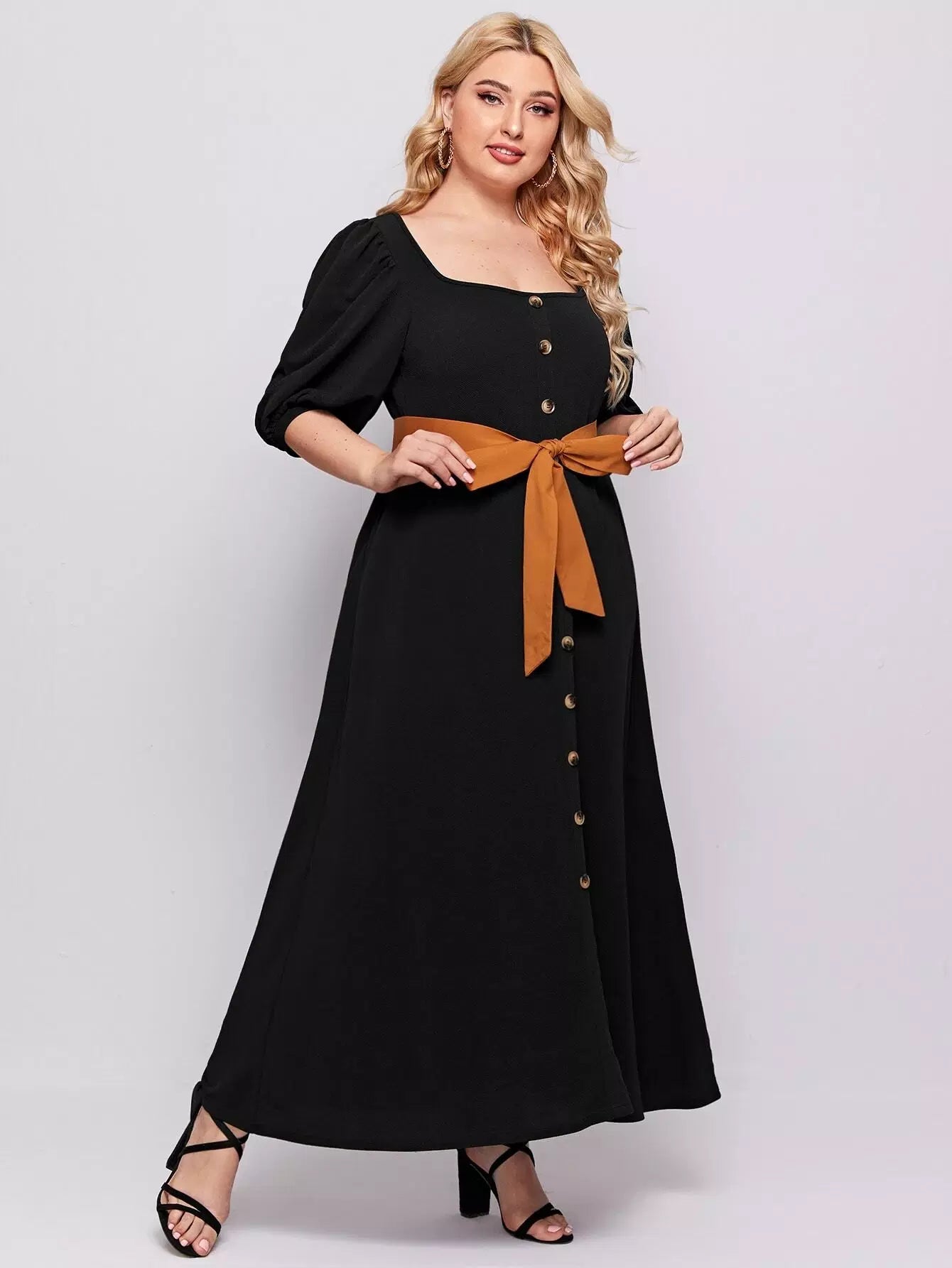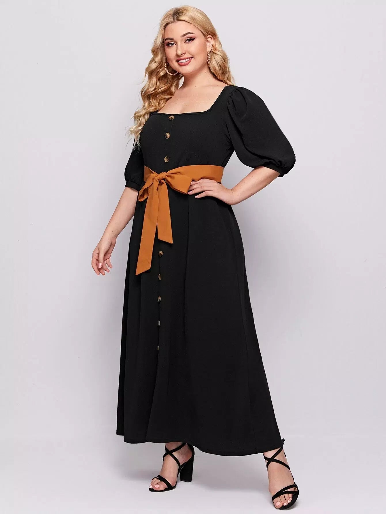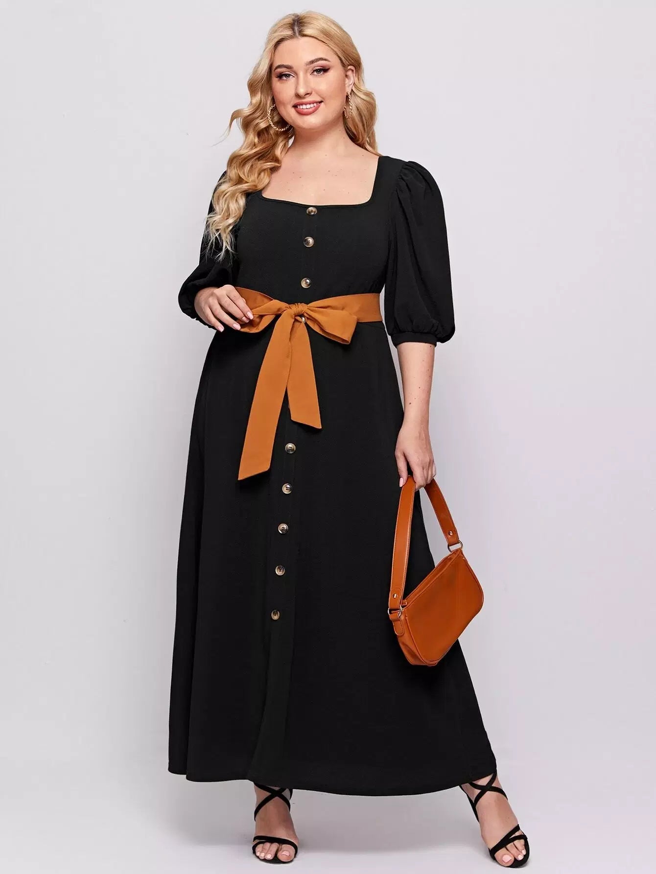 فستان بأكمام منتفخة وأزرار أمامية بدون حزام