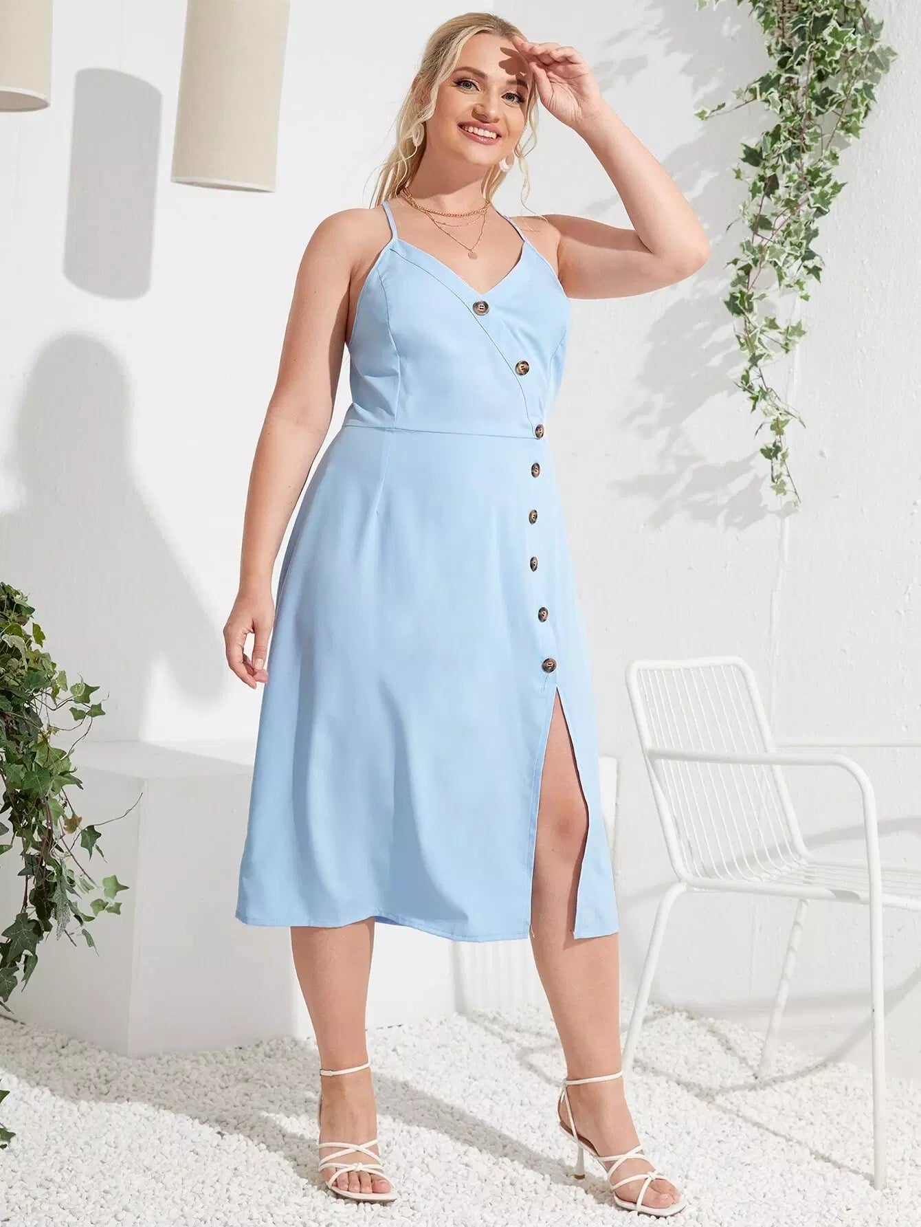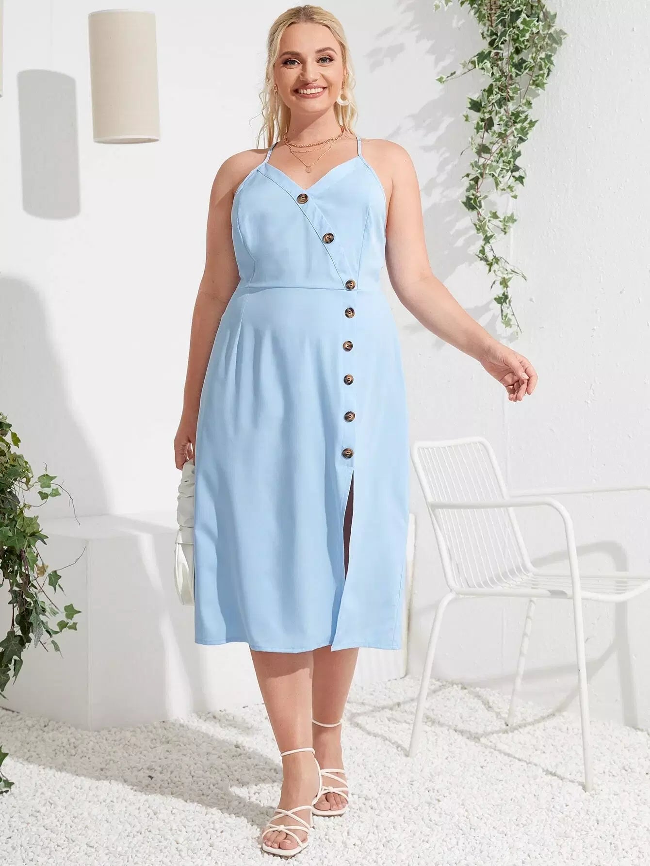 فستان قميص قصير منفتح من الأمام بأزرار زائد