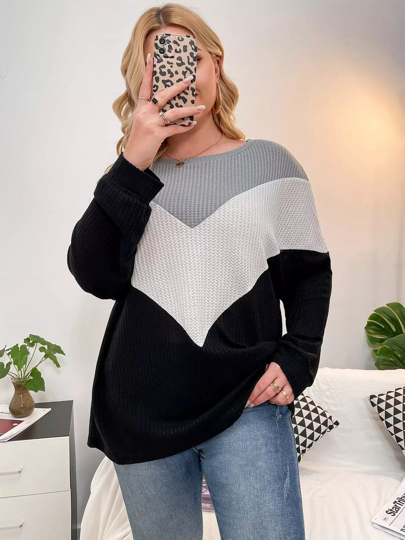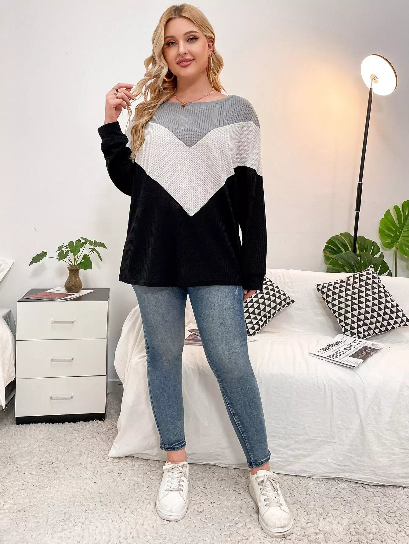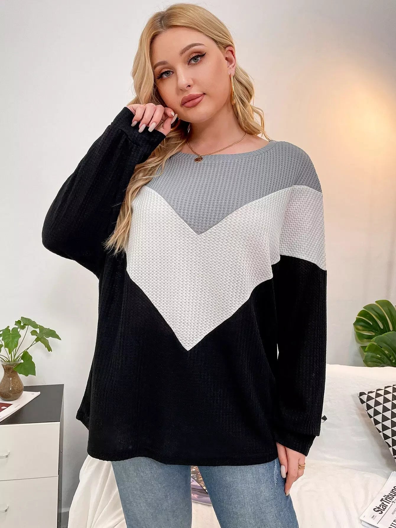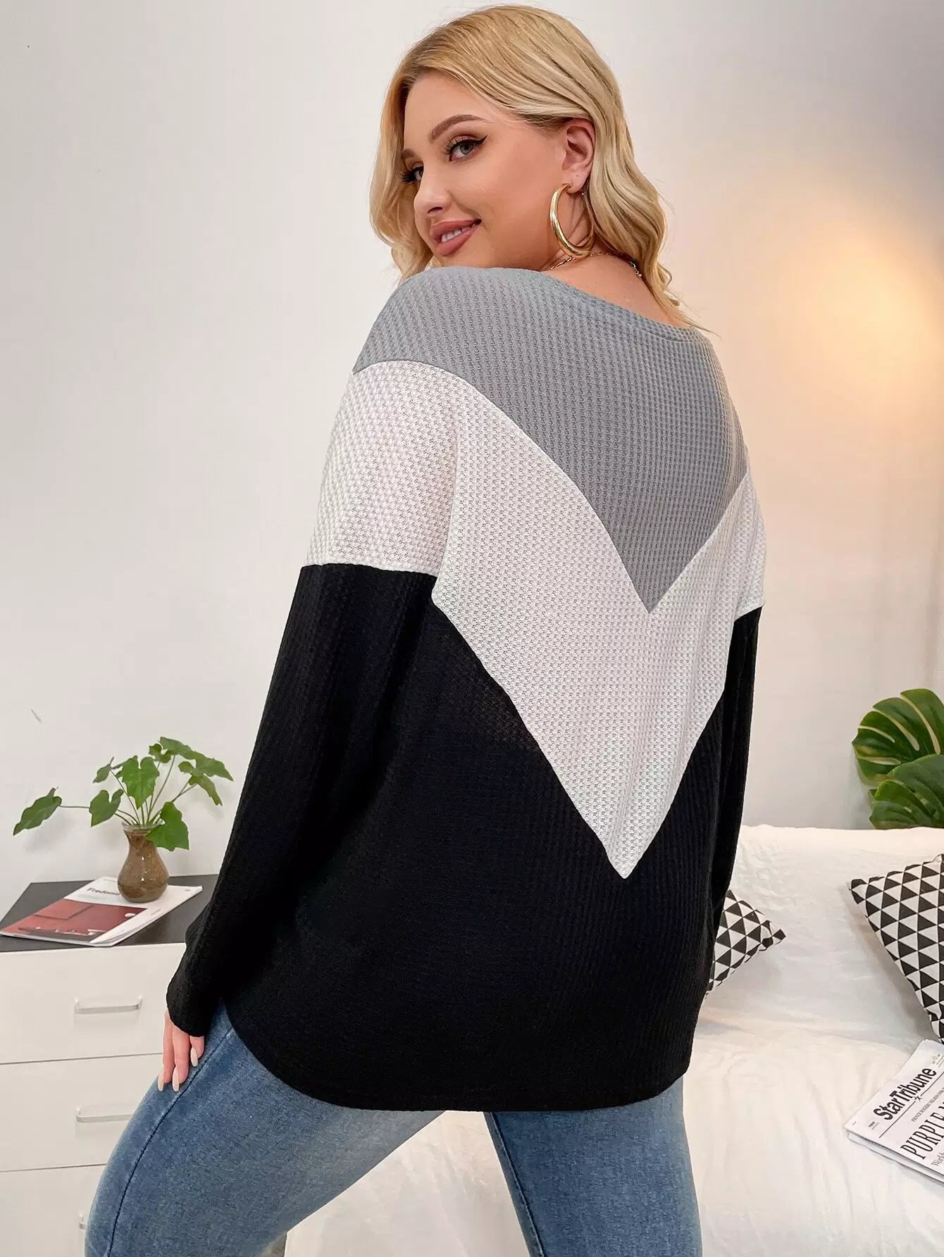 تي شيفرون مطبوع بطبعة شيفرون زائد بأكمام على شكل باتوينغ