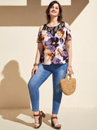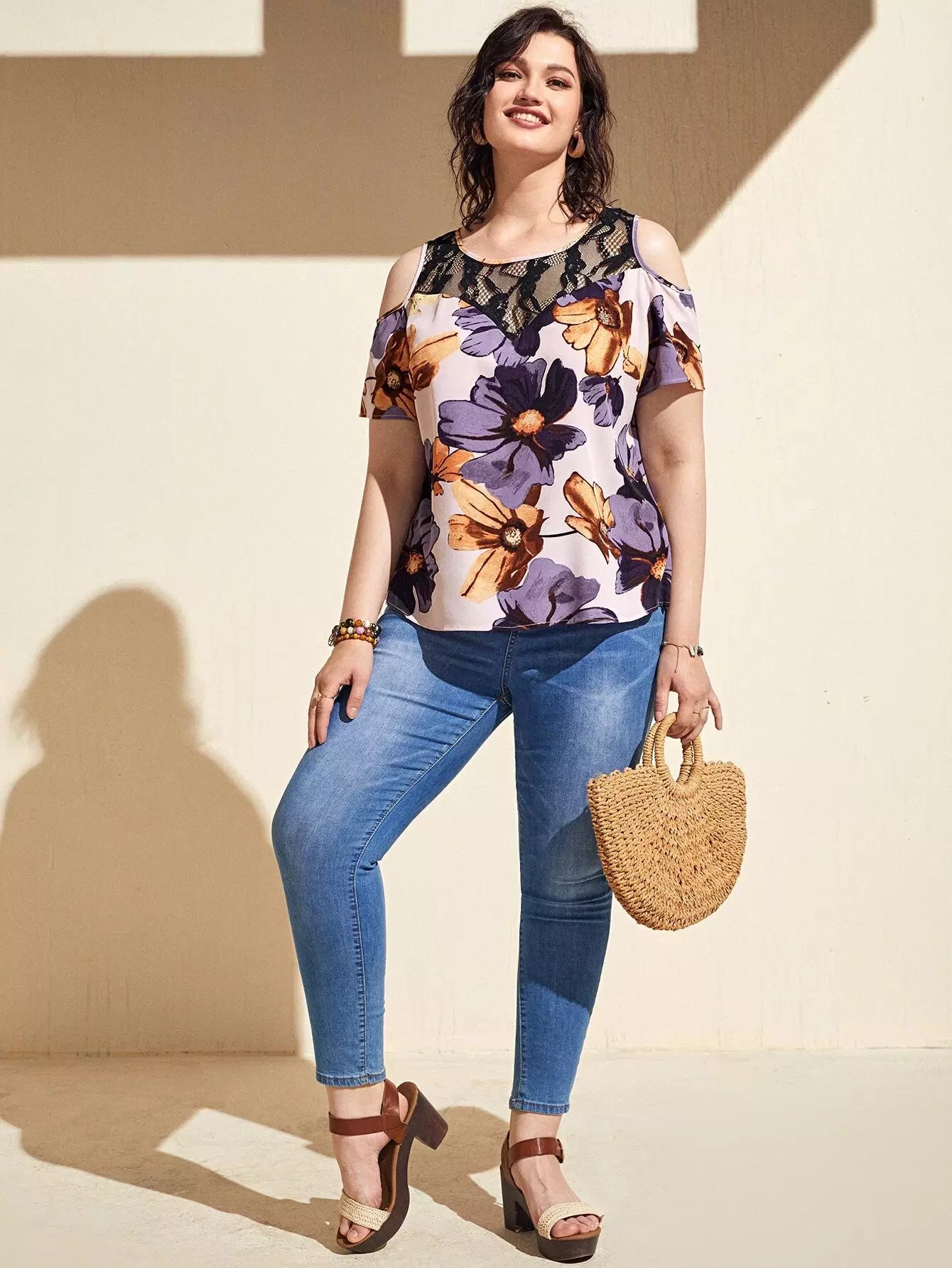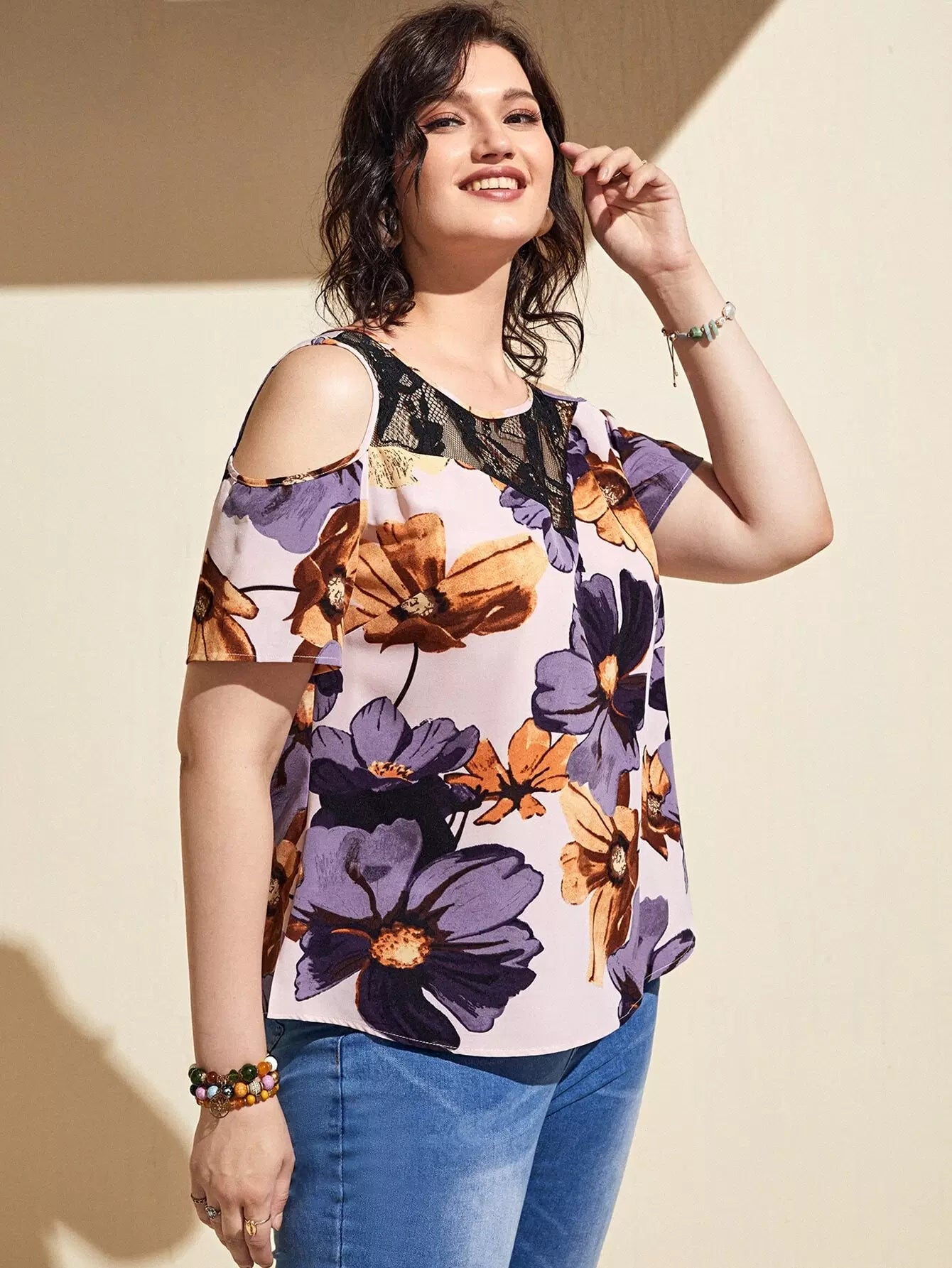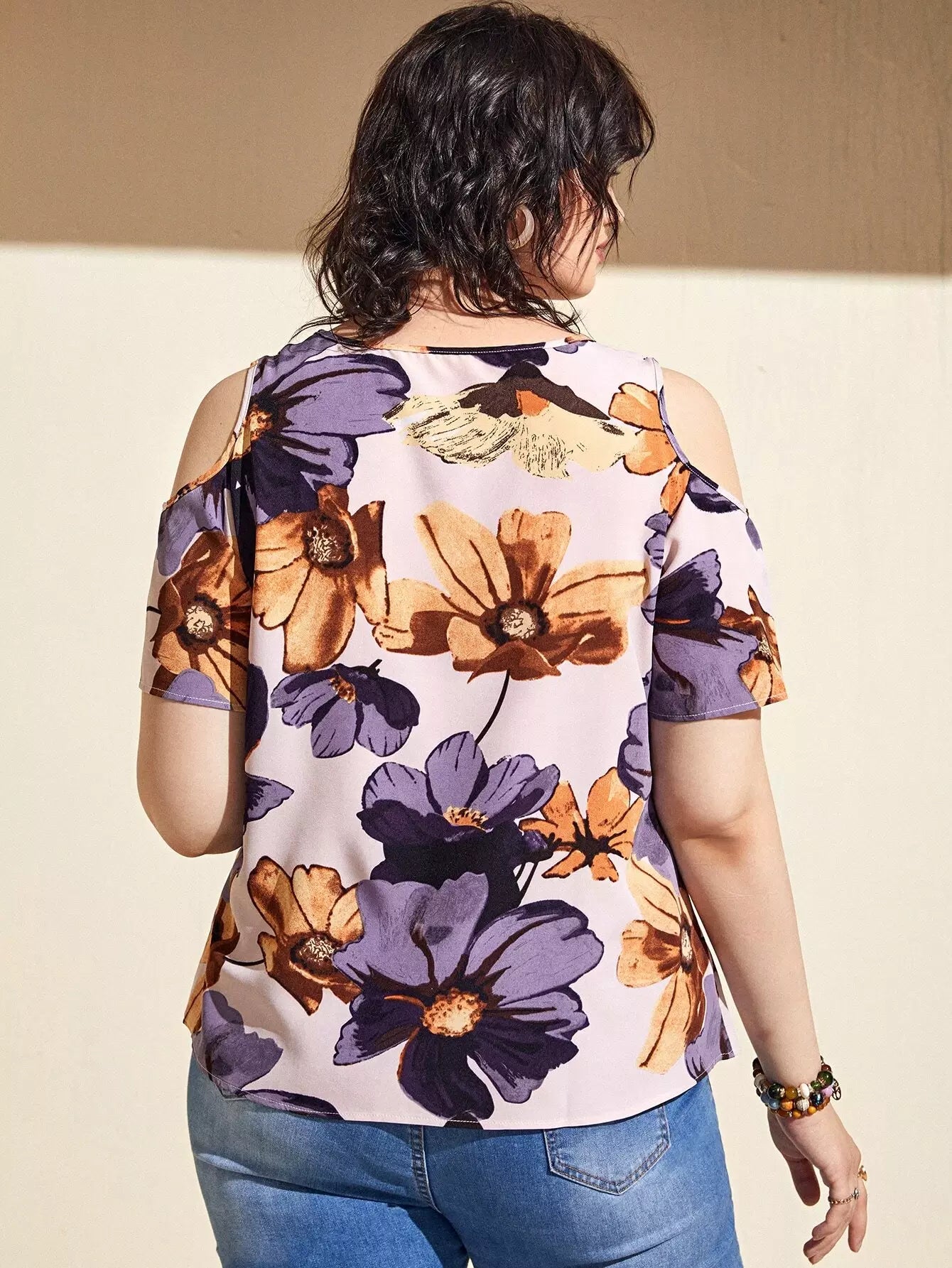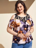 بلوزة زائد أكتاف باردة زهرية زائدة
